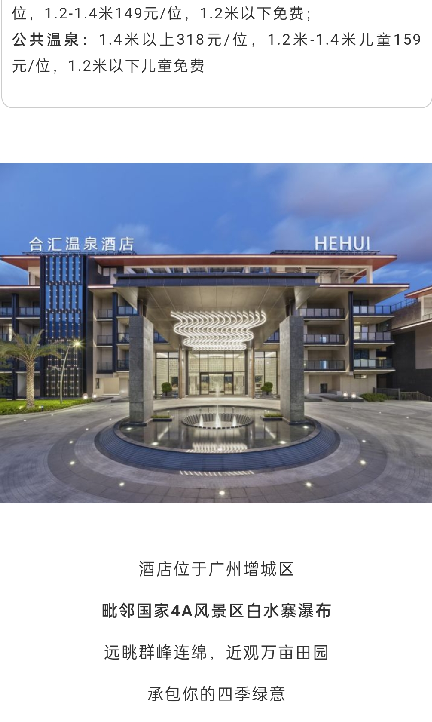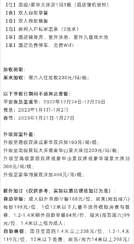 1月5日-3月31日 广州合汇温泉酒店【高级/豪华大床1间1晚+自助早+自助晚+私家温泉2池水】(周日至周四)春节不适用
