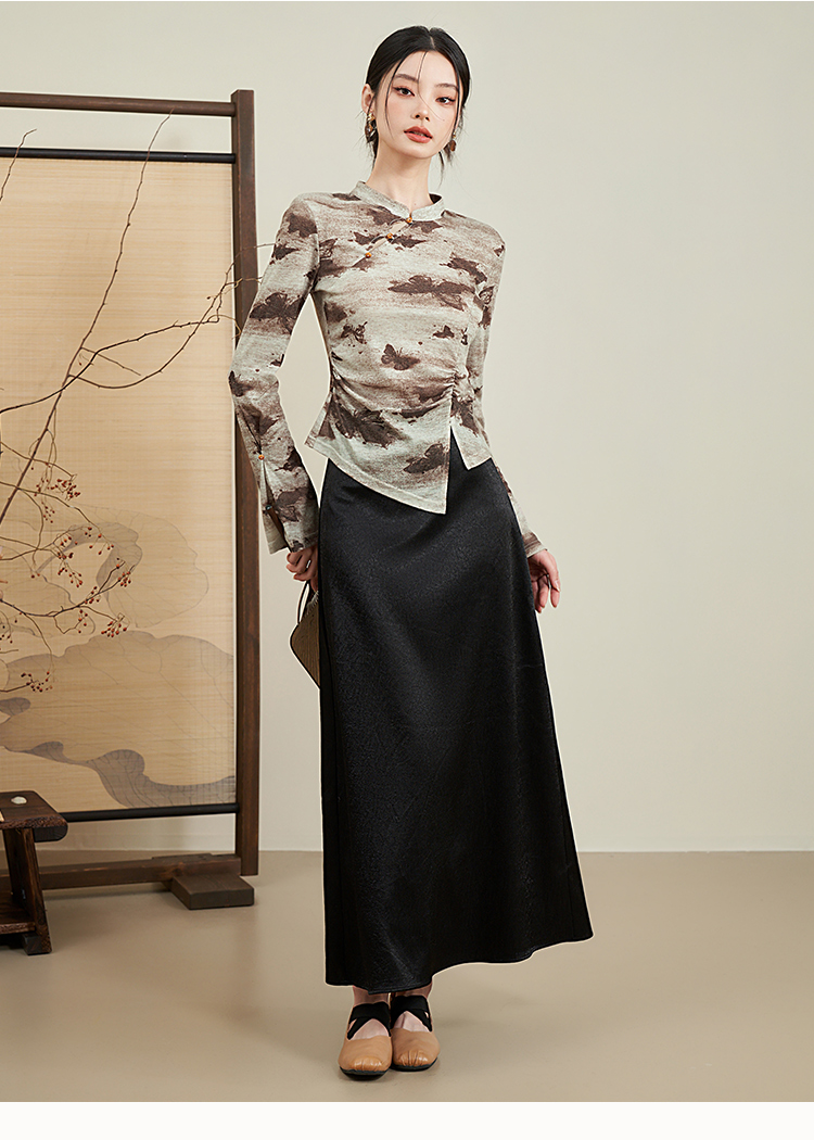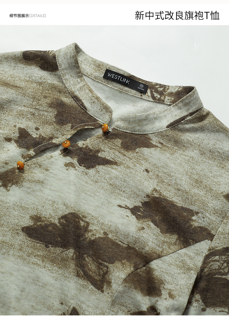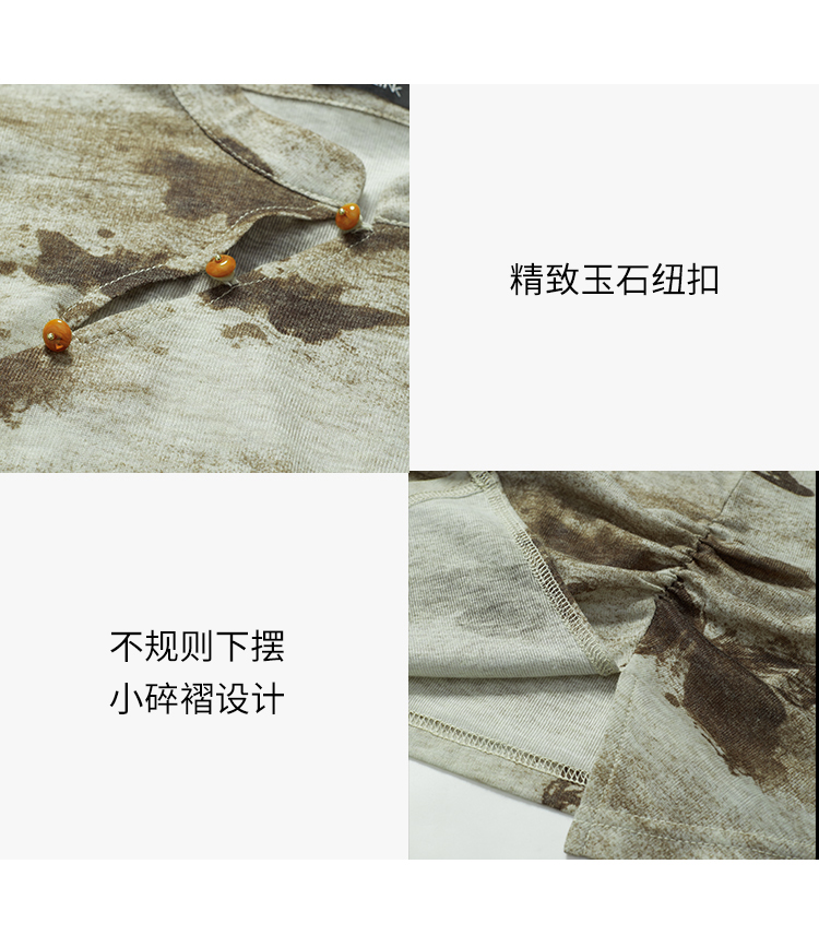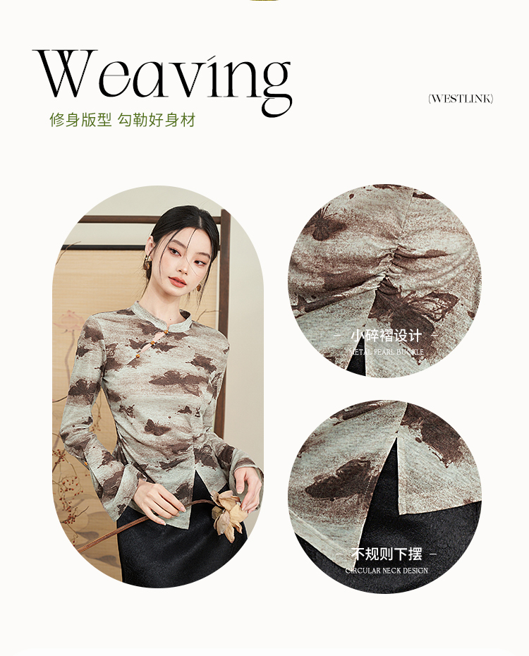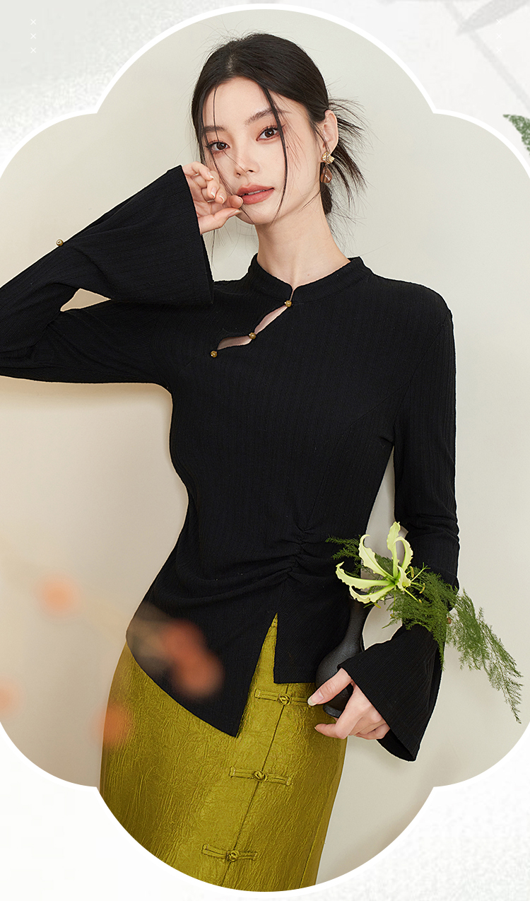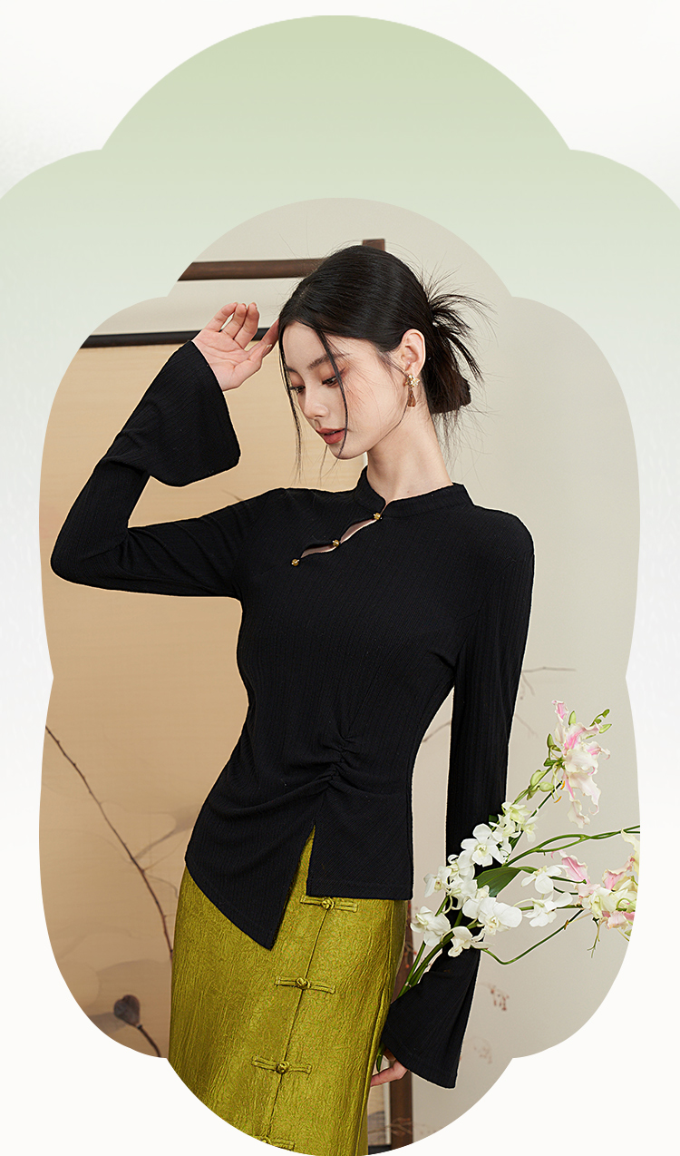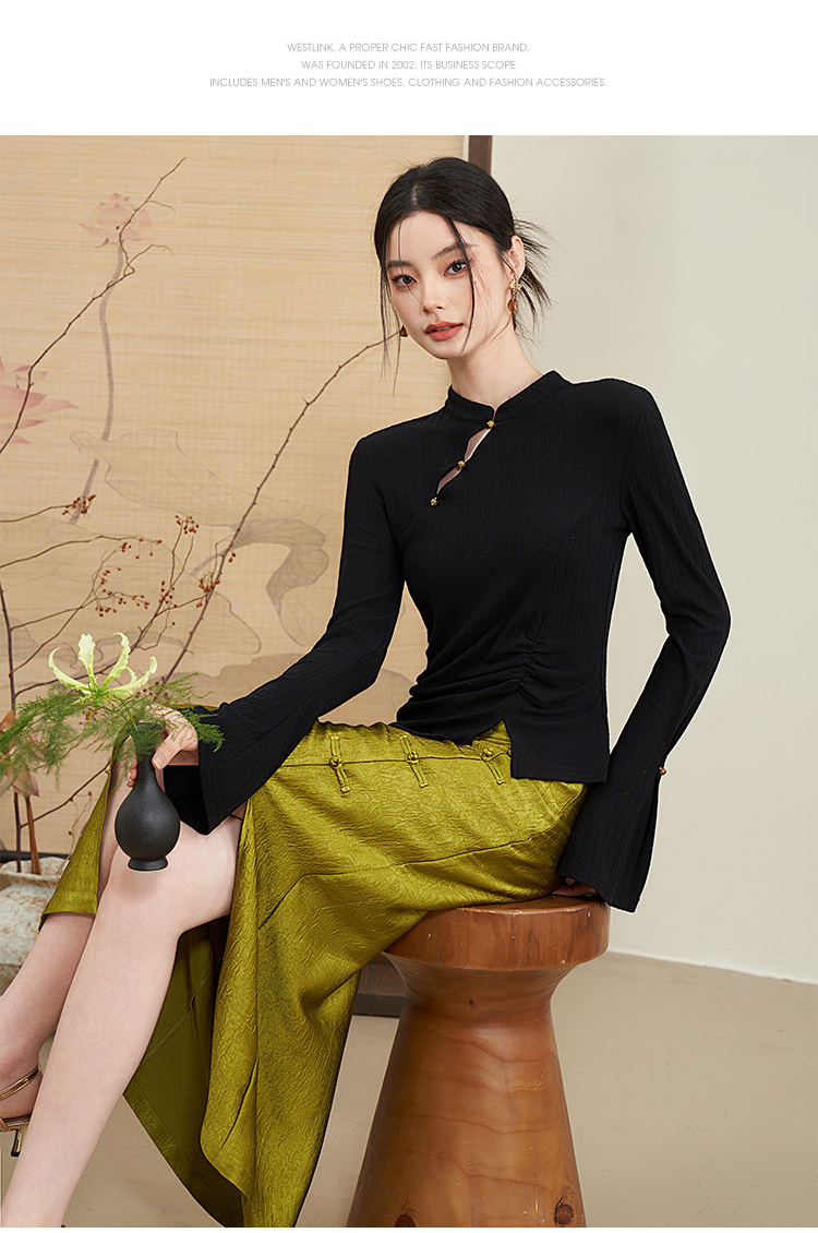西遇新中式国风小立领长袖T恤女新款修身显瘦内搭打底衫D0040957(D0240015)