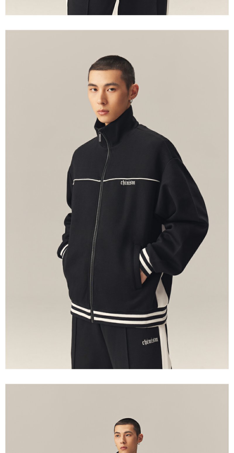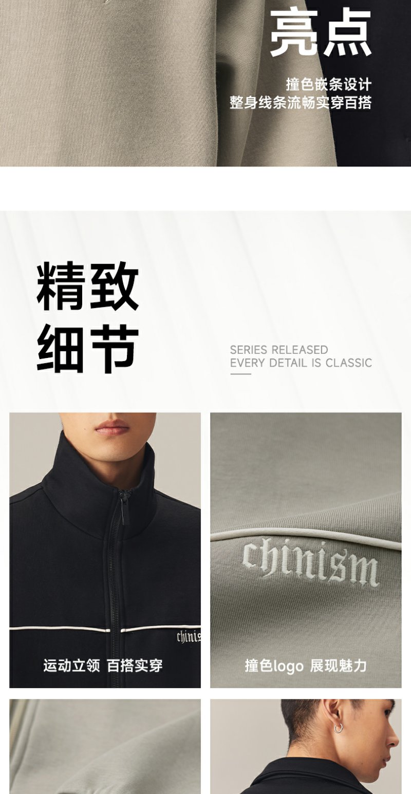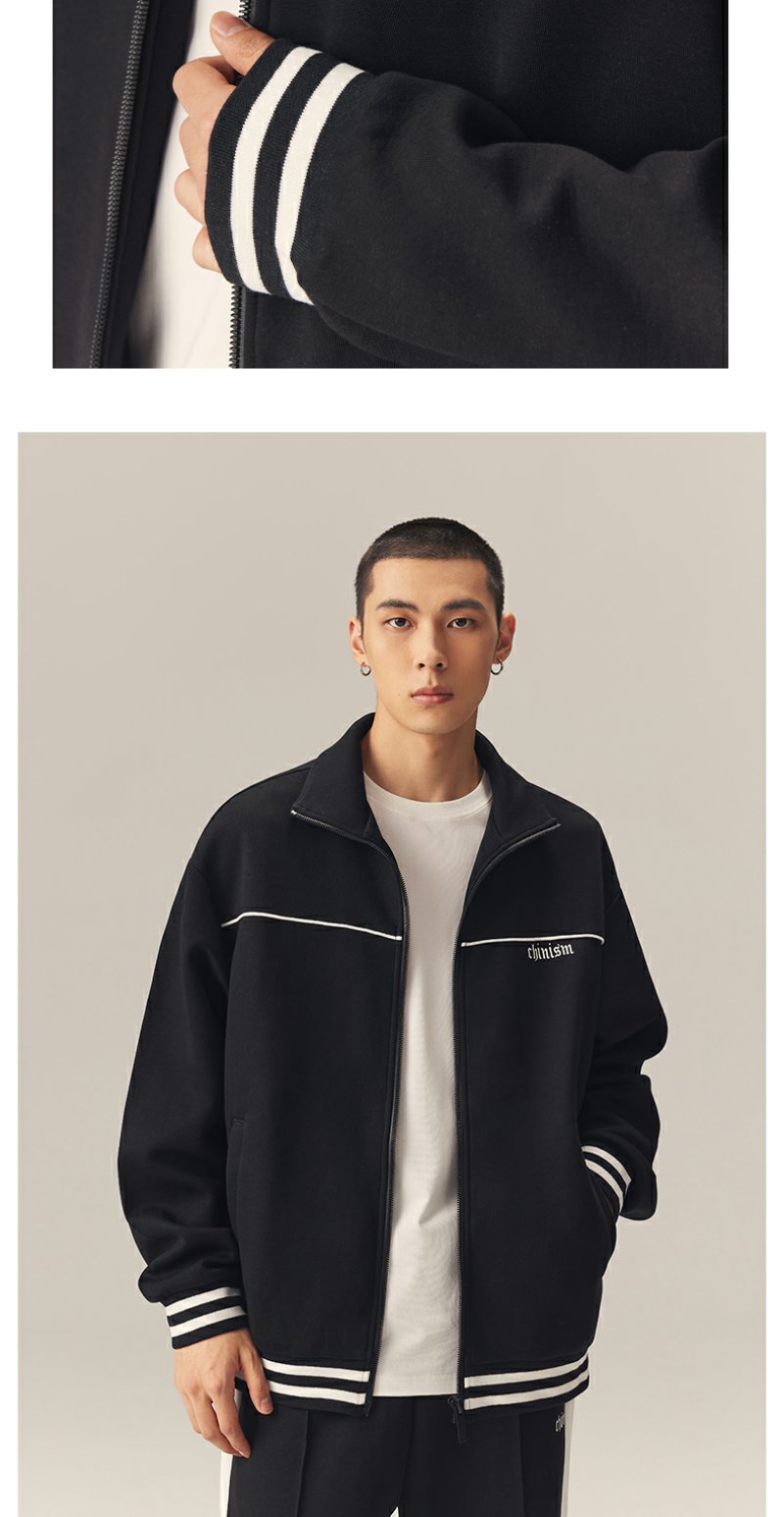 CHINISM赤尘 撞色刺绣立领开衫运动夹克男秋季美式休闲男士外套