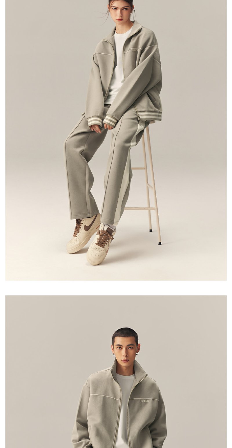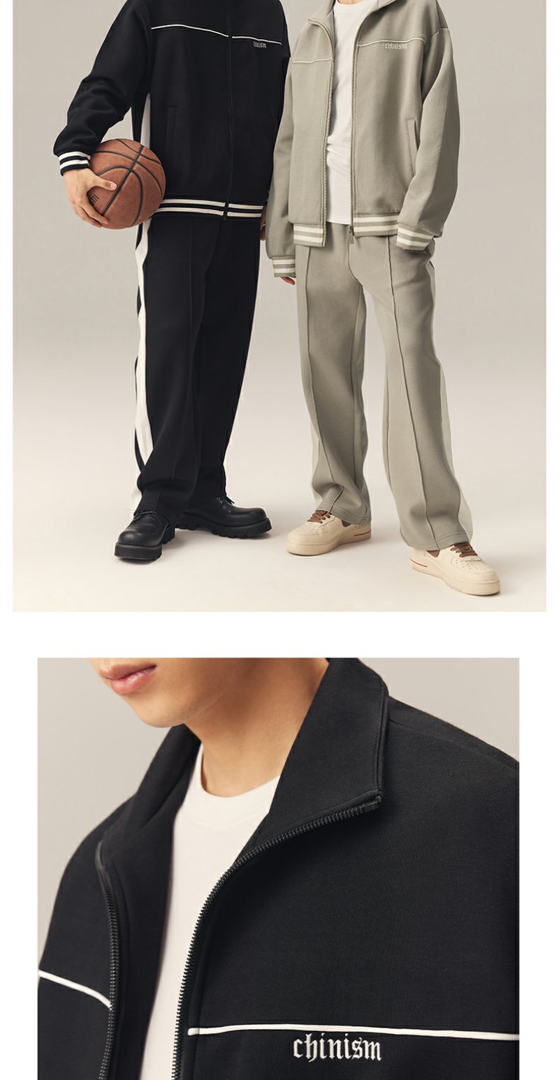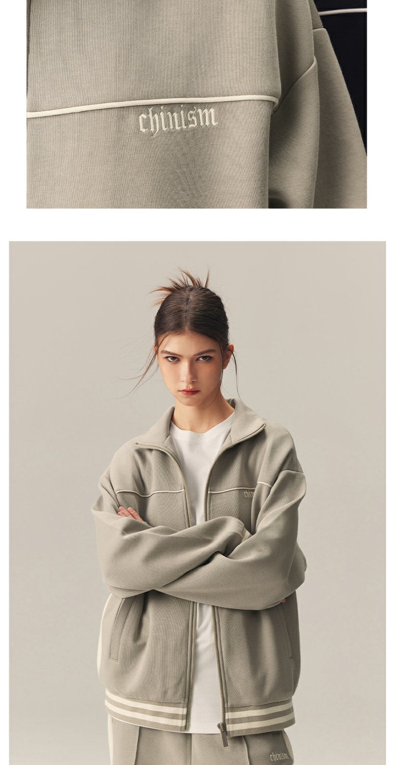 CHINISM赤尘 撞色刺绣立领开衫运动夹克男秋季美式休闲男士外套