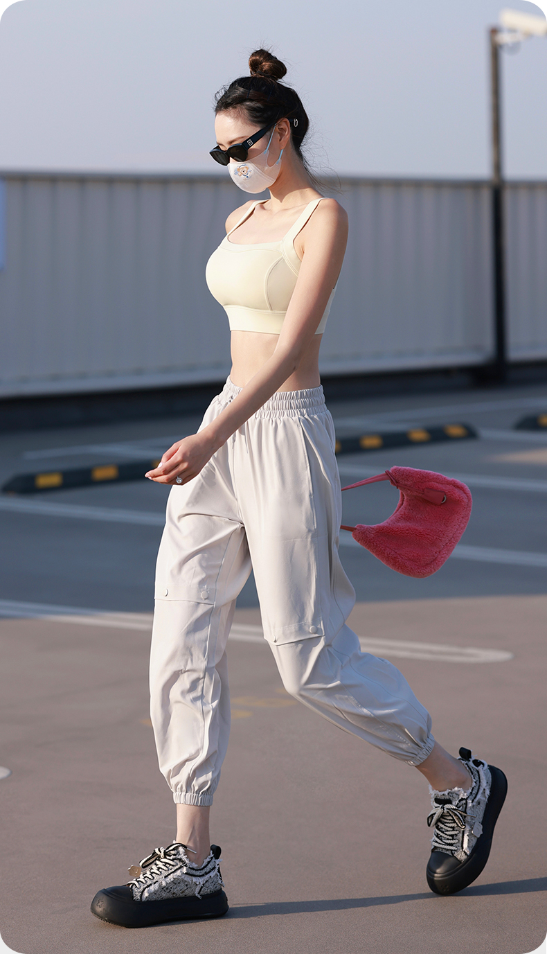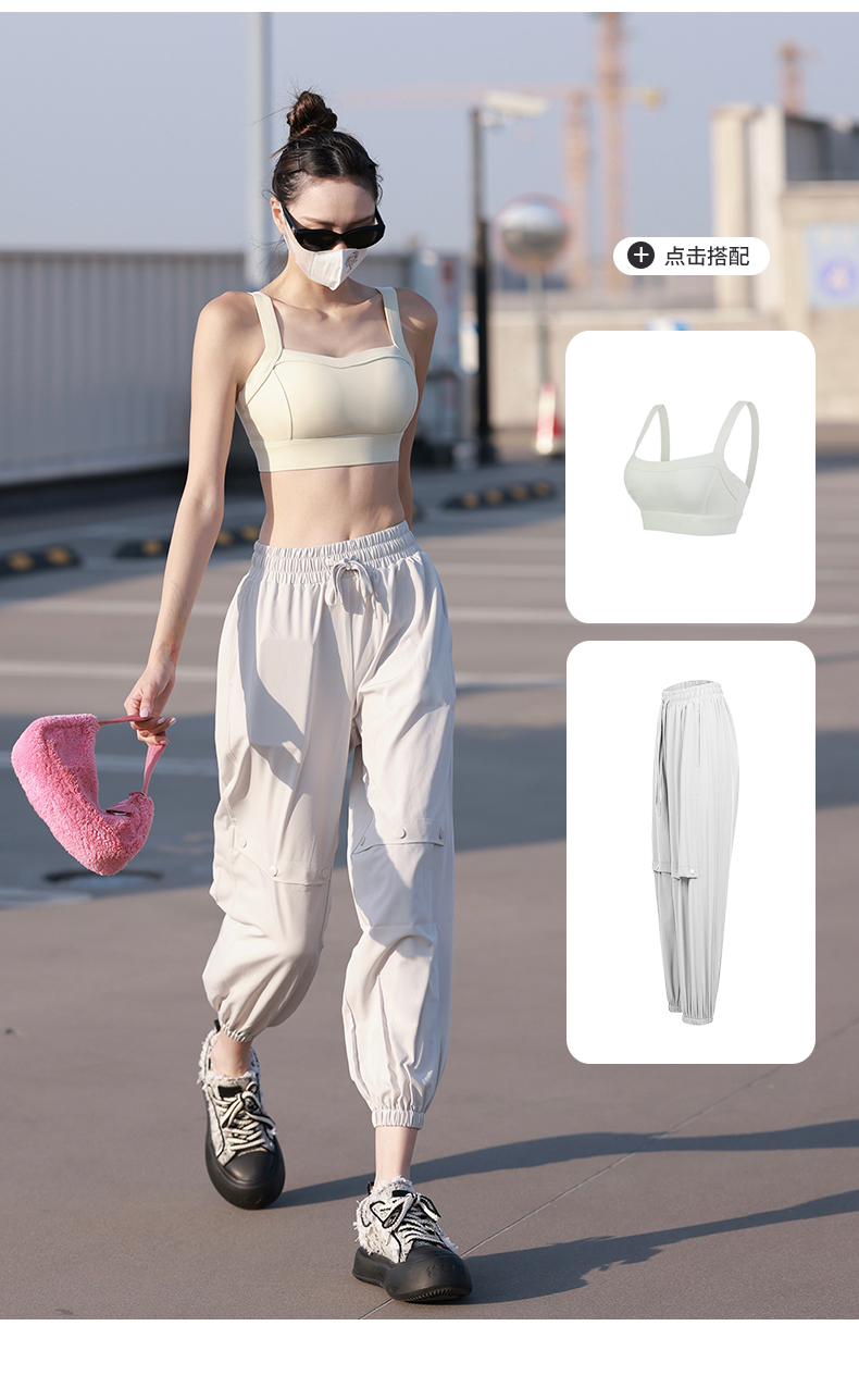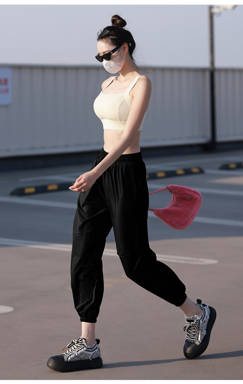 beemen高腰宽松裤 跑步 户外 休闲 透气速干 膝盖纽扣设计 多样时尚穿着