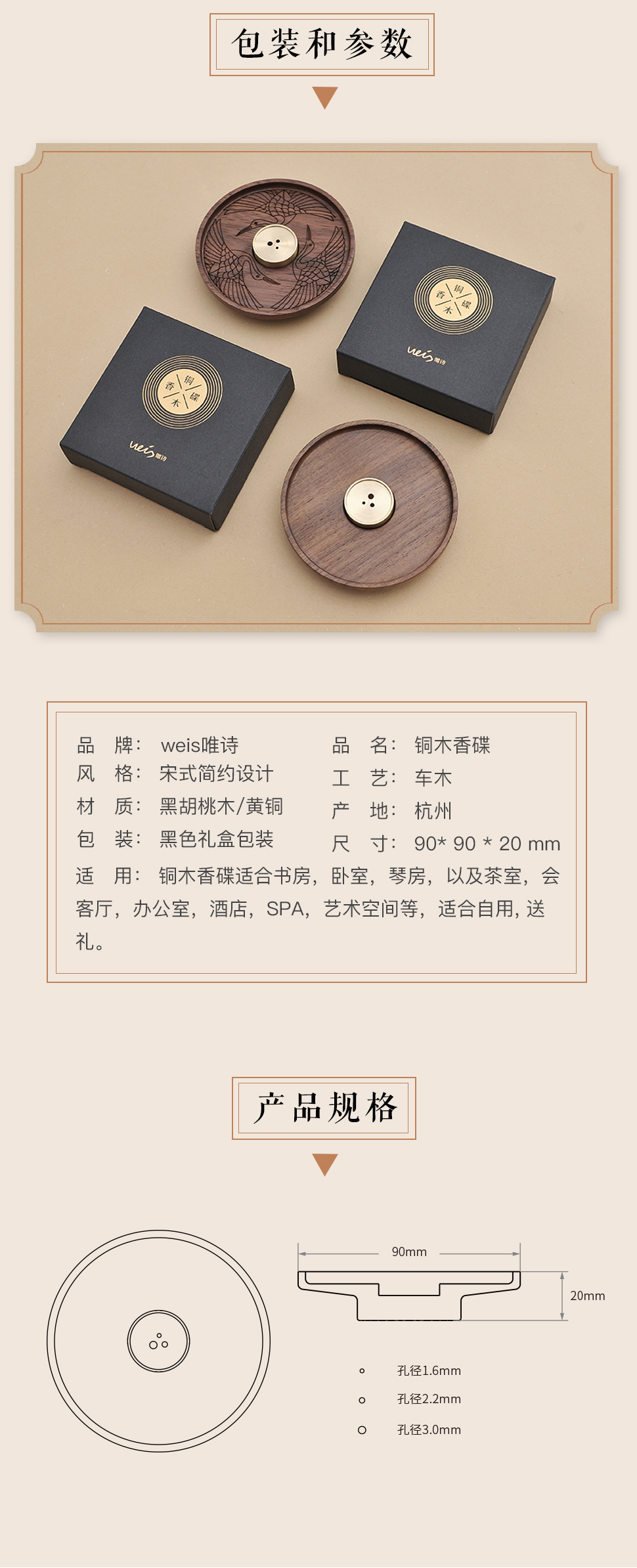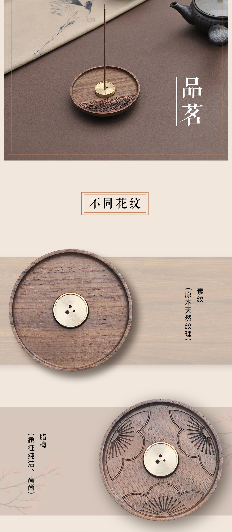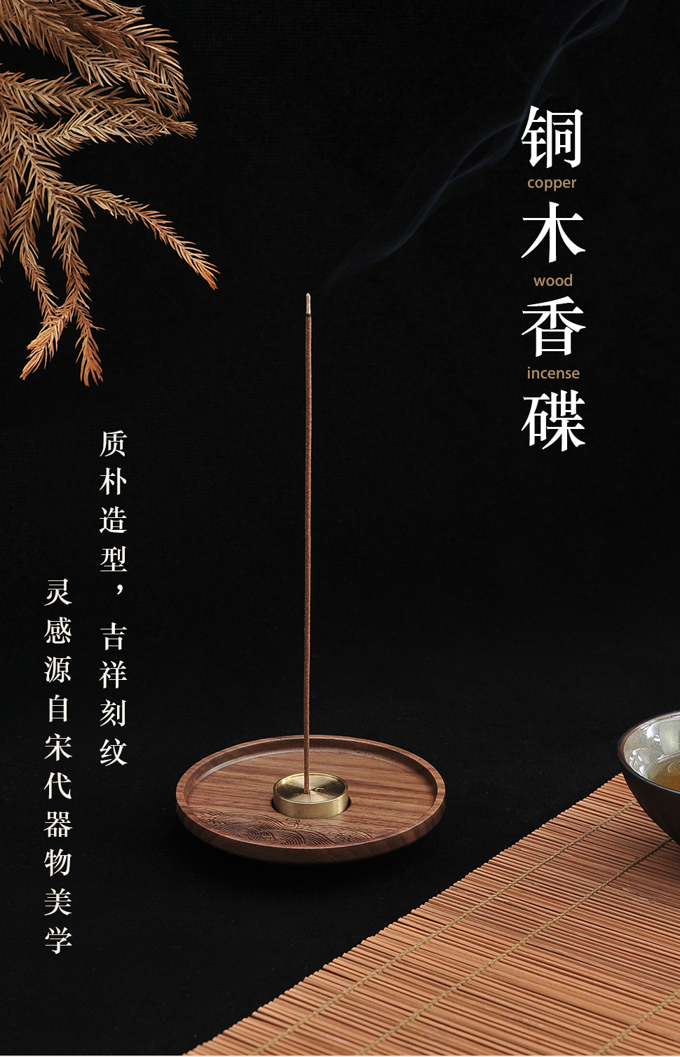 魏杭帅 铜木香碟 香具插香器 夏莲/基础/飞鹤/腊梅/水波可选