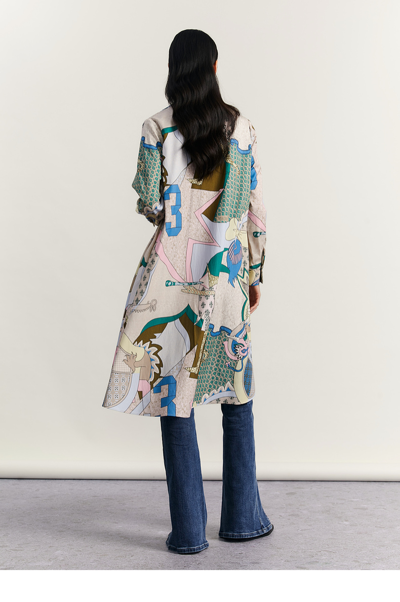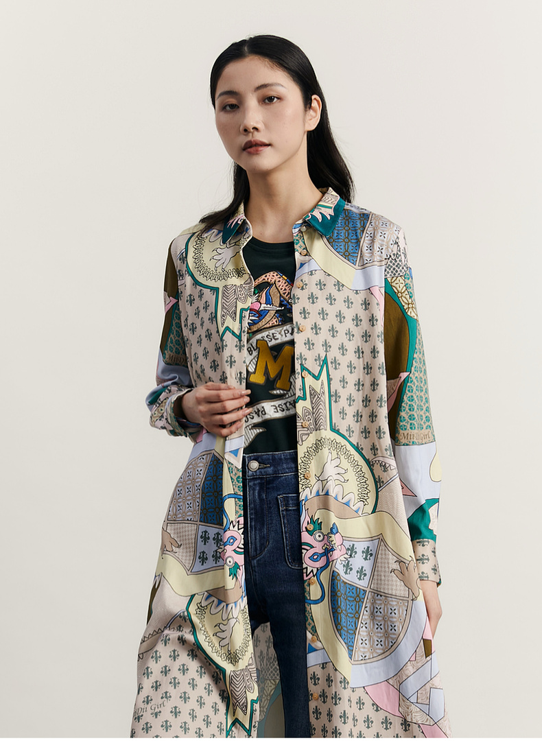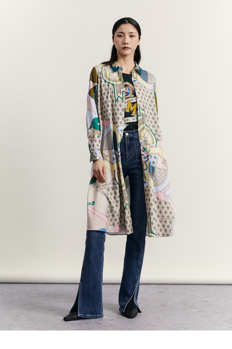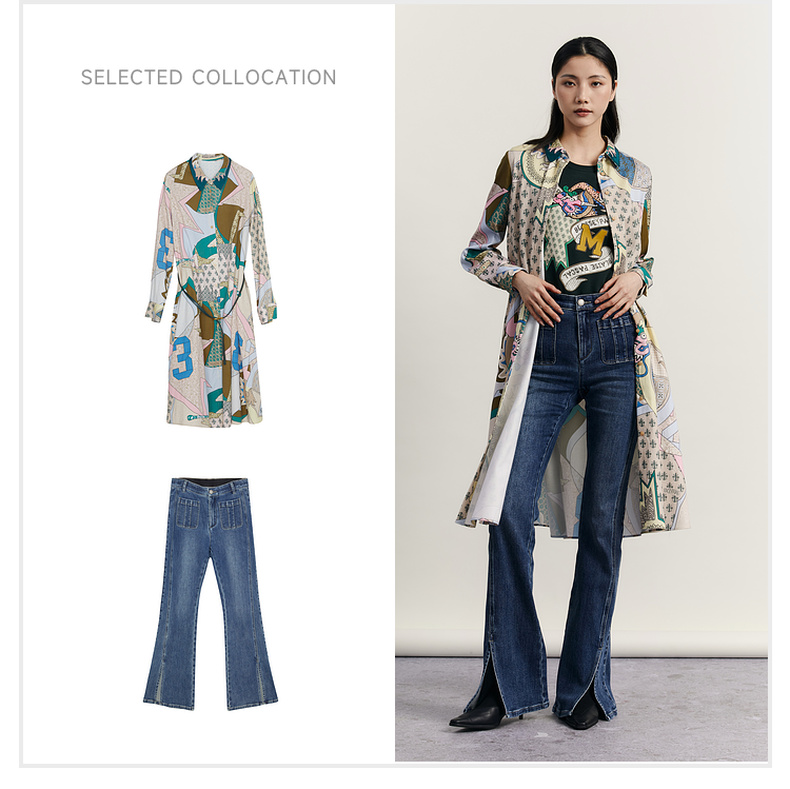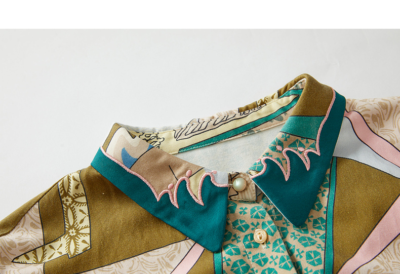 谜底花色连衣裙长袖2023冬新品复古田园风中长裙配腰带234ML1519