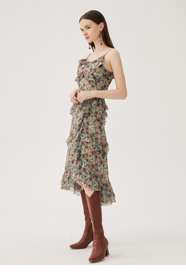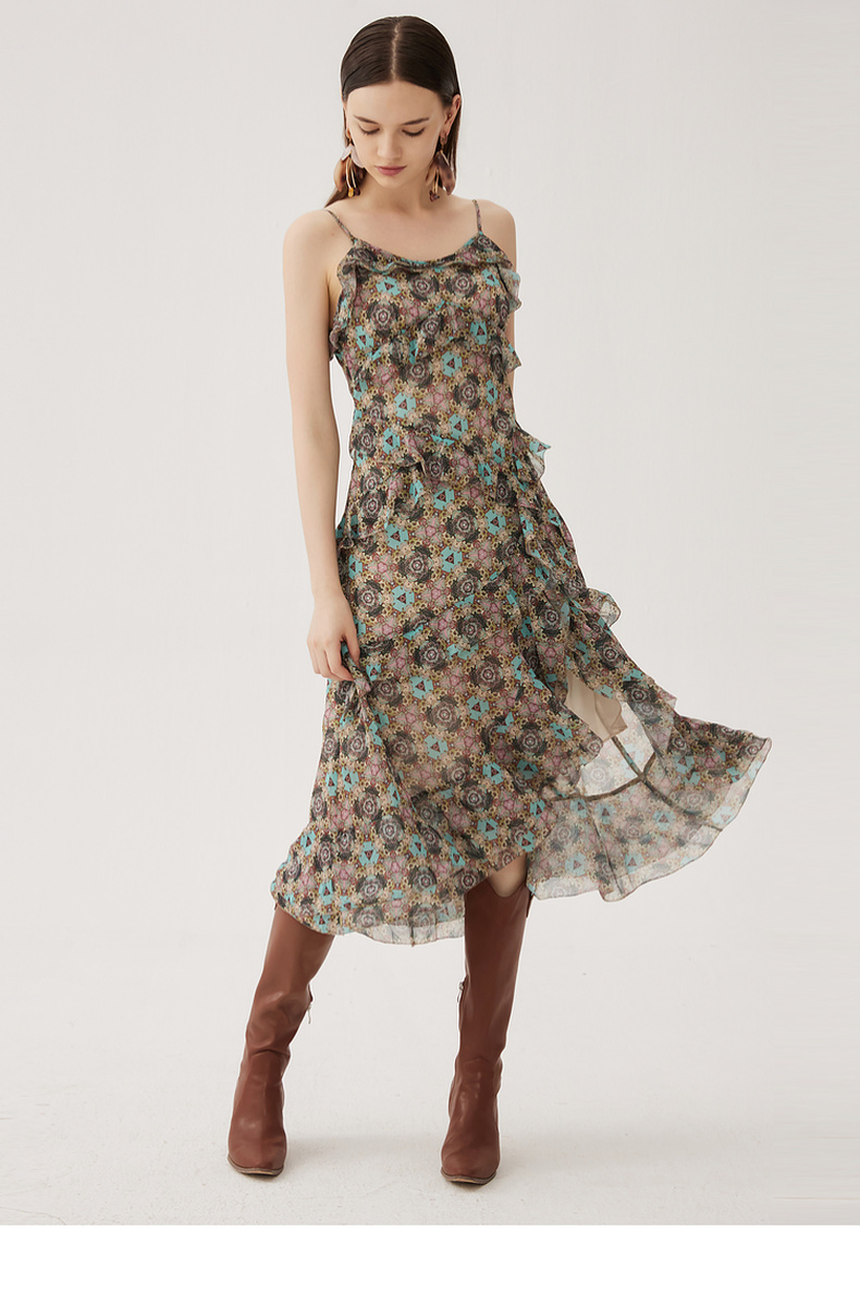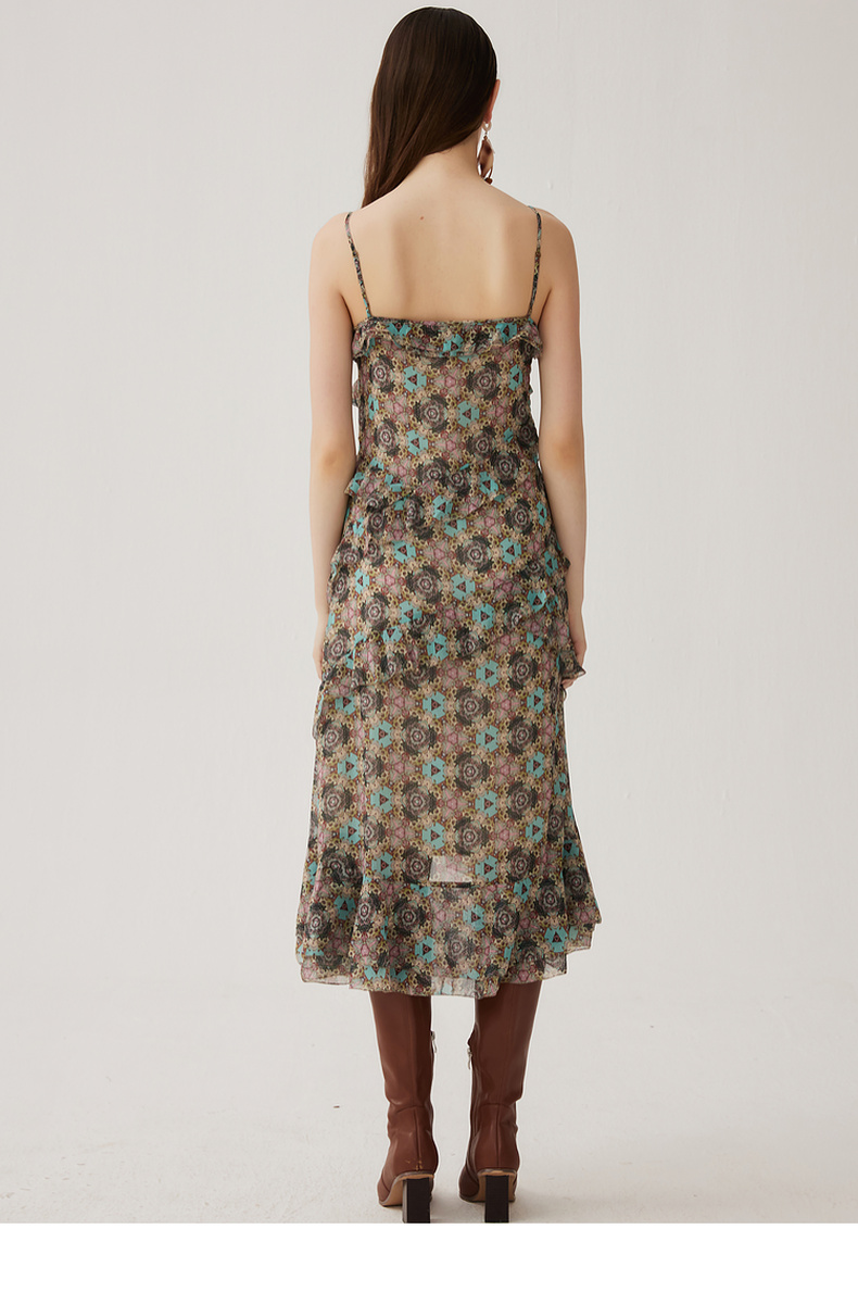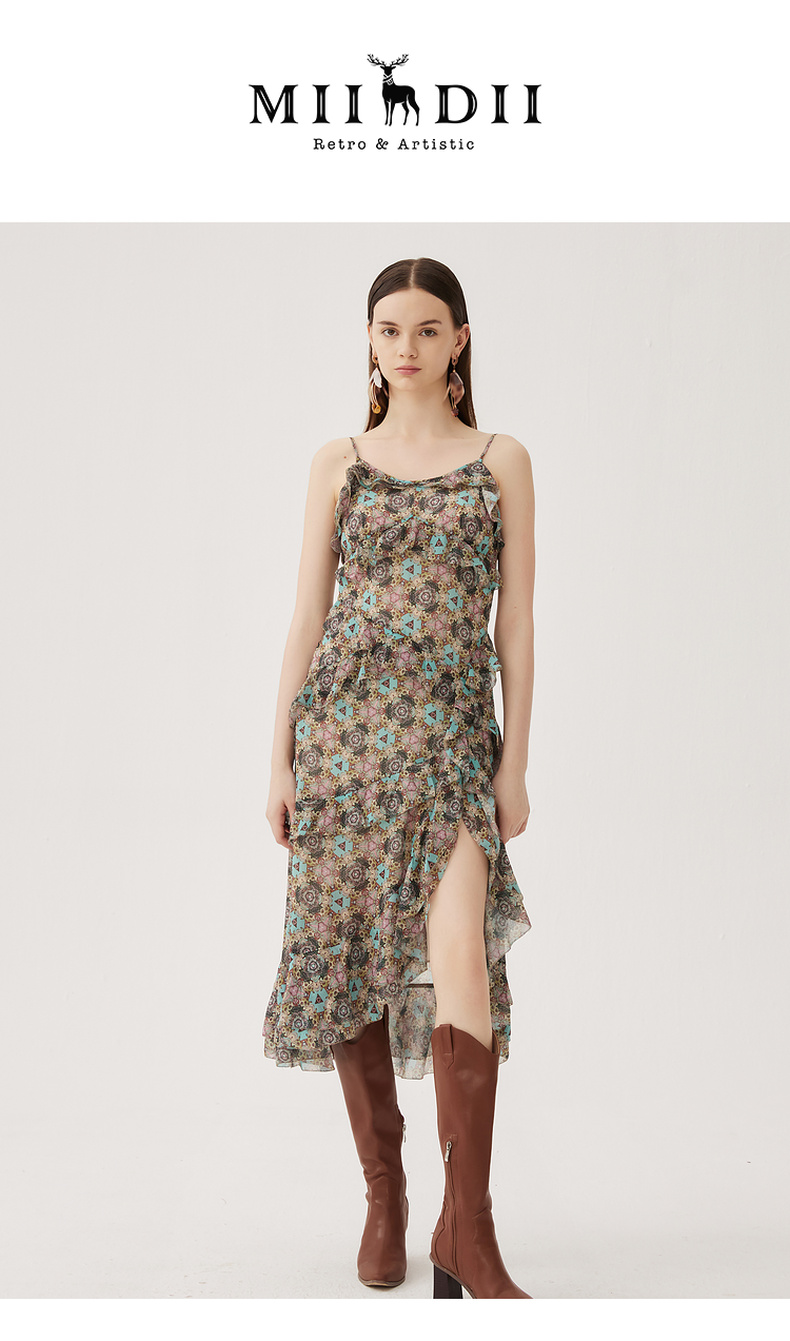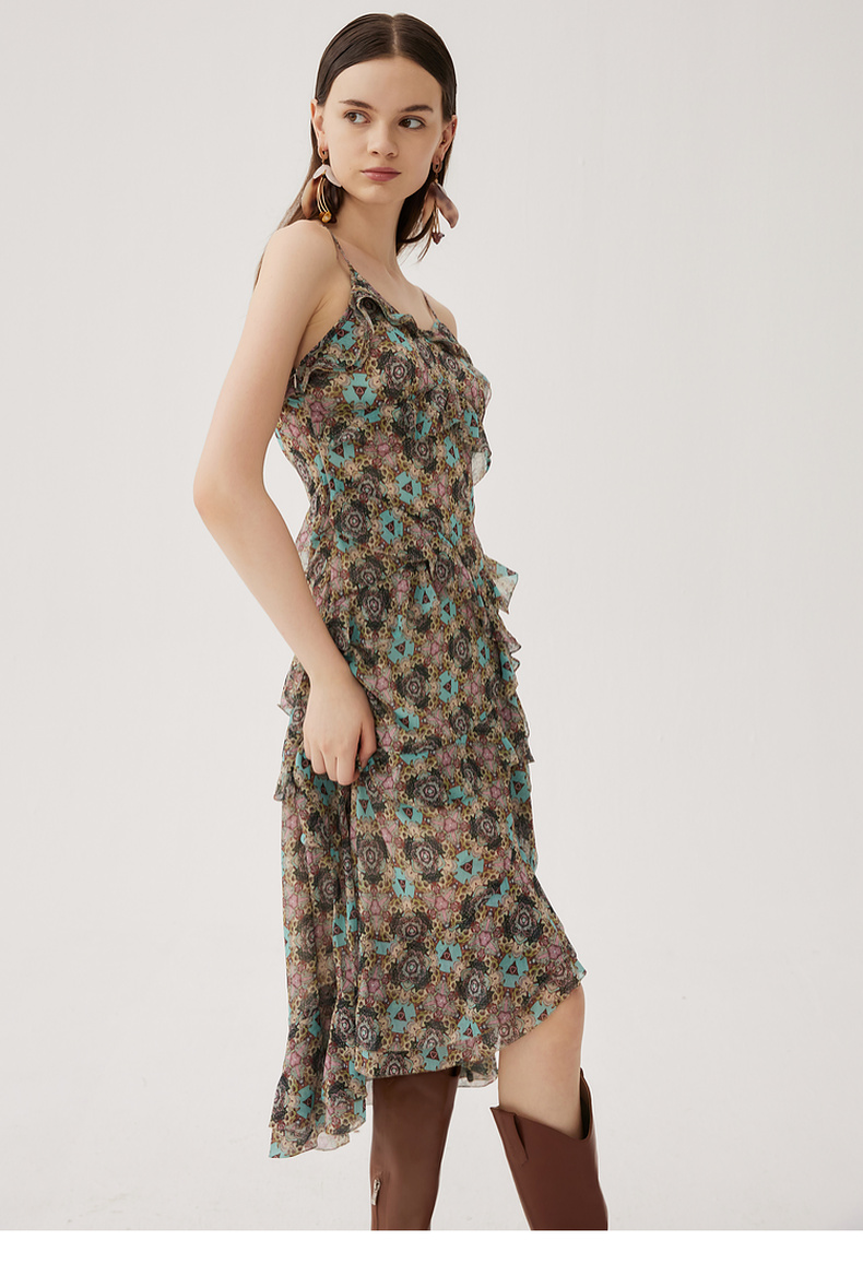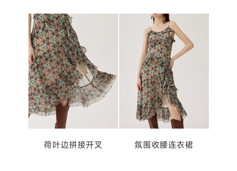 谜底吊带连衣裙2024夏季新款度假风花色不规则下摆长裙247ML5013