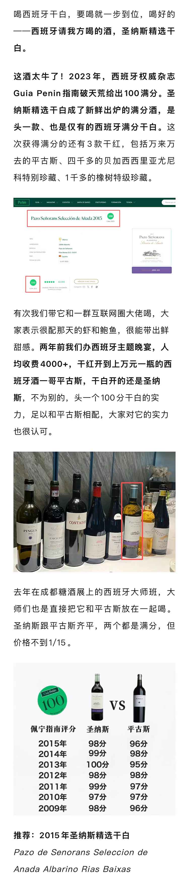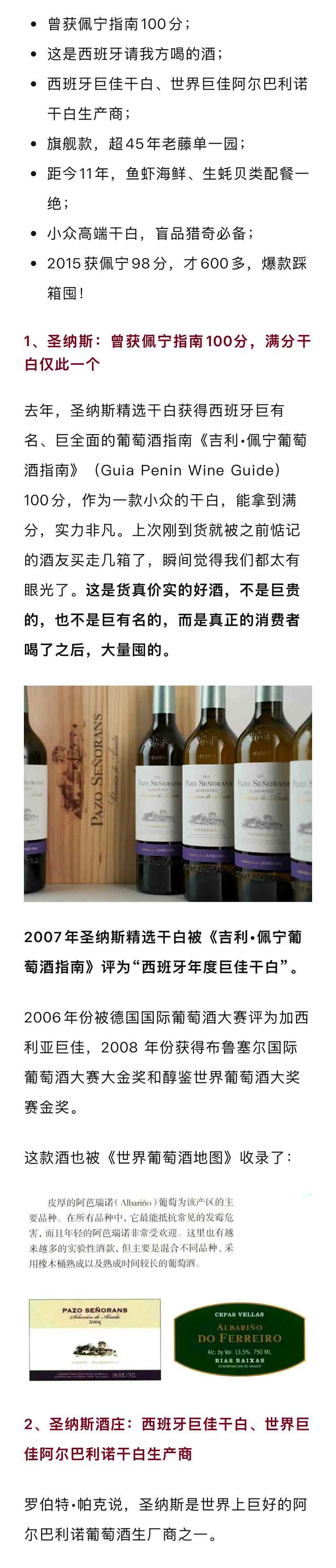 【曾获100分】2015年西班牙圣纳斯精选干白葡萄酒