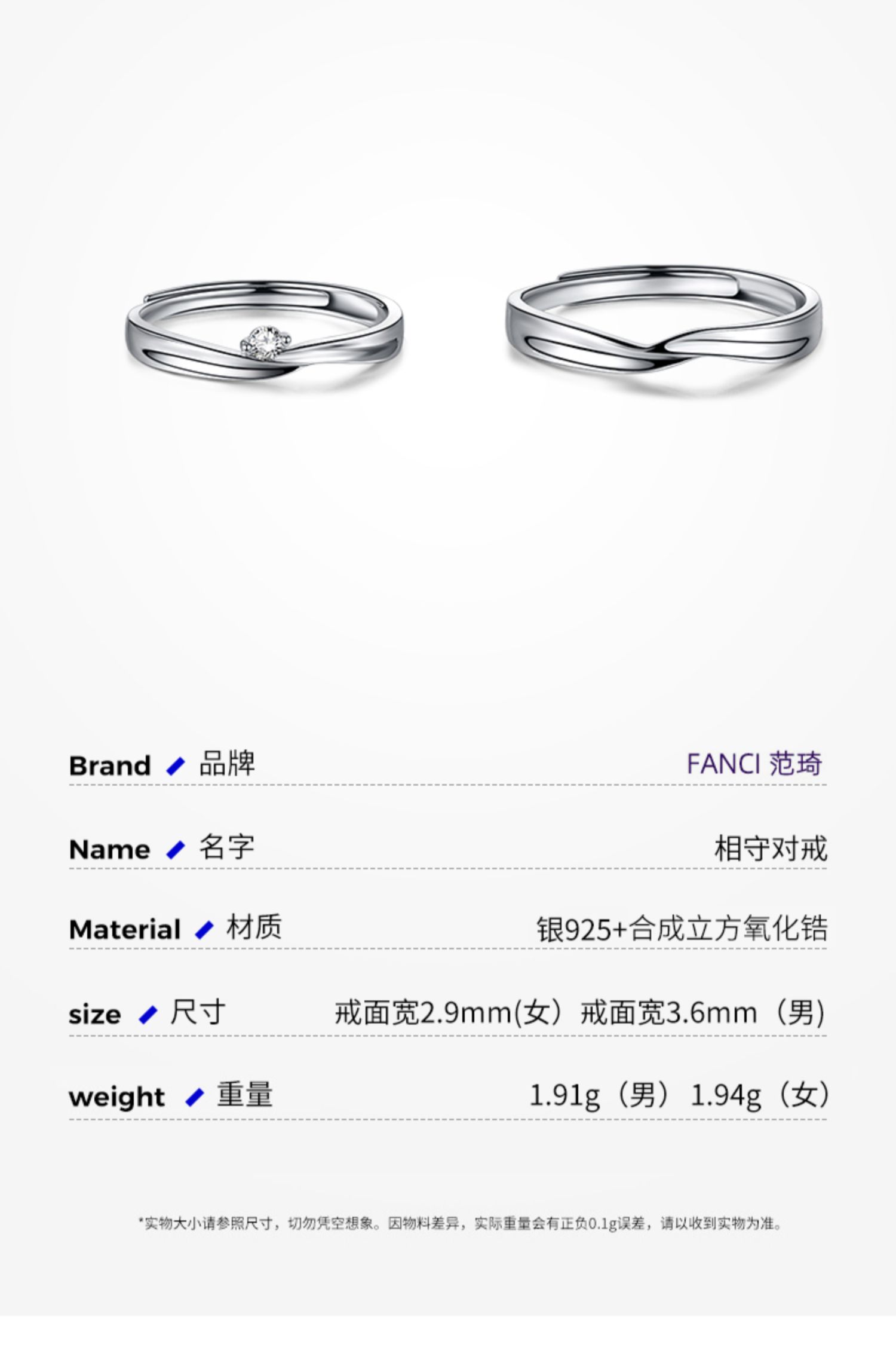 【相守对戒】Fanci范琦银饰对戒925银男女款对戒活口对戒刻字情侣生日礼物