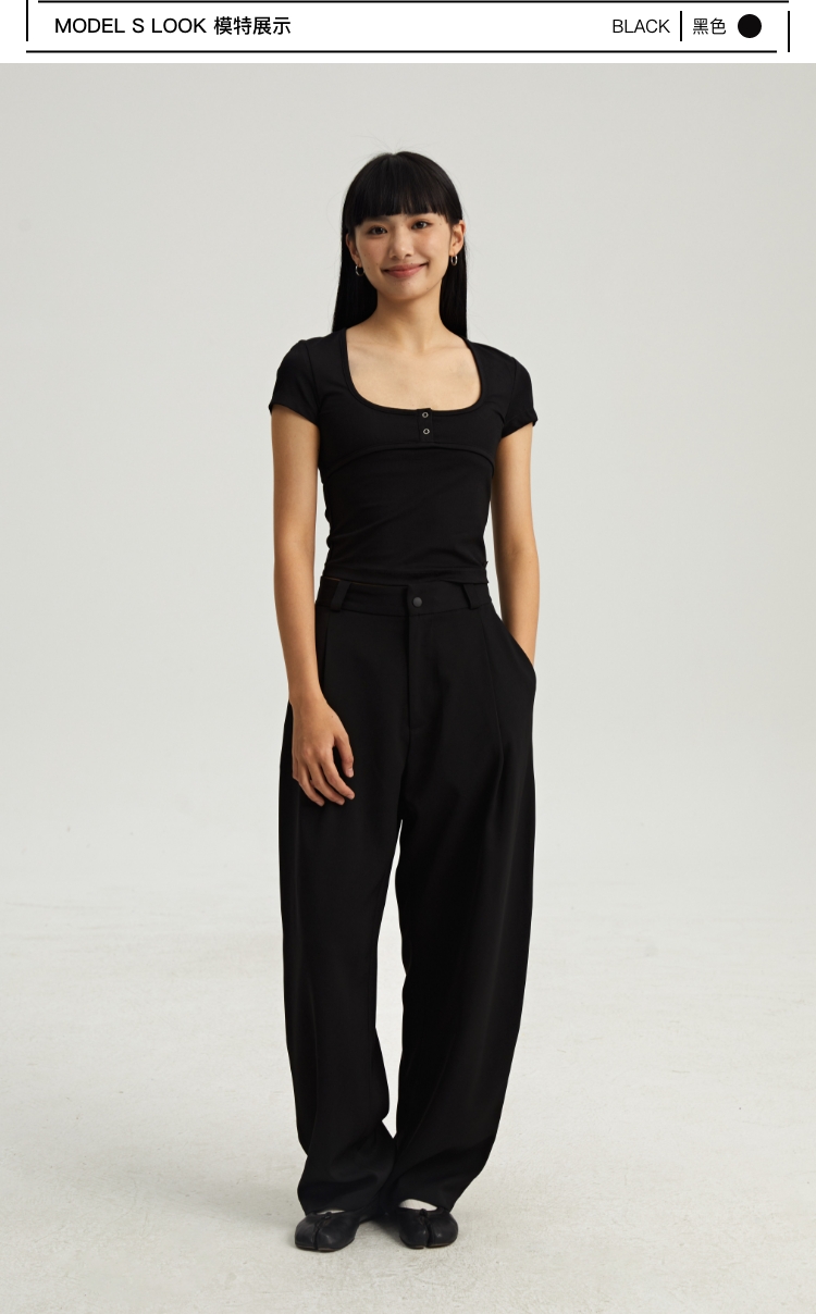 Oneup羊毛中袖圆领修身T恤