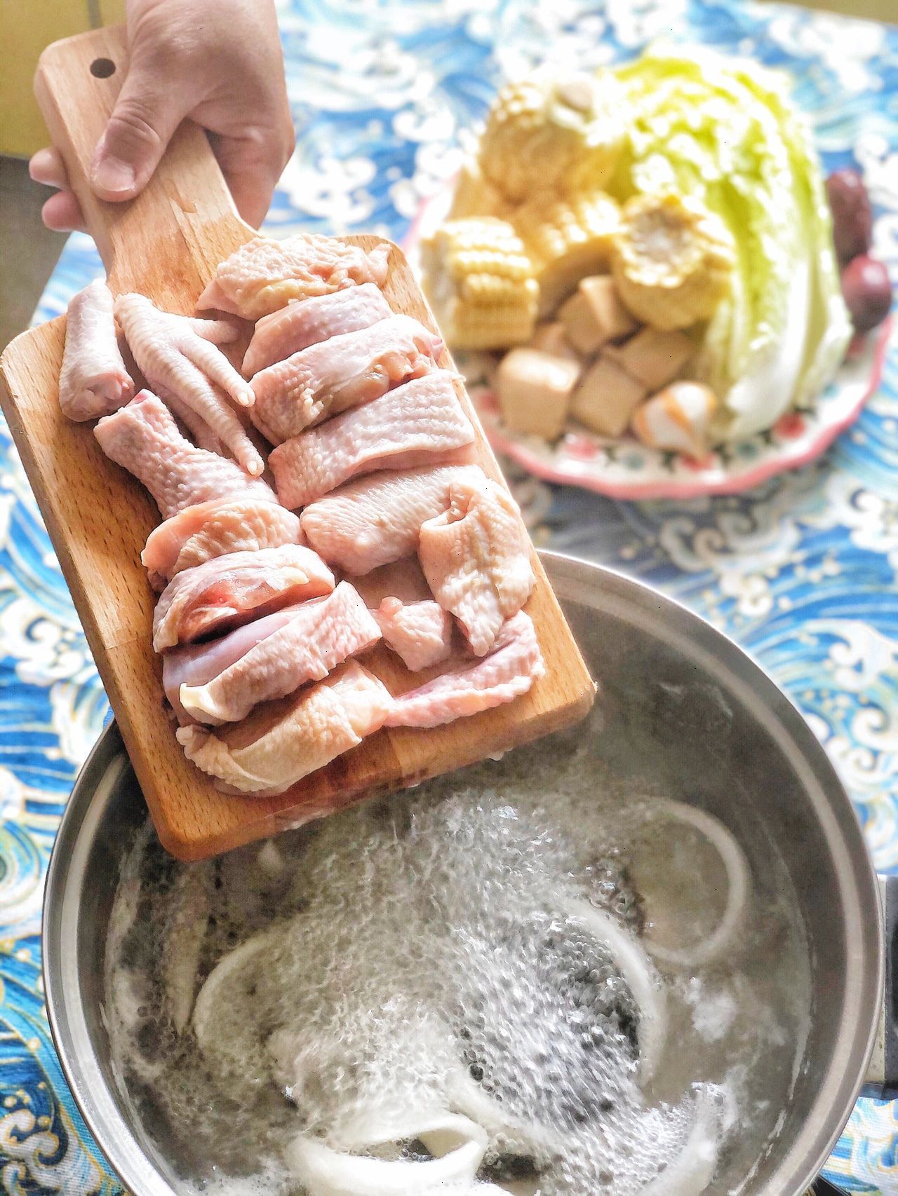 3⃣煮沸后,下鸡肉