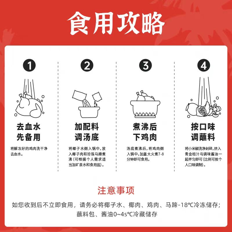 广东走地鸡、海南文昌椰子水,椰肉条、珍珠马蹄,金桔、沙姜、辣椒甚至特制的酱油都为你备齐了!
