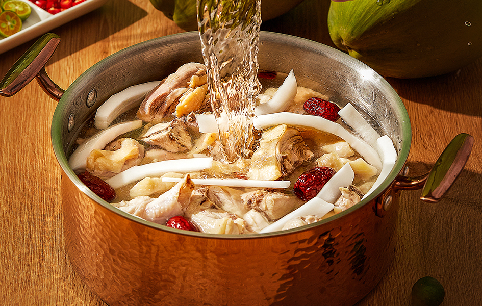 鲜甜可口的椰子水作为汤底