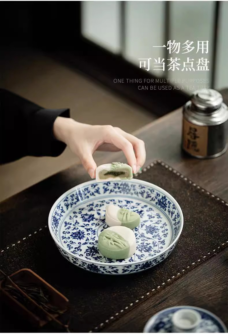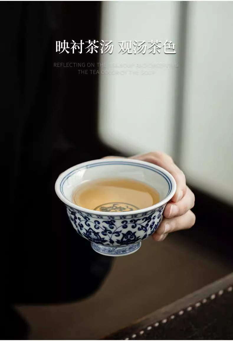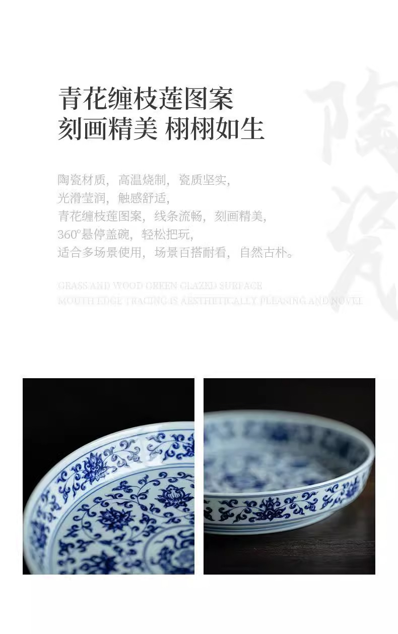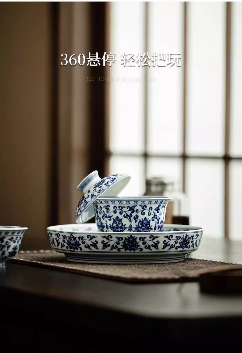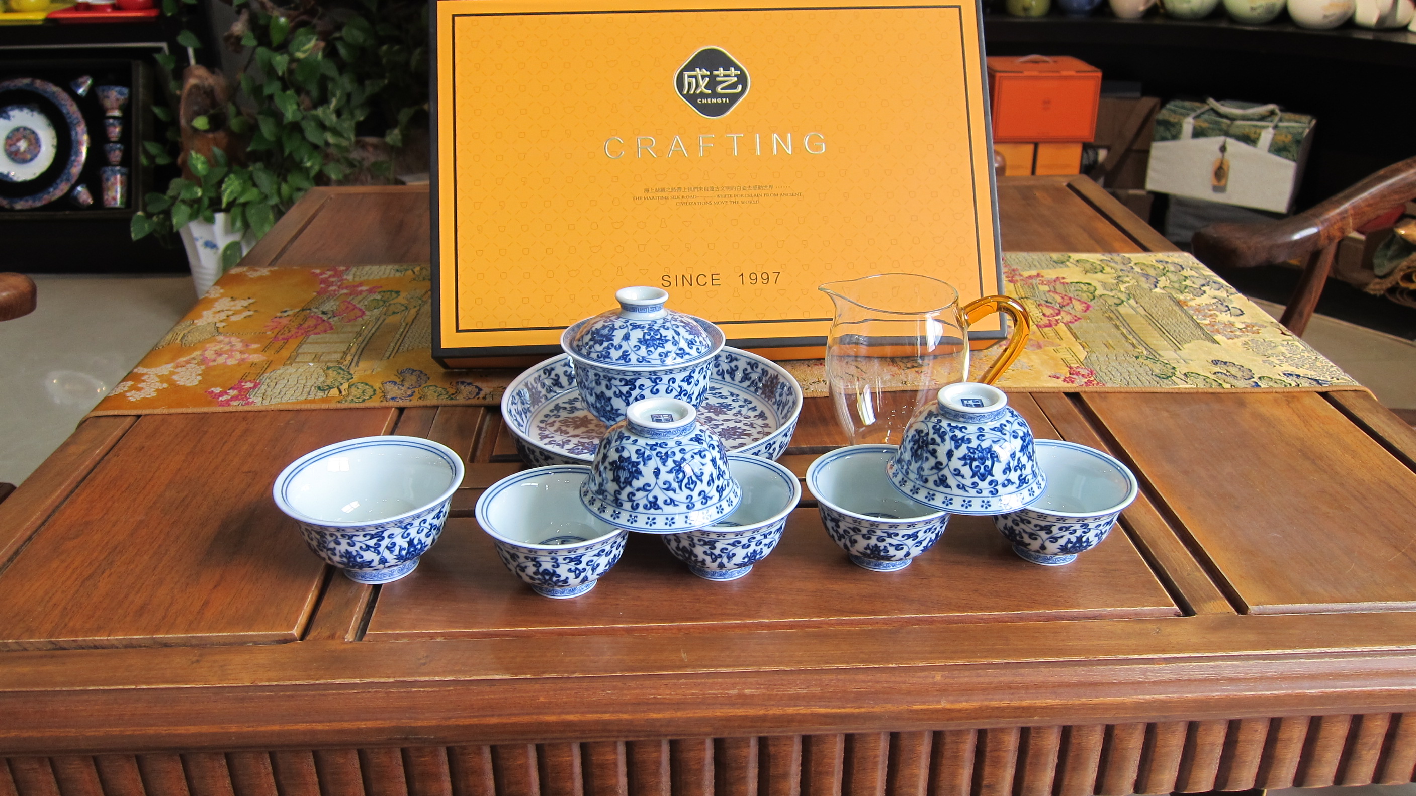 成艺陶瓷 永乐缠枝莲悬停盖碗10入功夫茶具套装釉下彩复古家用壶承成艺永乐缠枝莲悬停盖碗套组10入