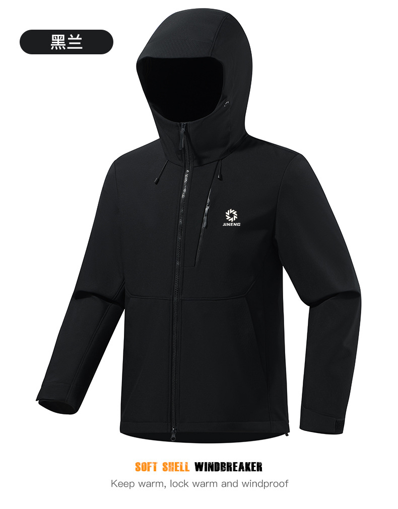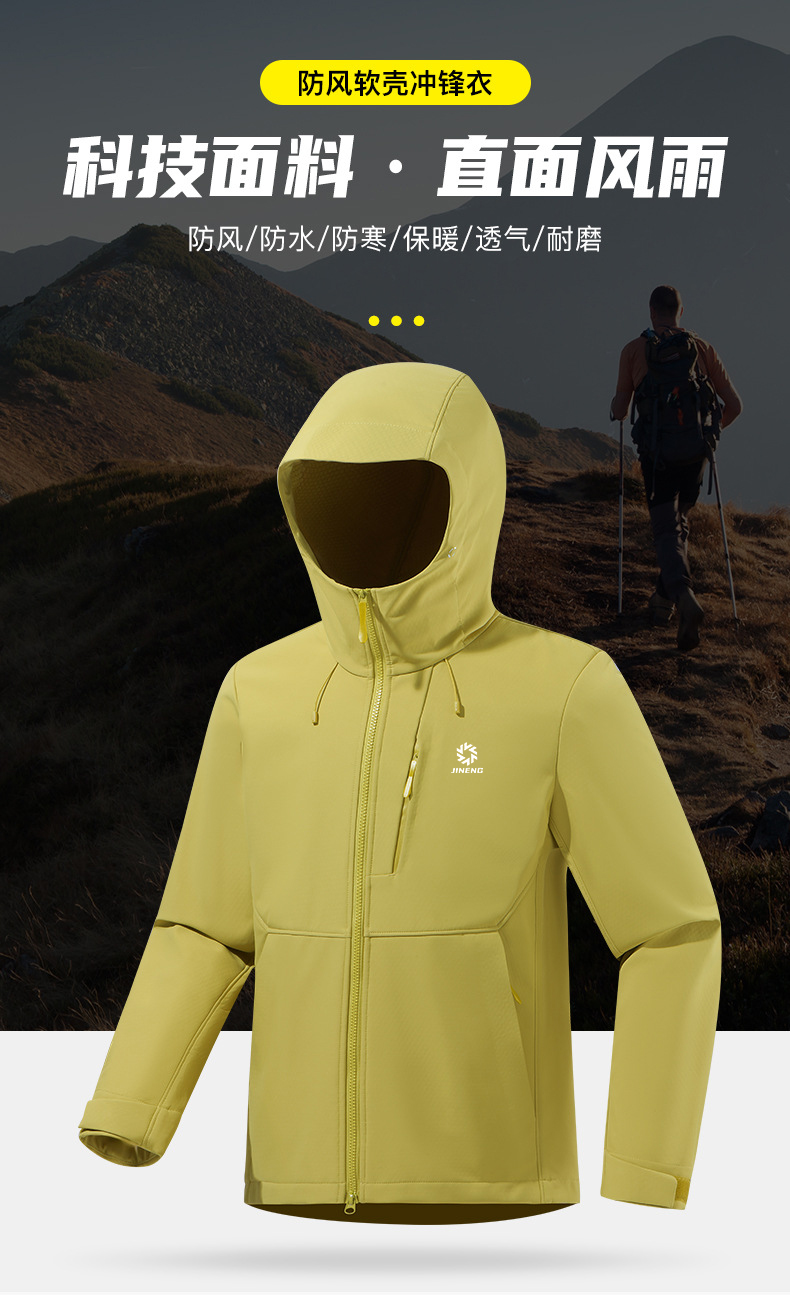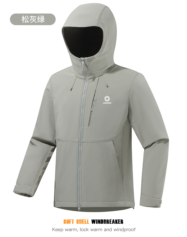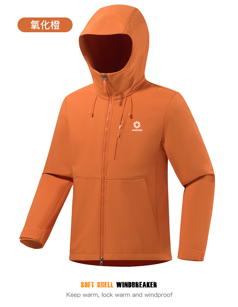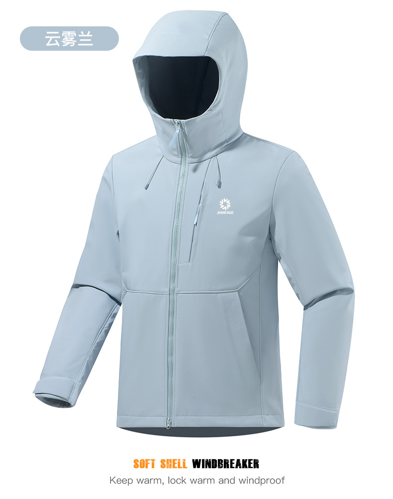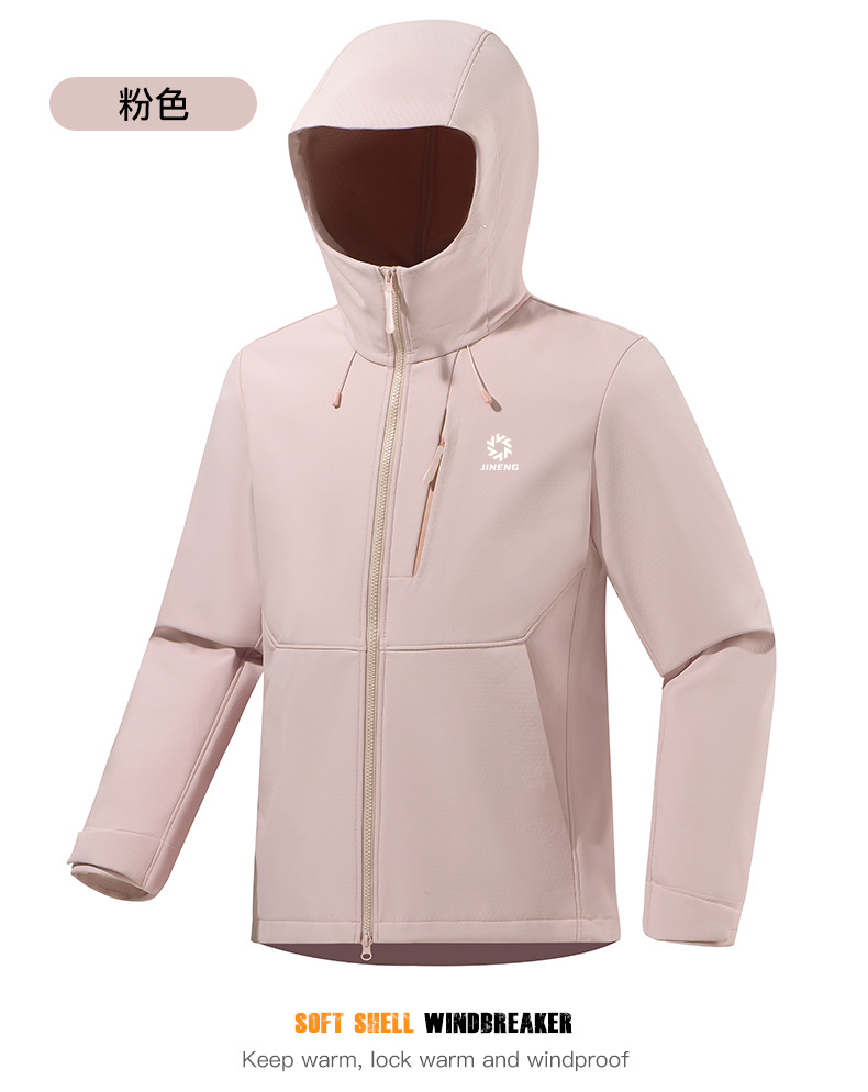 【积能】3.0方格绒软壳冲锋衣男女款连帽保暖秋冬户外跑步运动防风外套