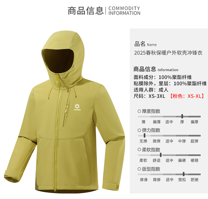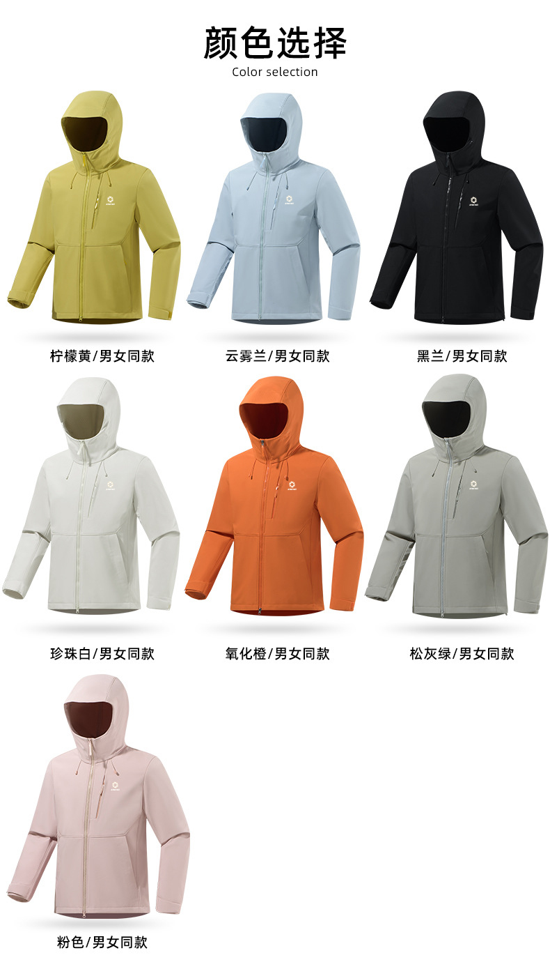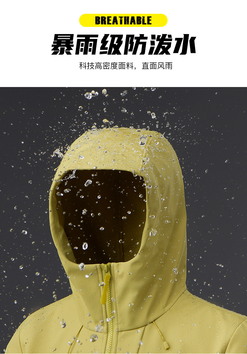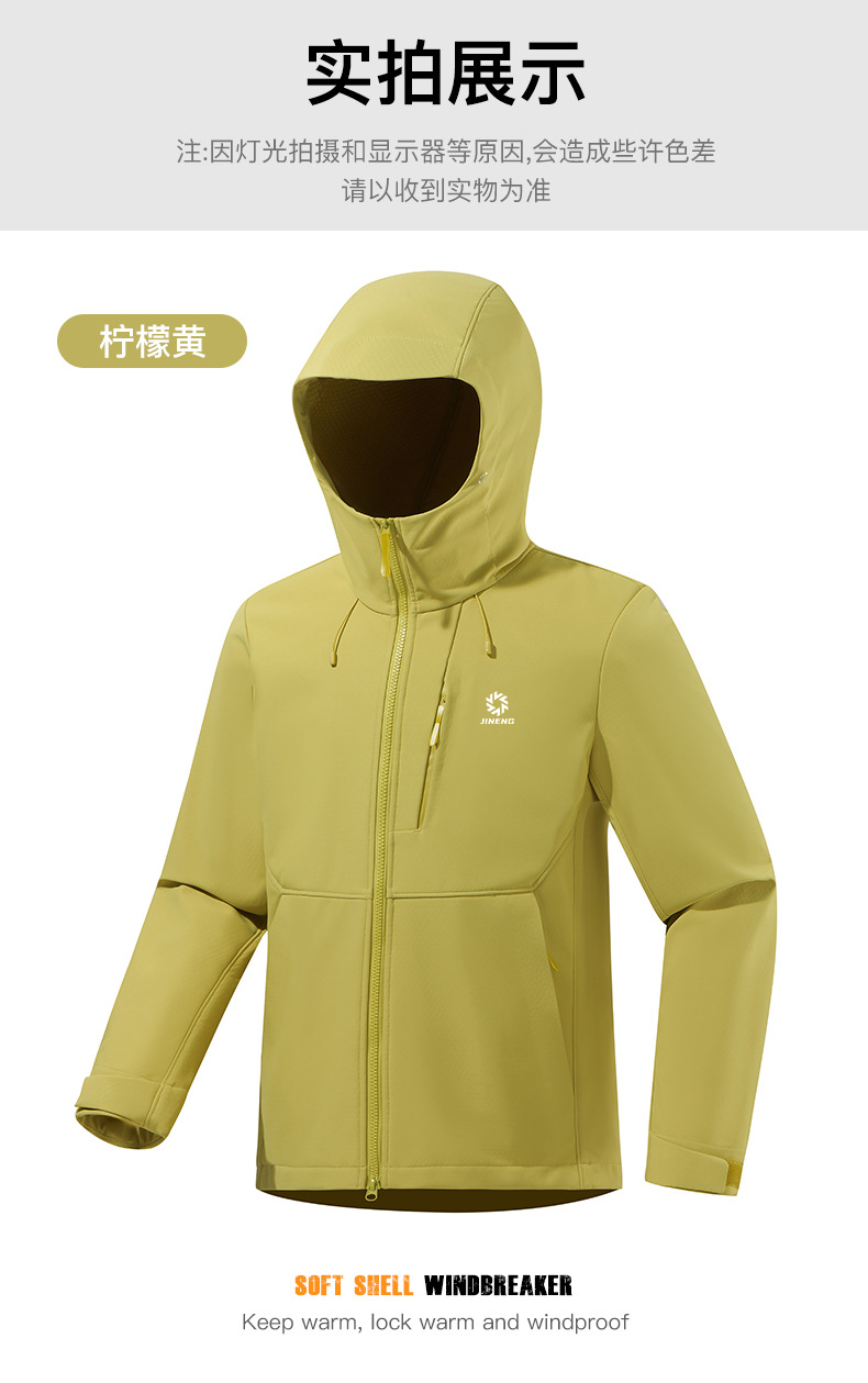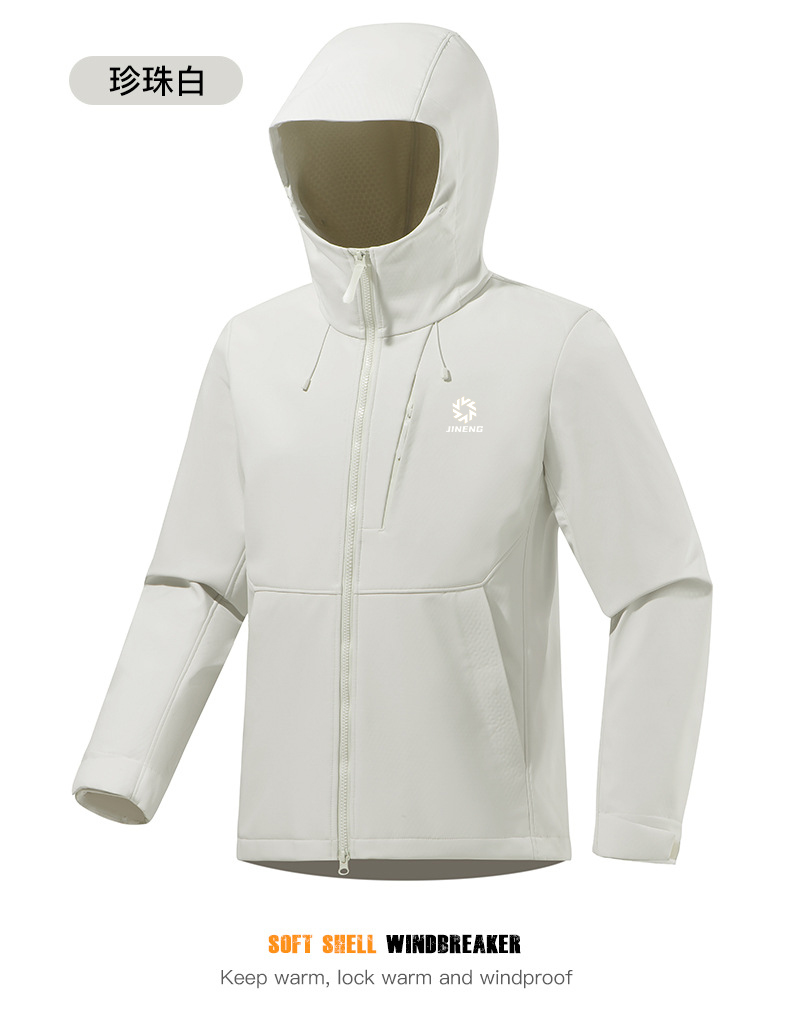 【积能】3.0方格绒软壳冲锋衣男女款连帽保暖秋冬户外跑步运动防风外套