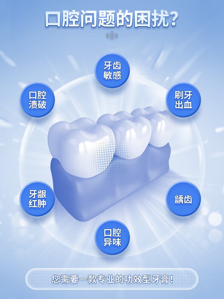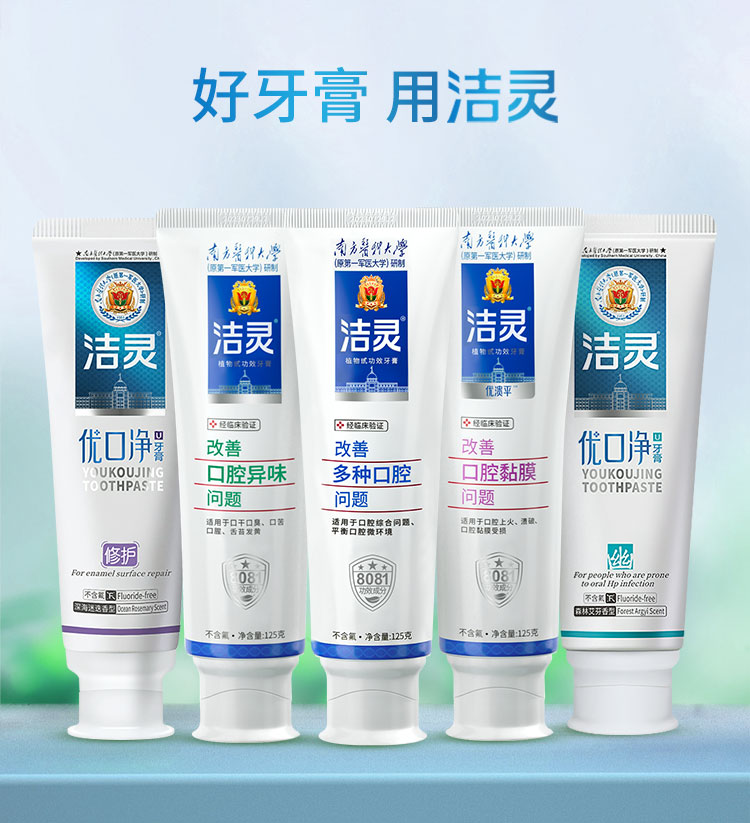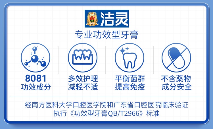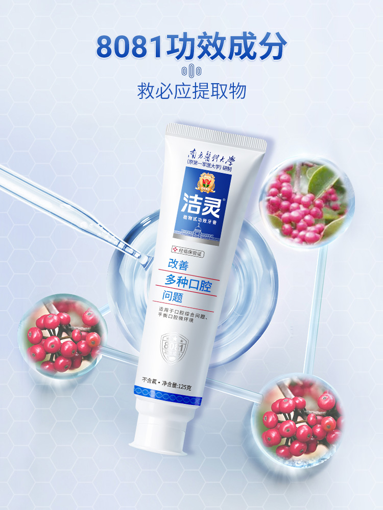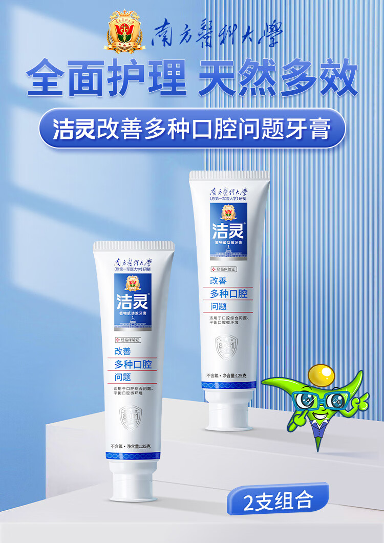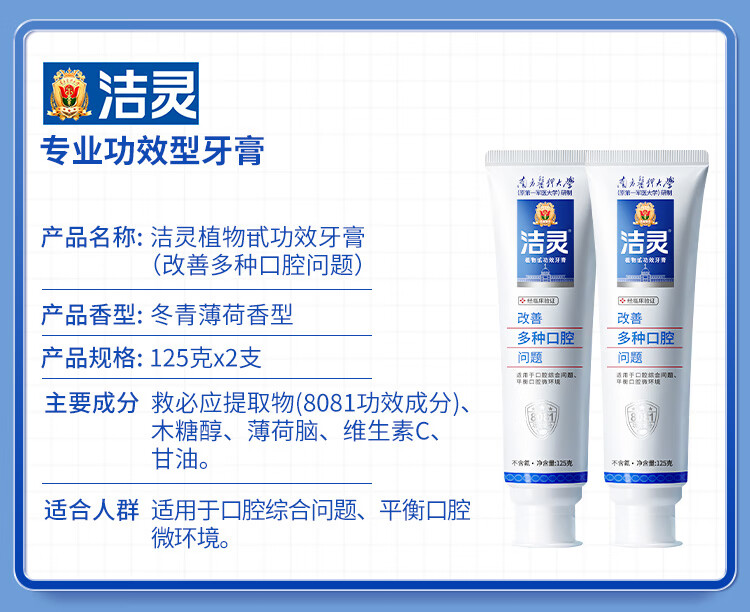 洁灵 丨功效牙膏(改善多种口腔问题) 多效护理牙龈去渍清新抗敏感 125g/支*2支