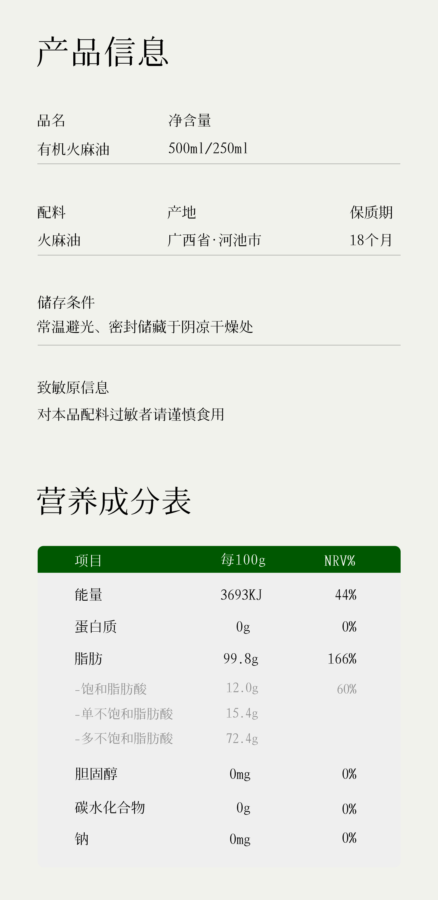 全食物日记 巴马有机火麻油500mL