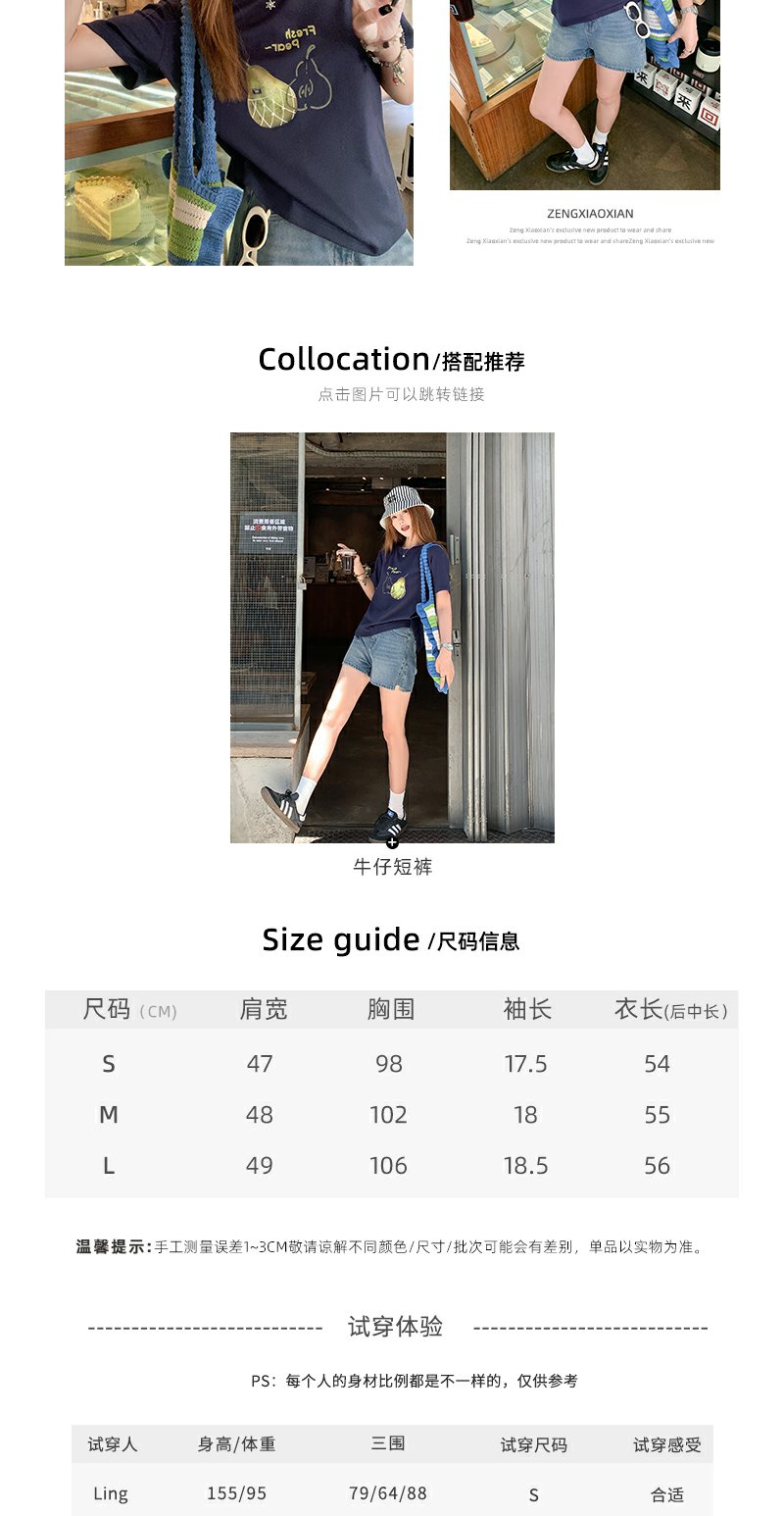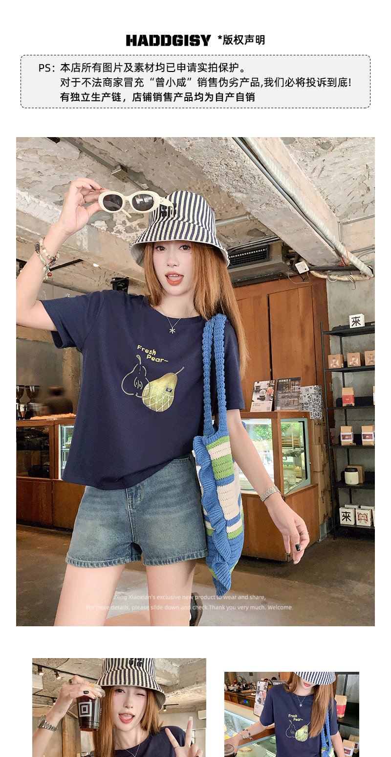 <曾小咸推荐>梨子印花短袖T恤夏宽松圆领上衣