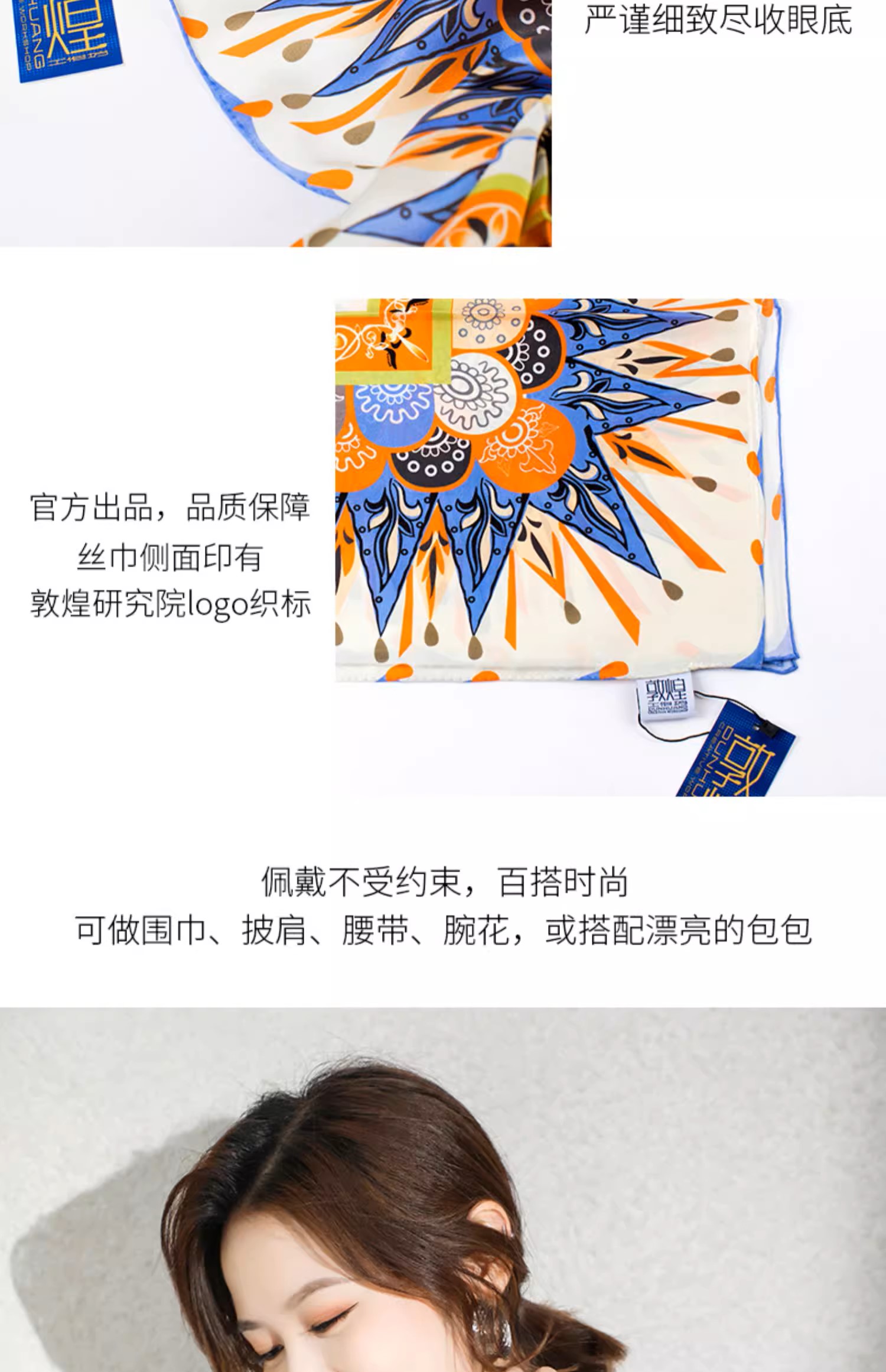 敦煌研究院 真丝小方巾丝巾女2024新款披肩外搭围巾发带丝巾夏季