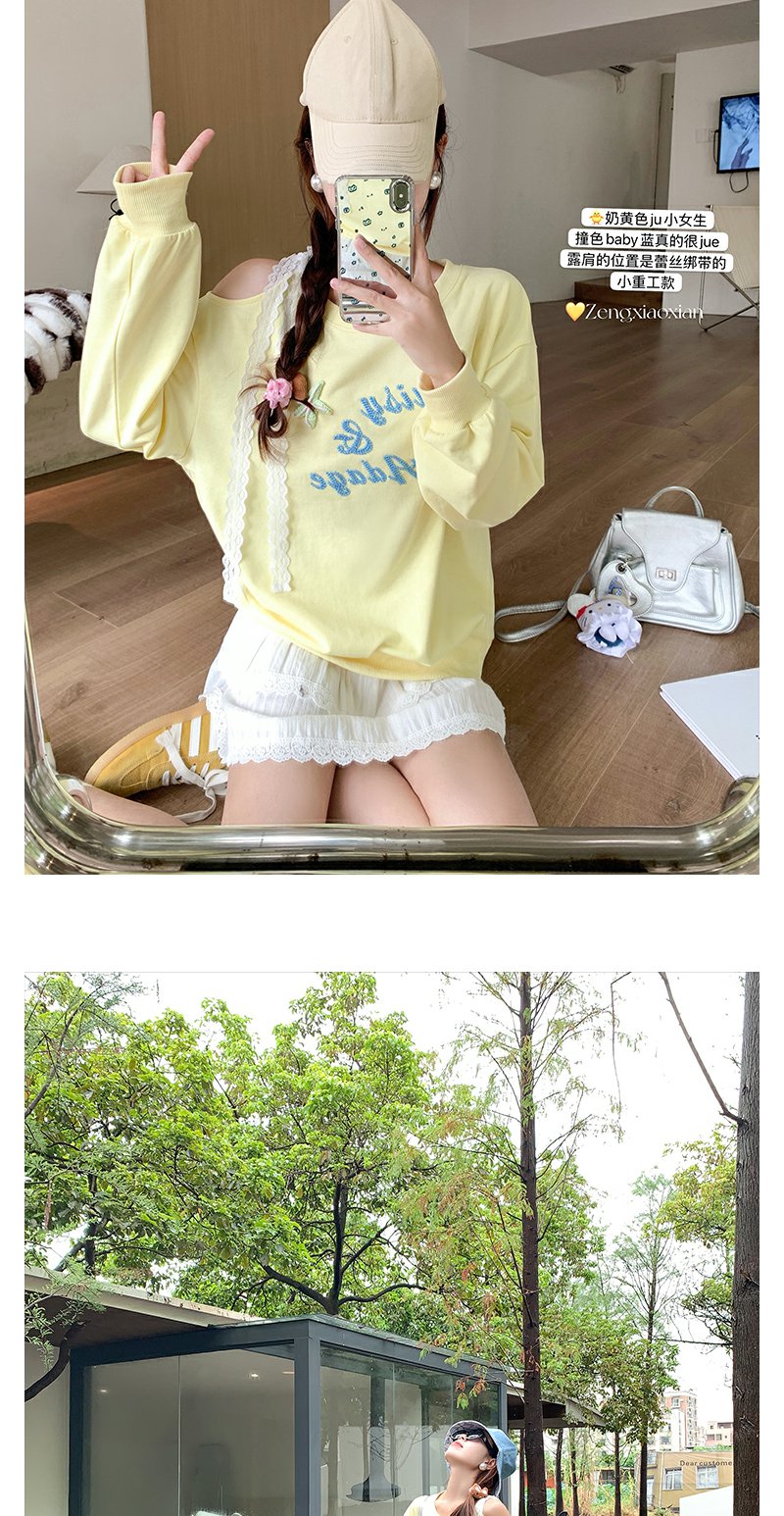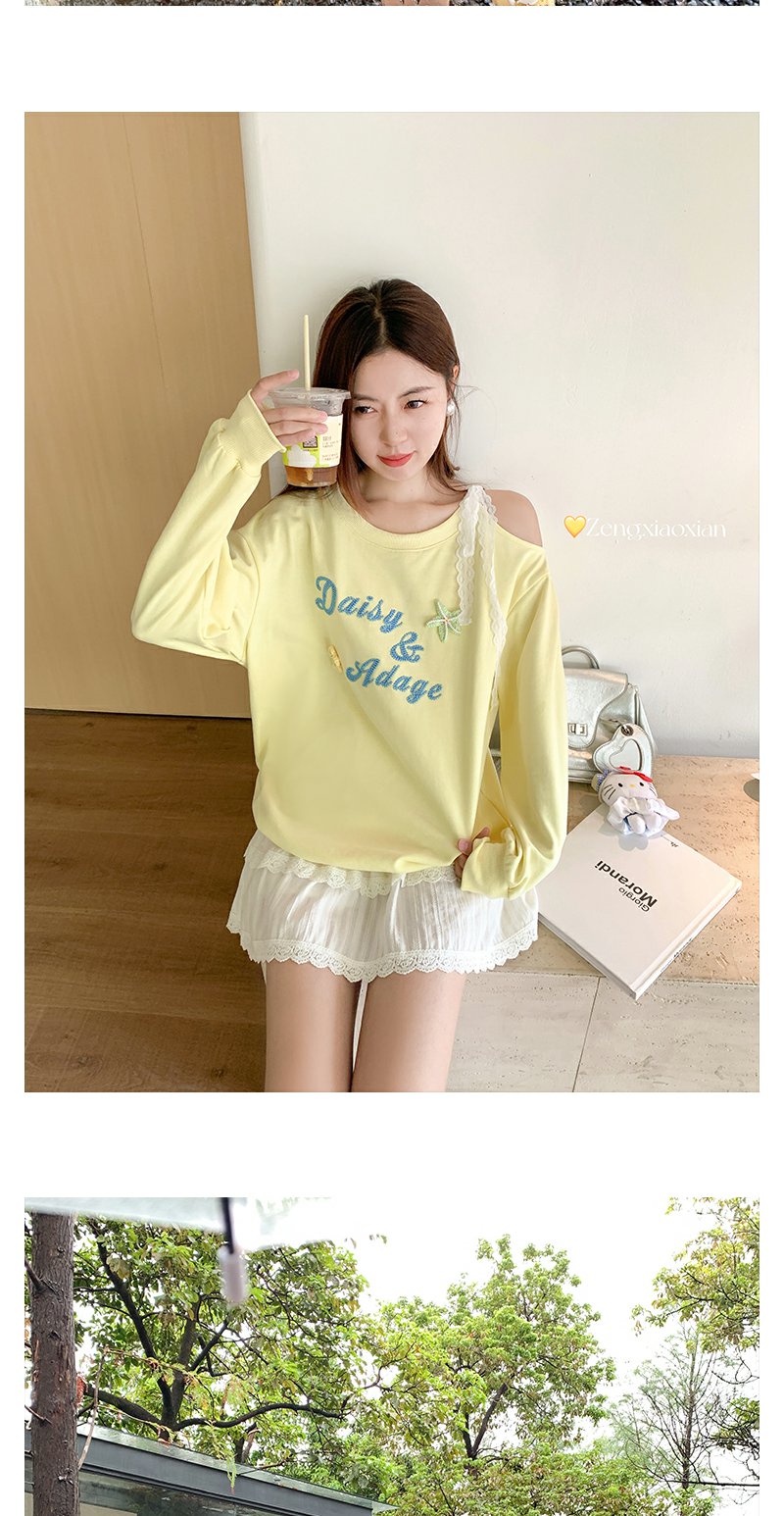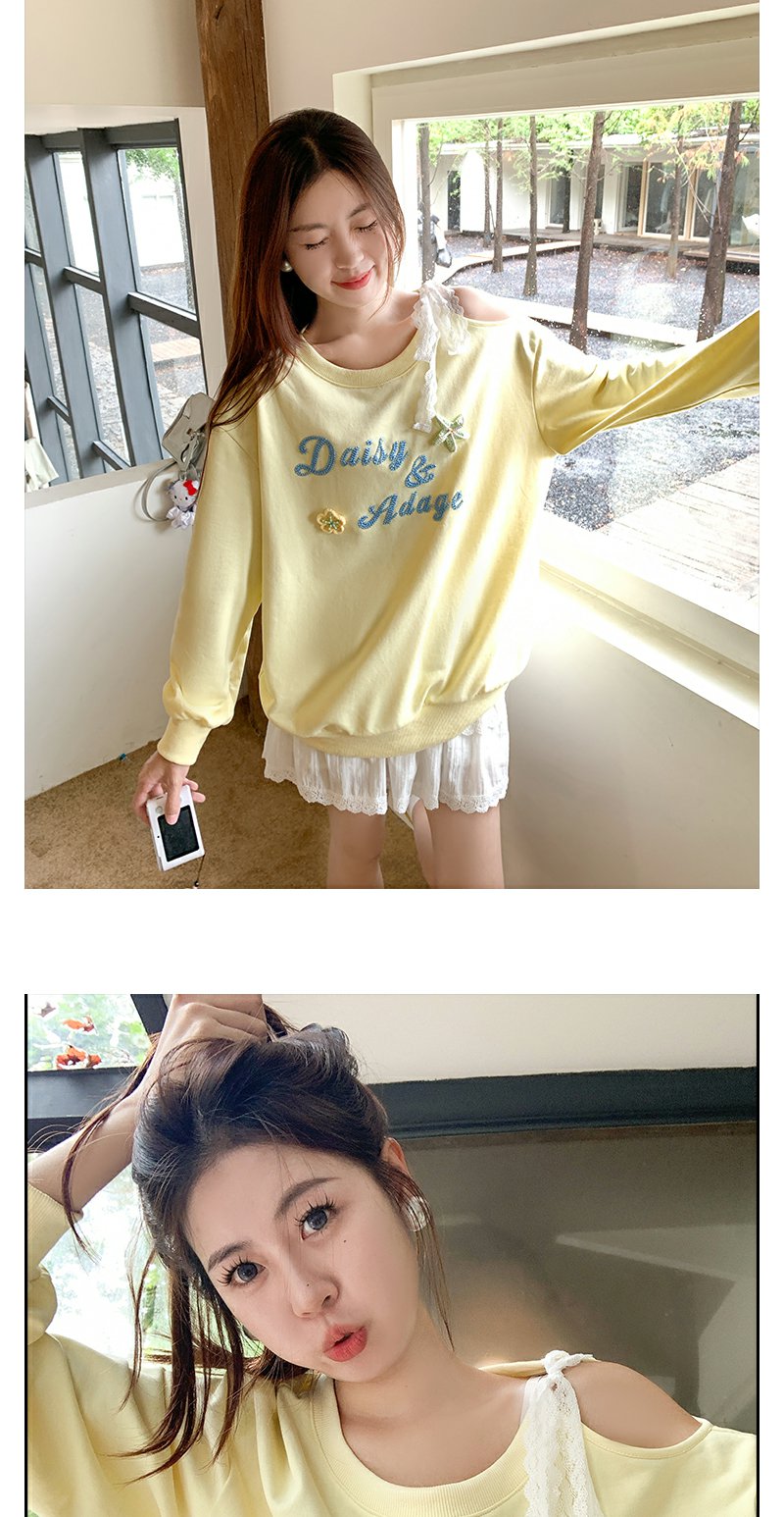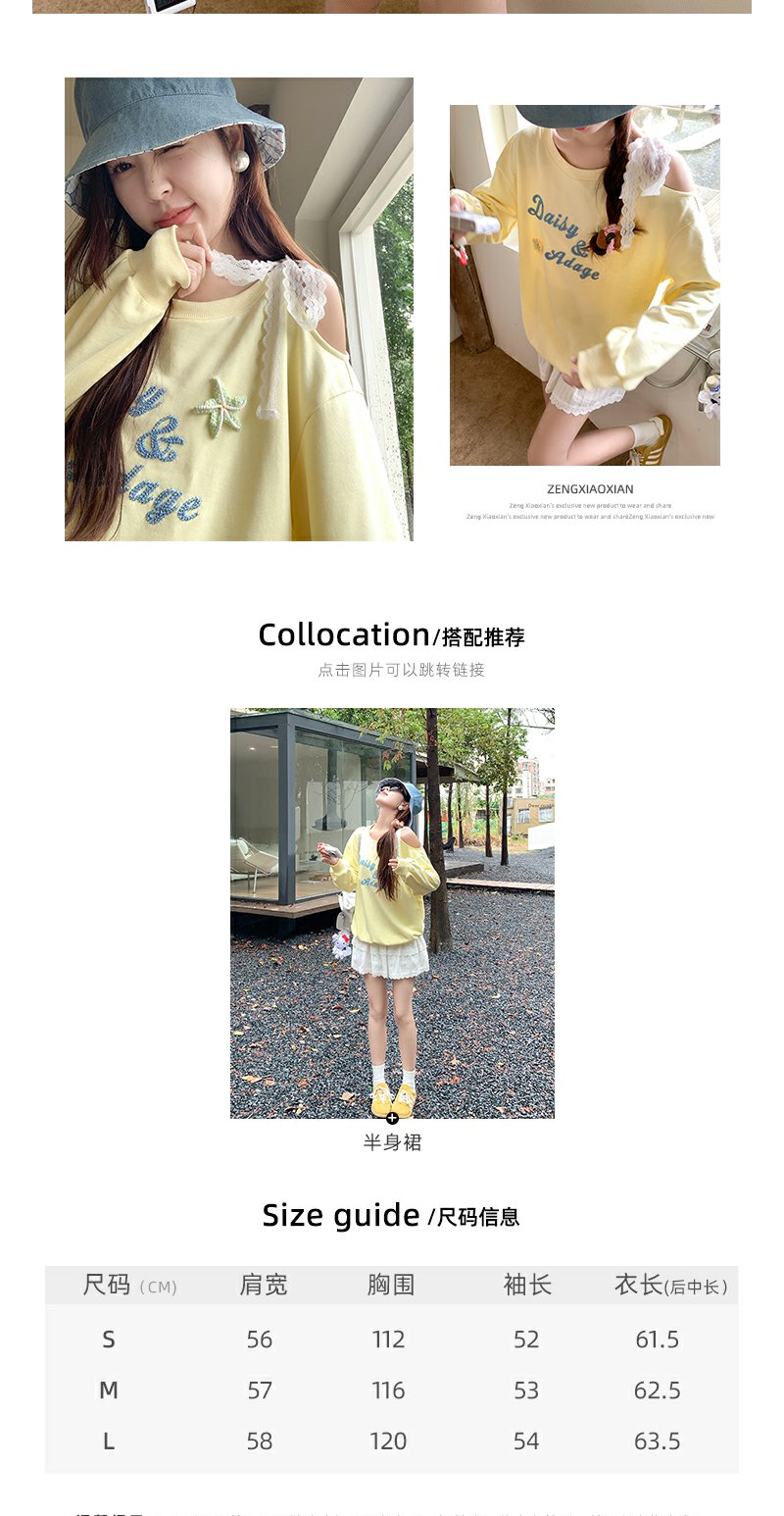 <曾小咸推荐>韩系斜领立体装饰长袖卫衣T恤