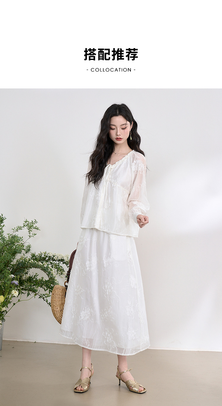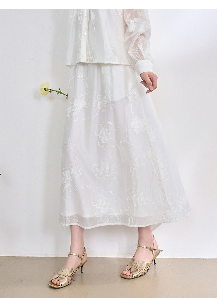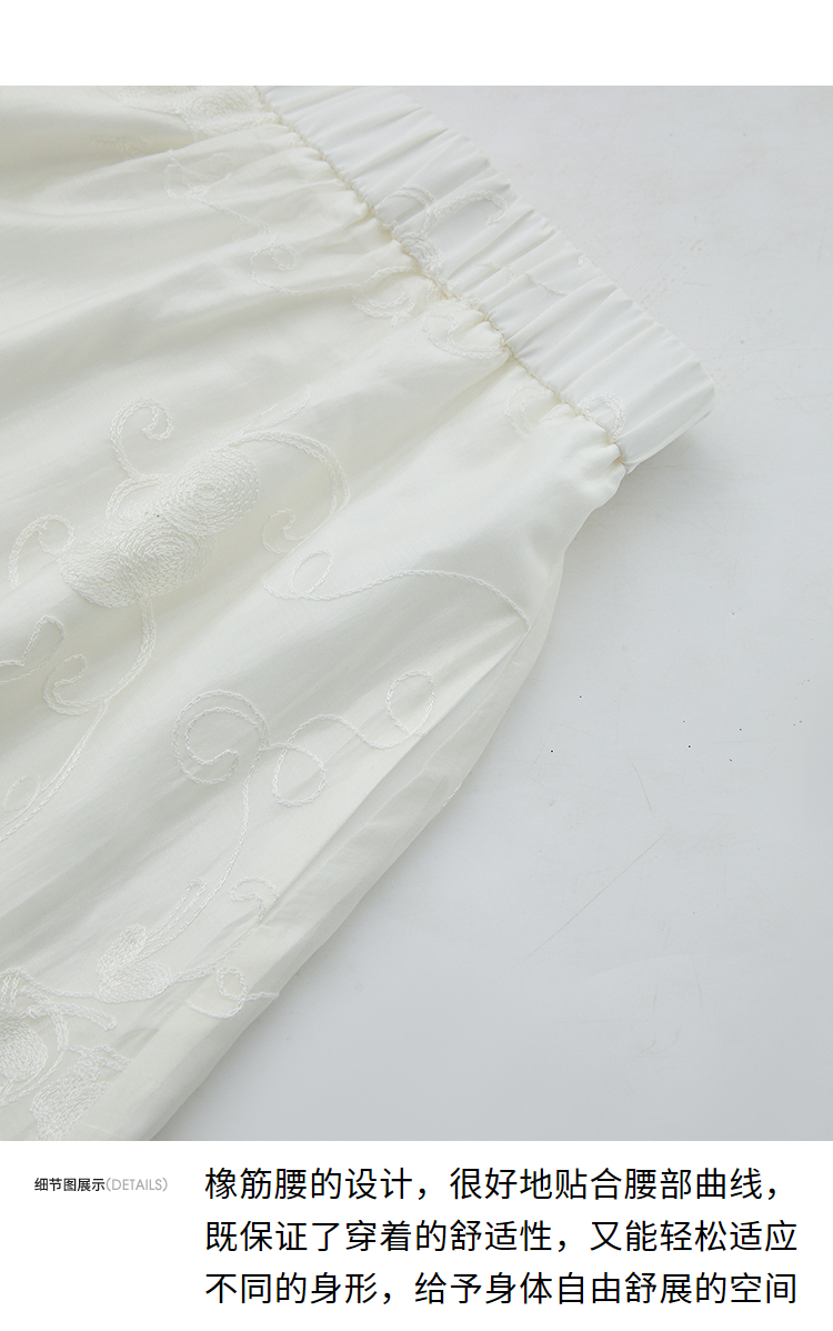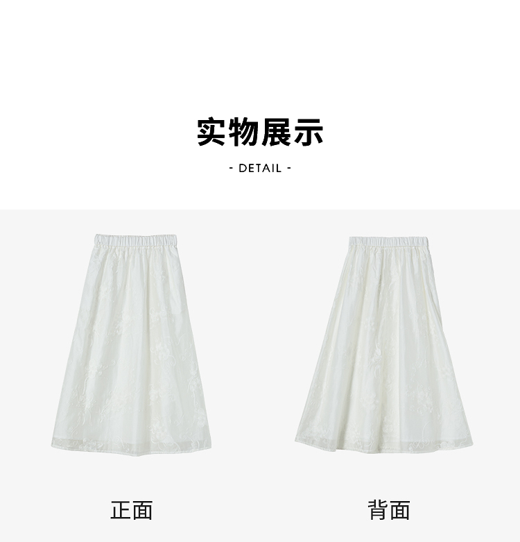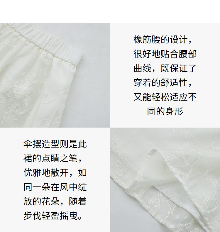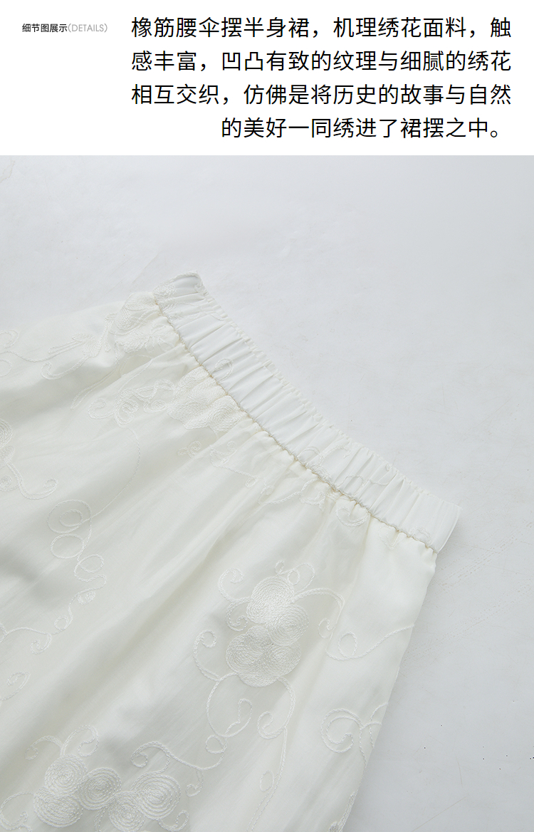 复古文艺感天丝重工肌理感绣花半身裙女松紧腰伞裙V0550226