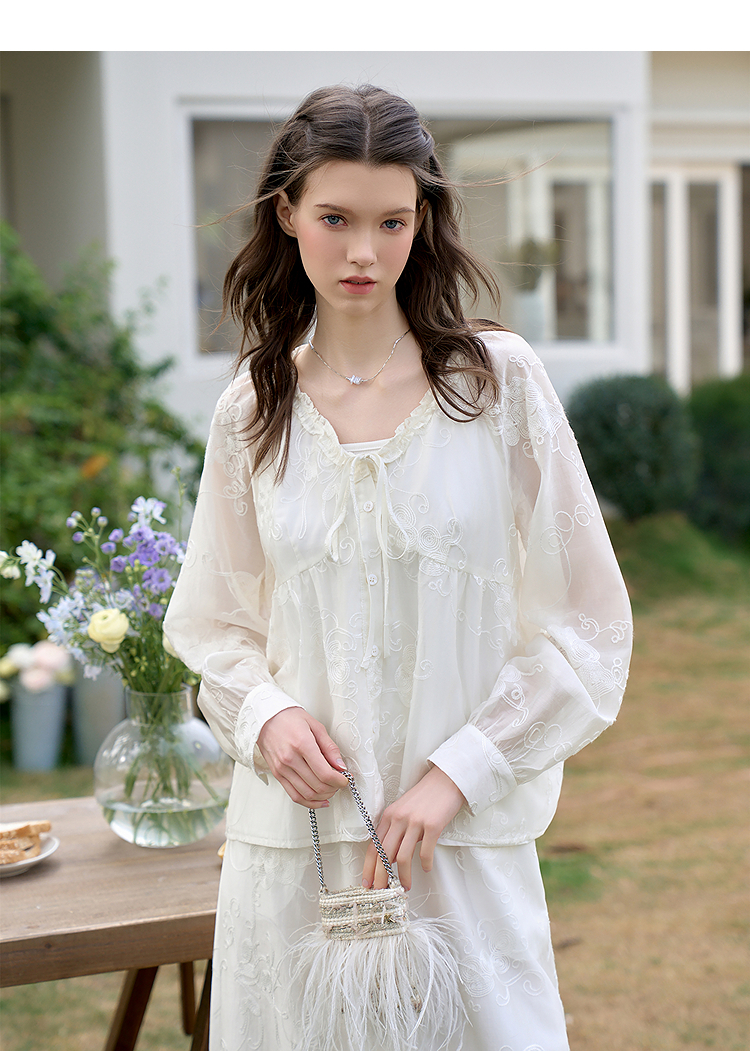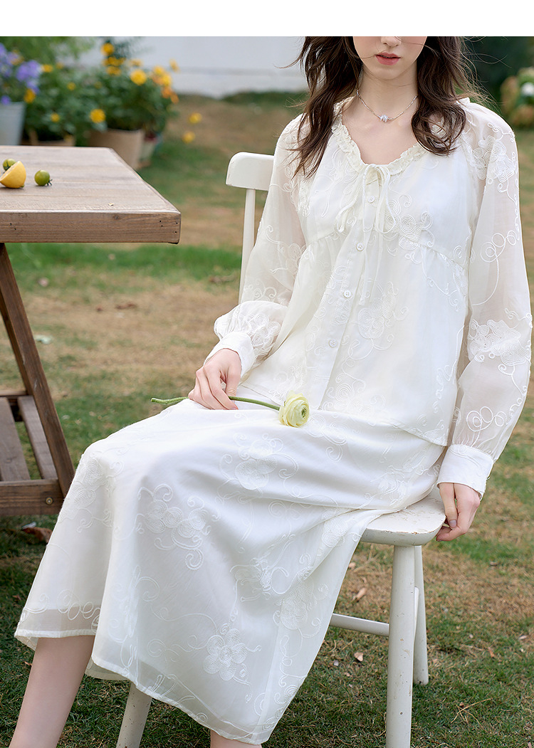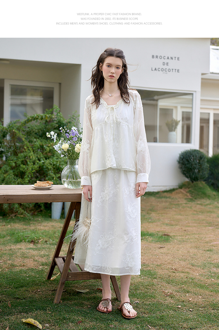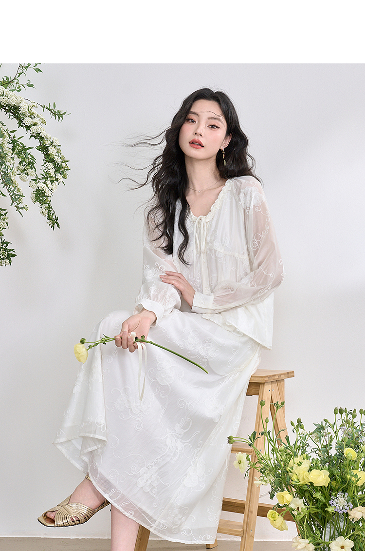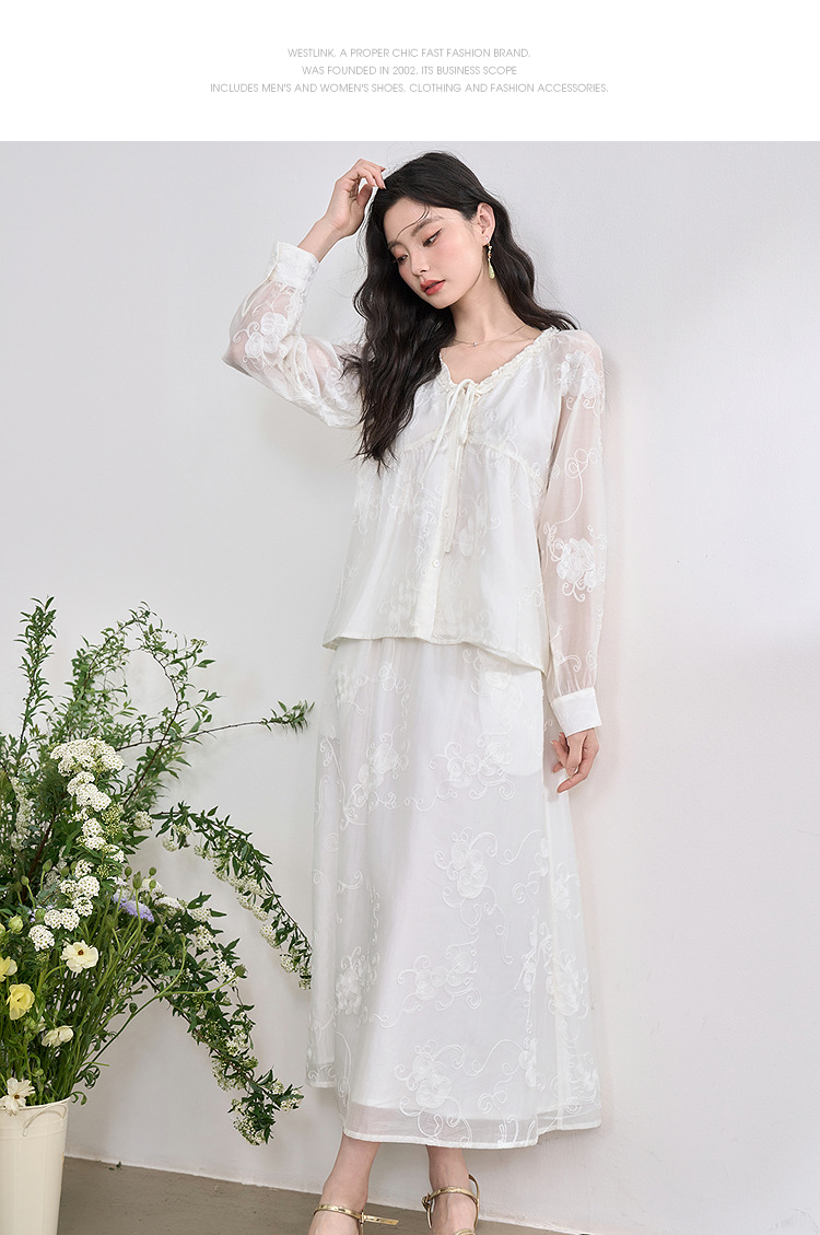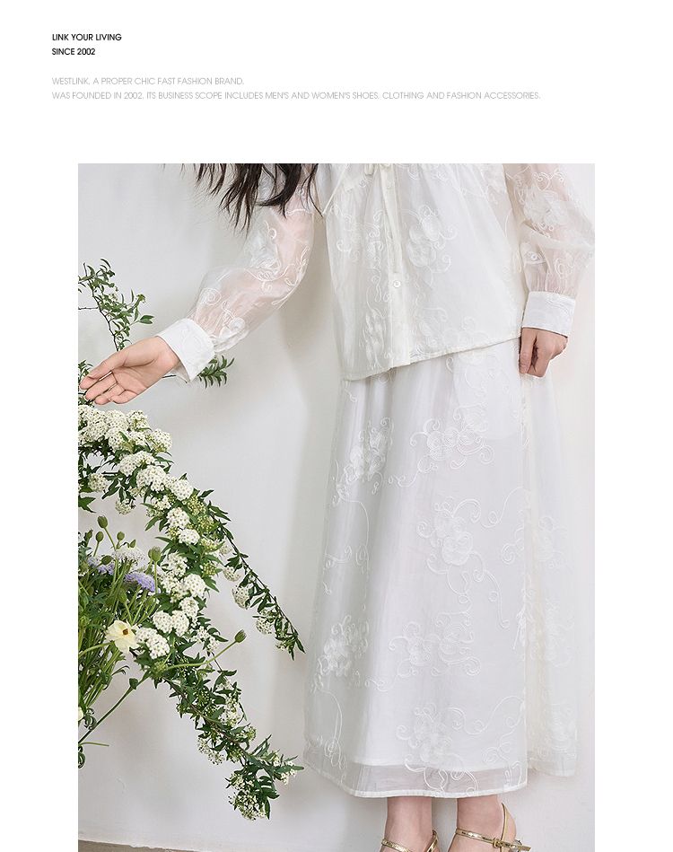 复古文艺感天丝重工肌理感绣花半身裙女松紧腰伞裙V0550226