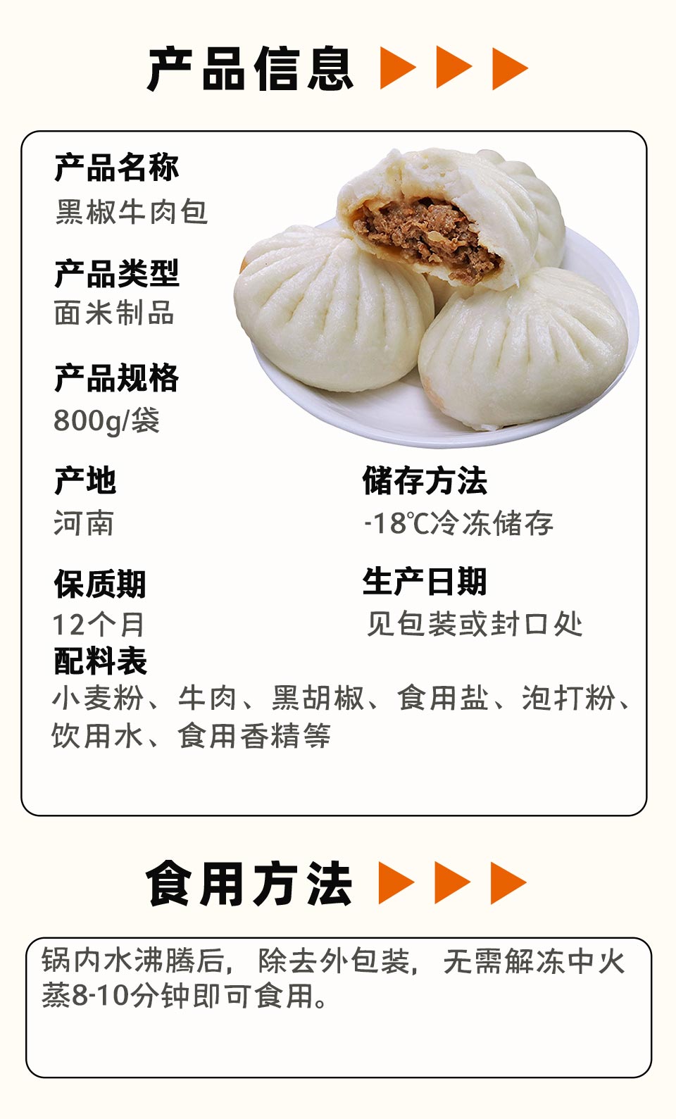 笑脸黑椒牛肉包800g/袋(10个)10袋/件 5件/套
