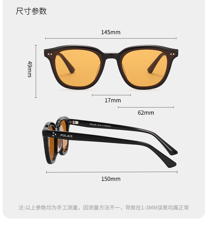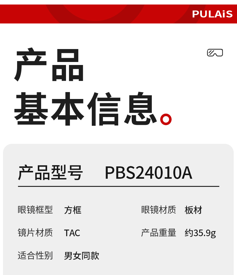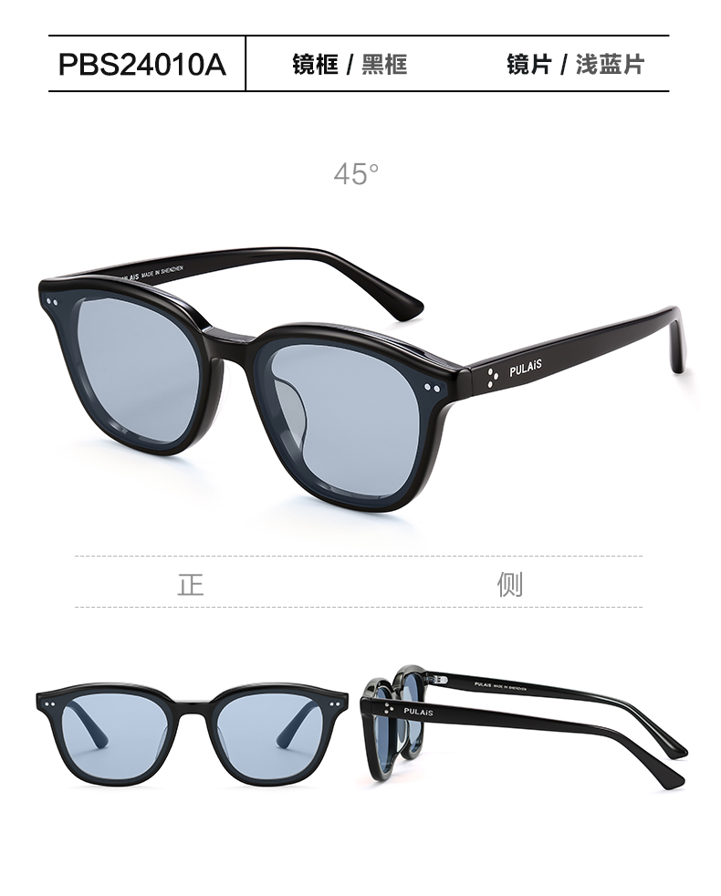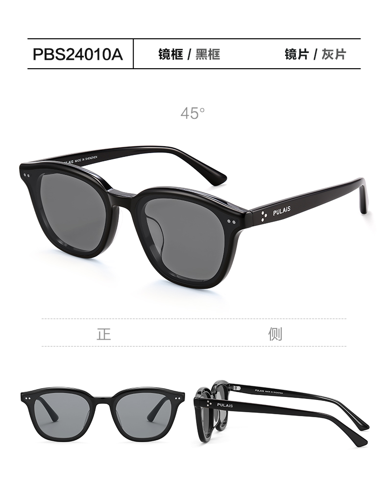 普莱斯新款太阳镜PBS24010A 飒爽修颜方框 优质板材镜框 TAC偏光镜片 修颜宽边镜腿 男女同款 五色可选
