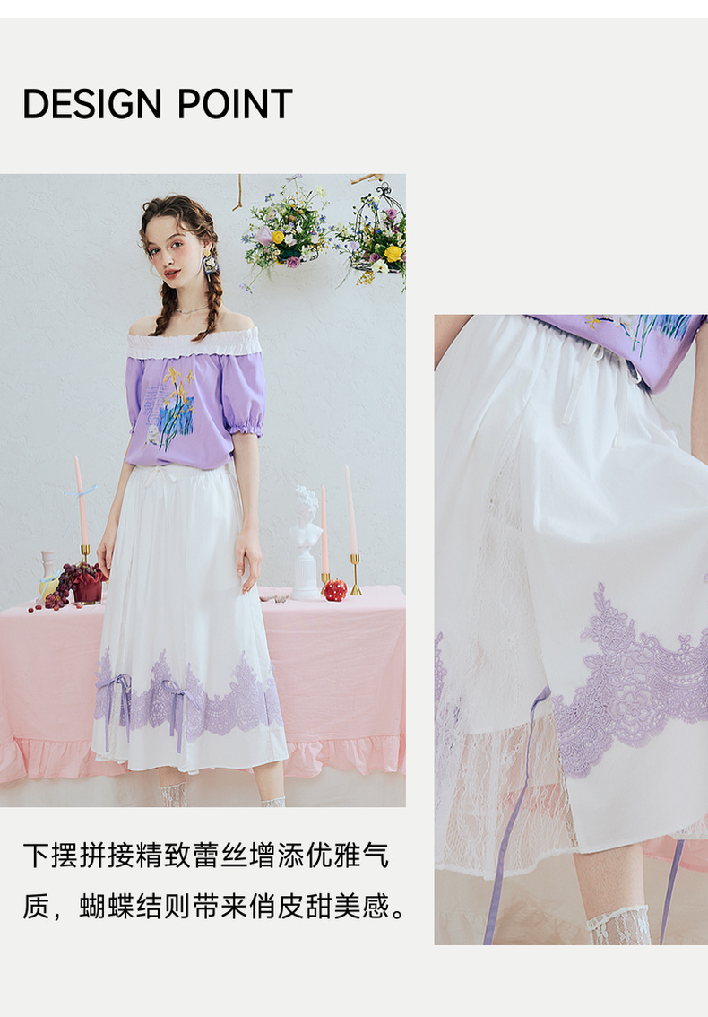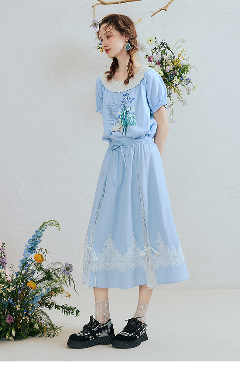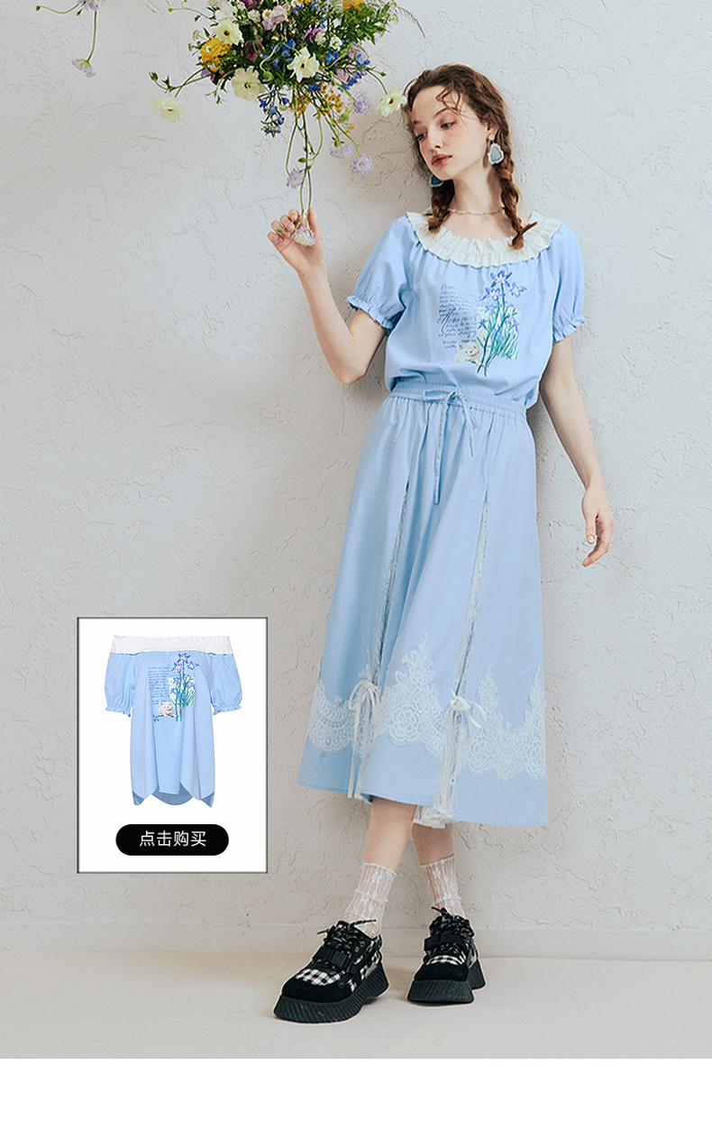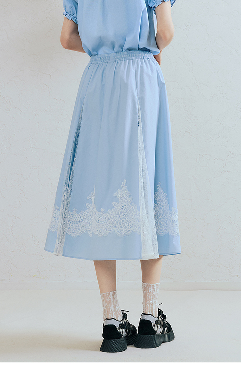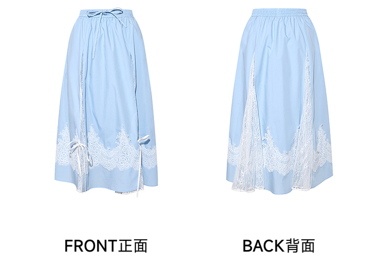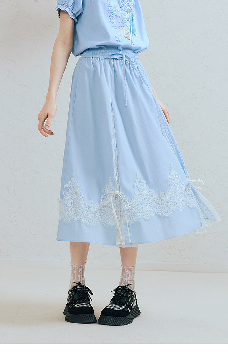两三事 月光仙子 2025夏季新款甜美蕾丝拼接绑带a字半身裙长裙