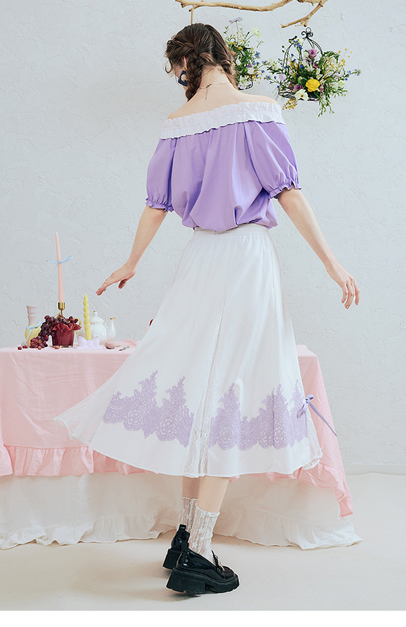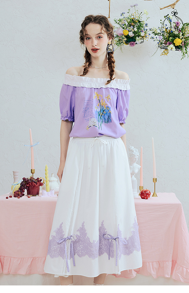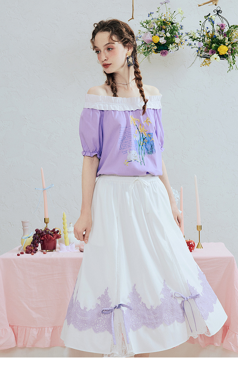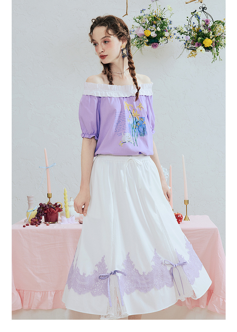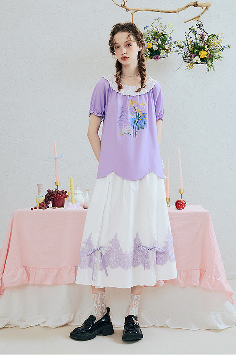 两三事 月光仙子 2025夏季新款甜美蕾丝拼接绑带a字半身裙长裙