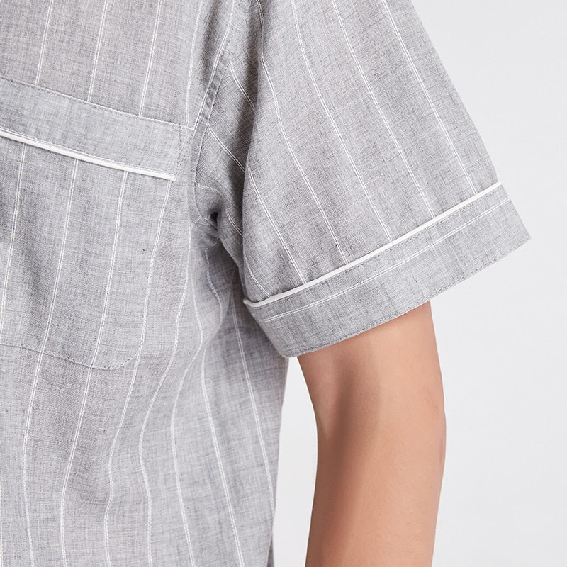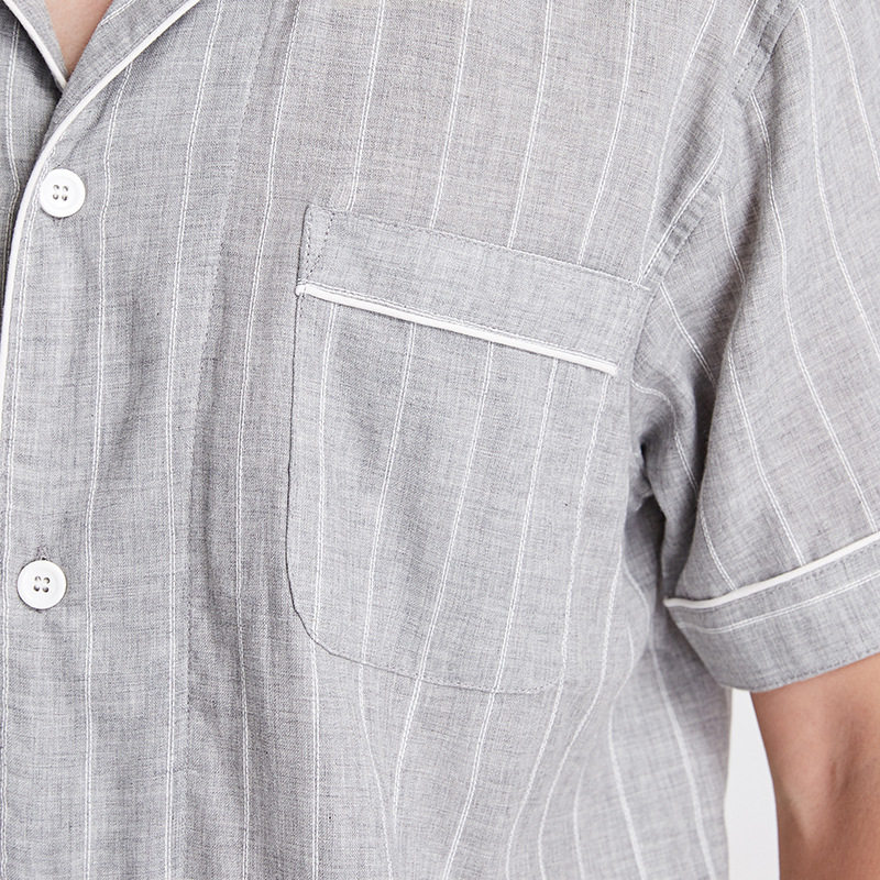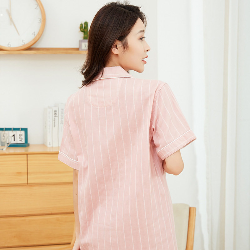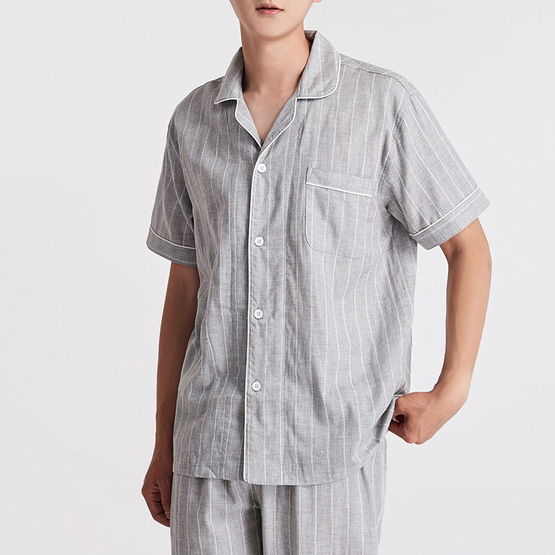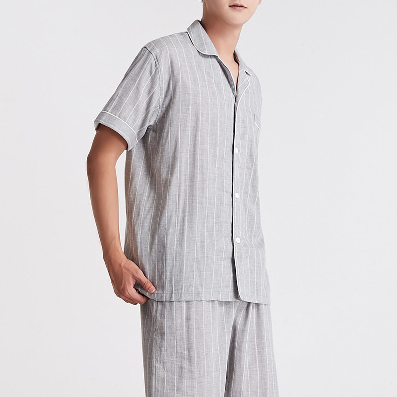 日系无印双层纱短袖家居服良品短袖全棉男女情侣竖条纹短袖长裤