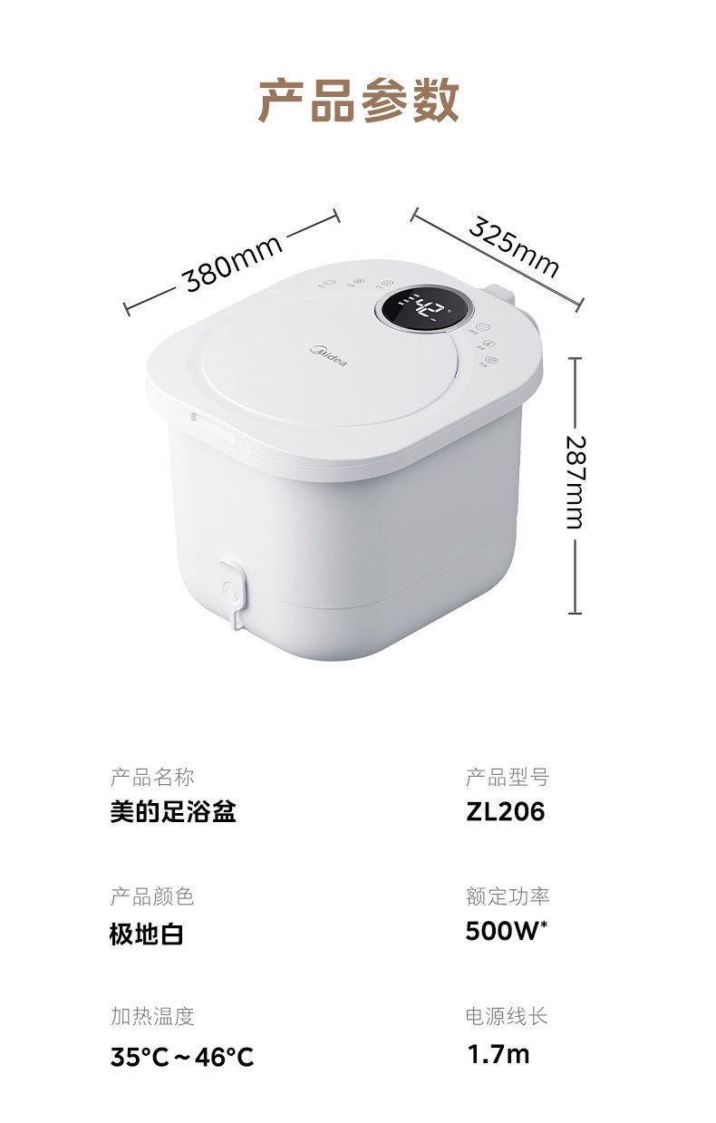 美的泡脚桶智能加热恒温家用全自动足浴桶养生按摩ZL205/ZL206