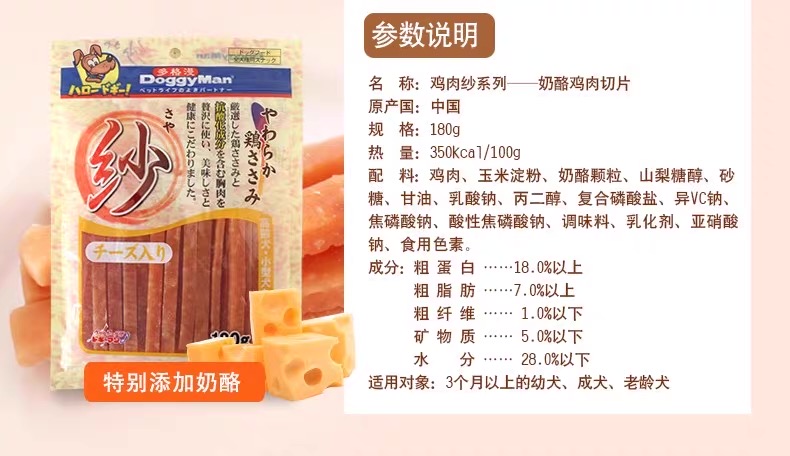 多格漫醇柔纱系列奶酪鸡肉切条180g