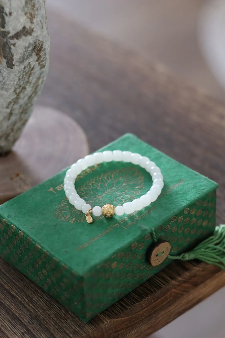 当白玉配上白裙、浅色系衣衫就会尽显清雅;搭中式汉服、新年唐装是绝配。