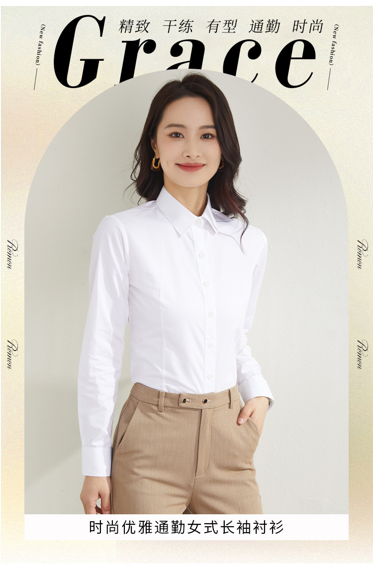 罗蒙衬衫女长袖纯色简约商务通勤女士工装上班衬衣