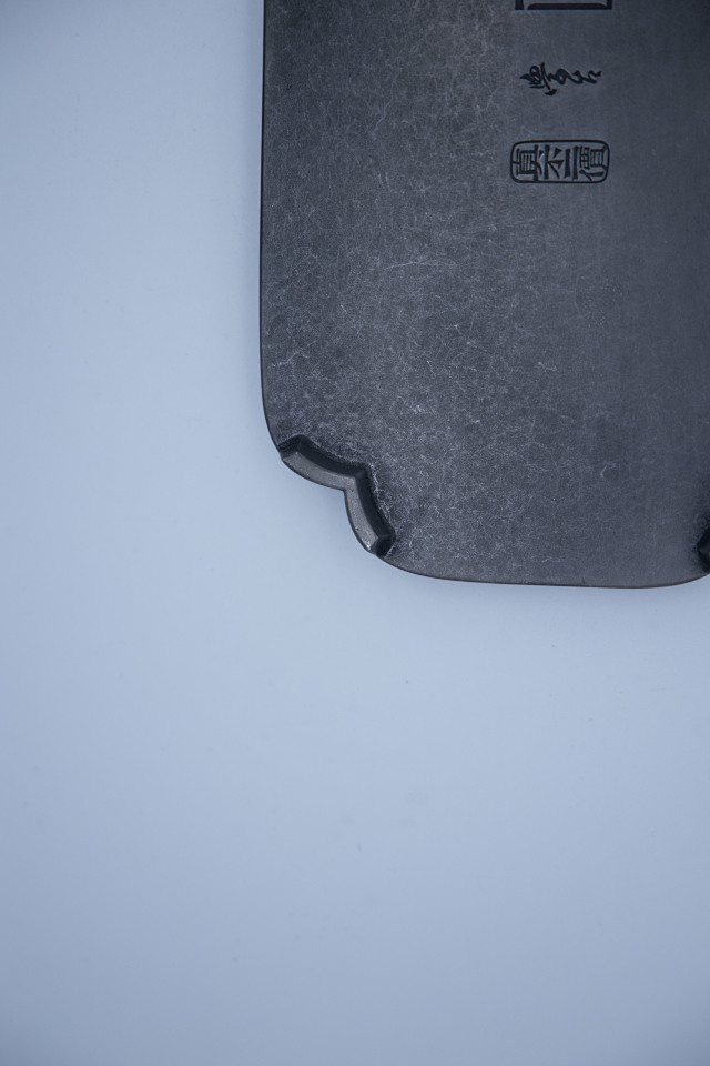 置入席间不争不抢内敛低调,中庸含蓄极具内涵,与其它器物协调百搭。使用方便,小巧压手。器身颜色中灰调偏深沉。底上錾印有「学古」品牌、不二公司的标识及「真不二价」铭文,物勒工名,以考其诚。