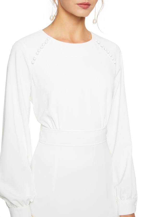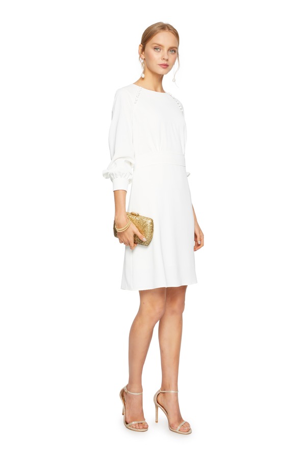 OCTAVIA 圆扣装饰白色连衣裙 6127