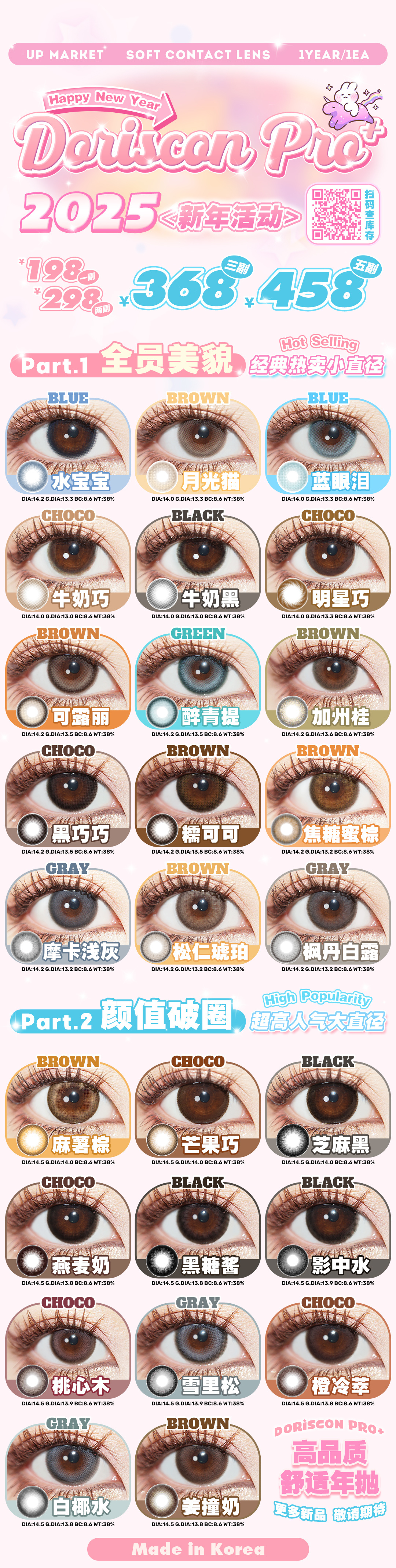 (高品质高舒适度推荐)(Doriscon pro+年抛)198/副 298/2副 368/3副 458/5副 (0-1000度 无525/575)