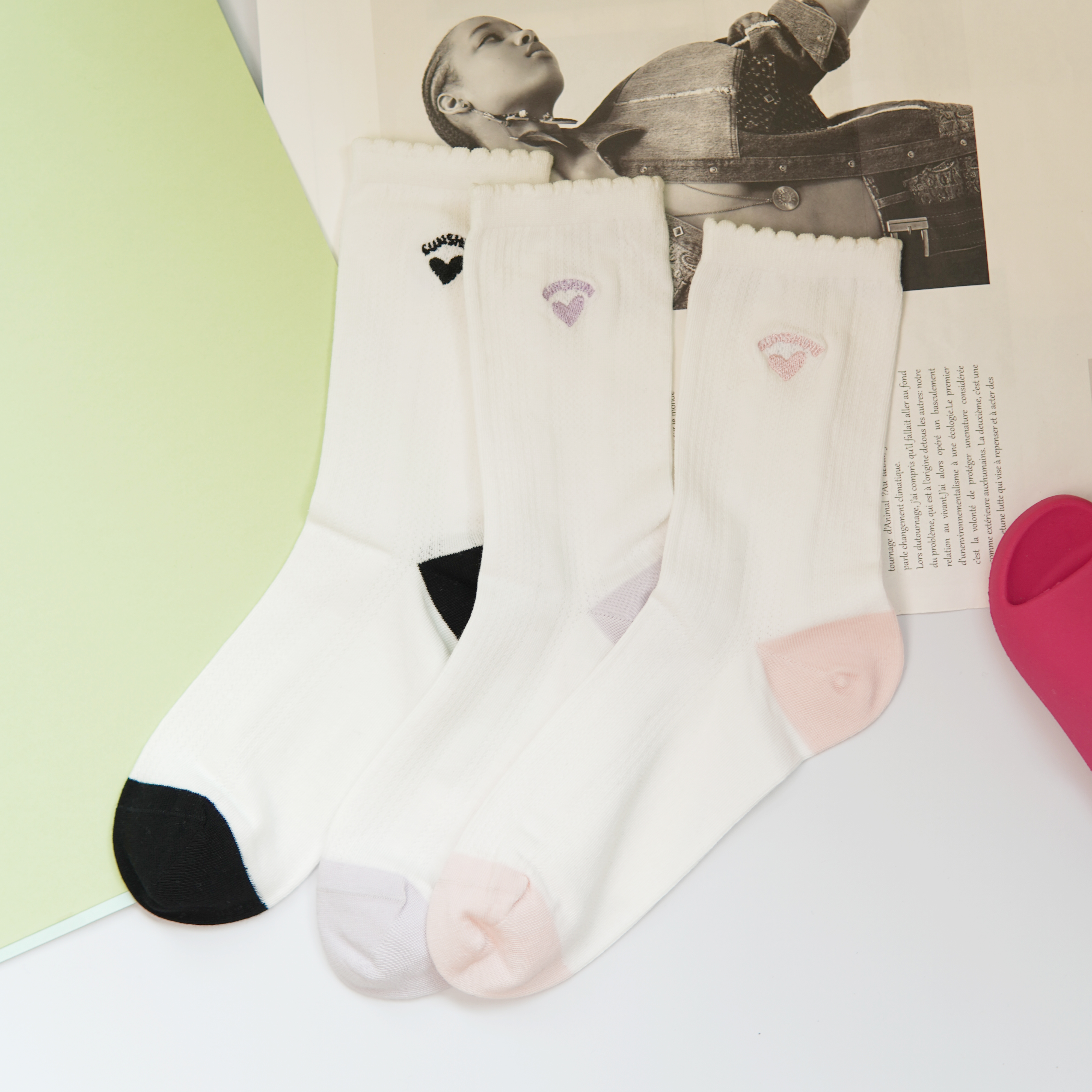【59元3双】时尚刺绣中筒袜春夏网面简约棉袜女士薄袜百搭袜子【2612505】