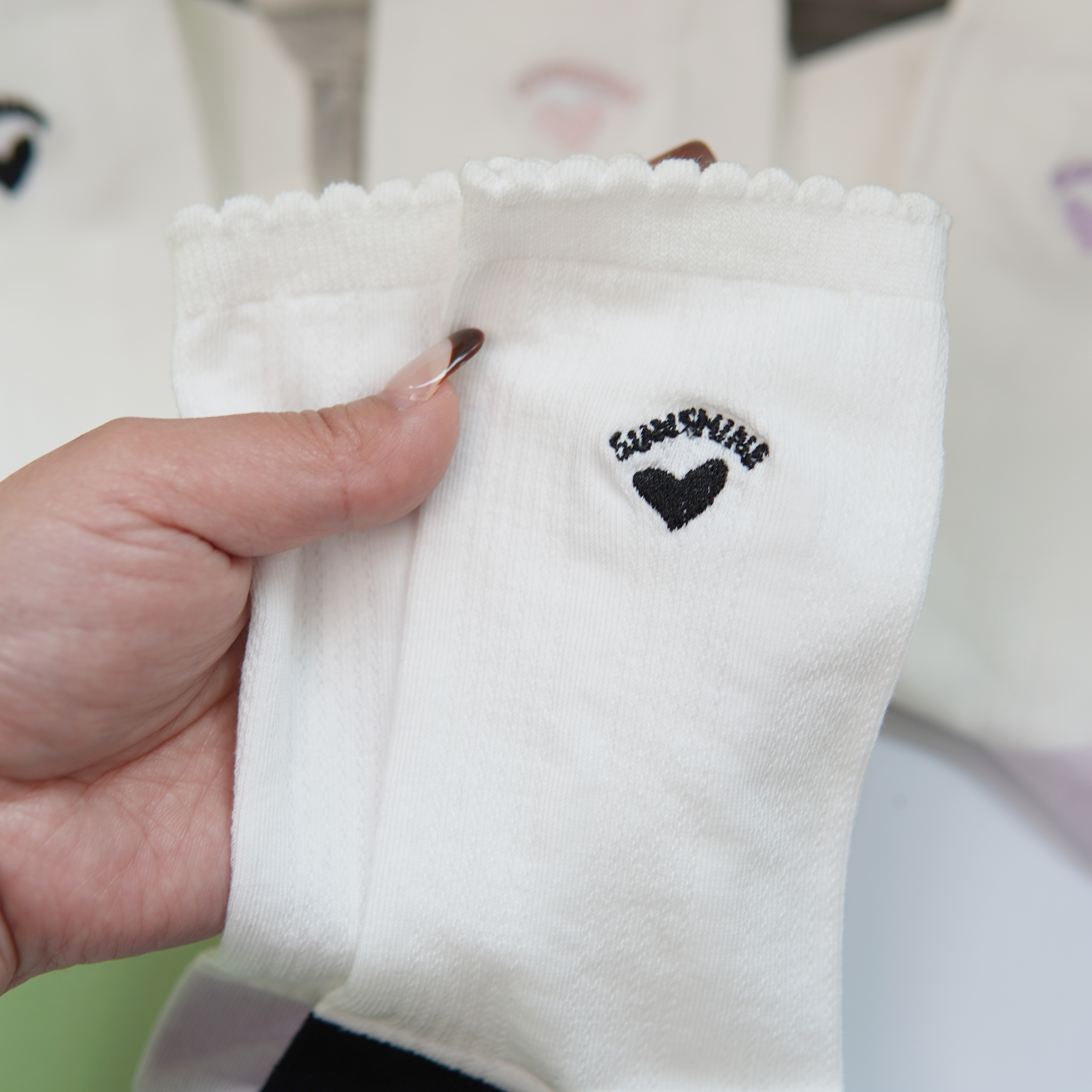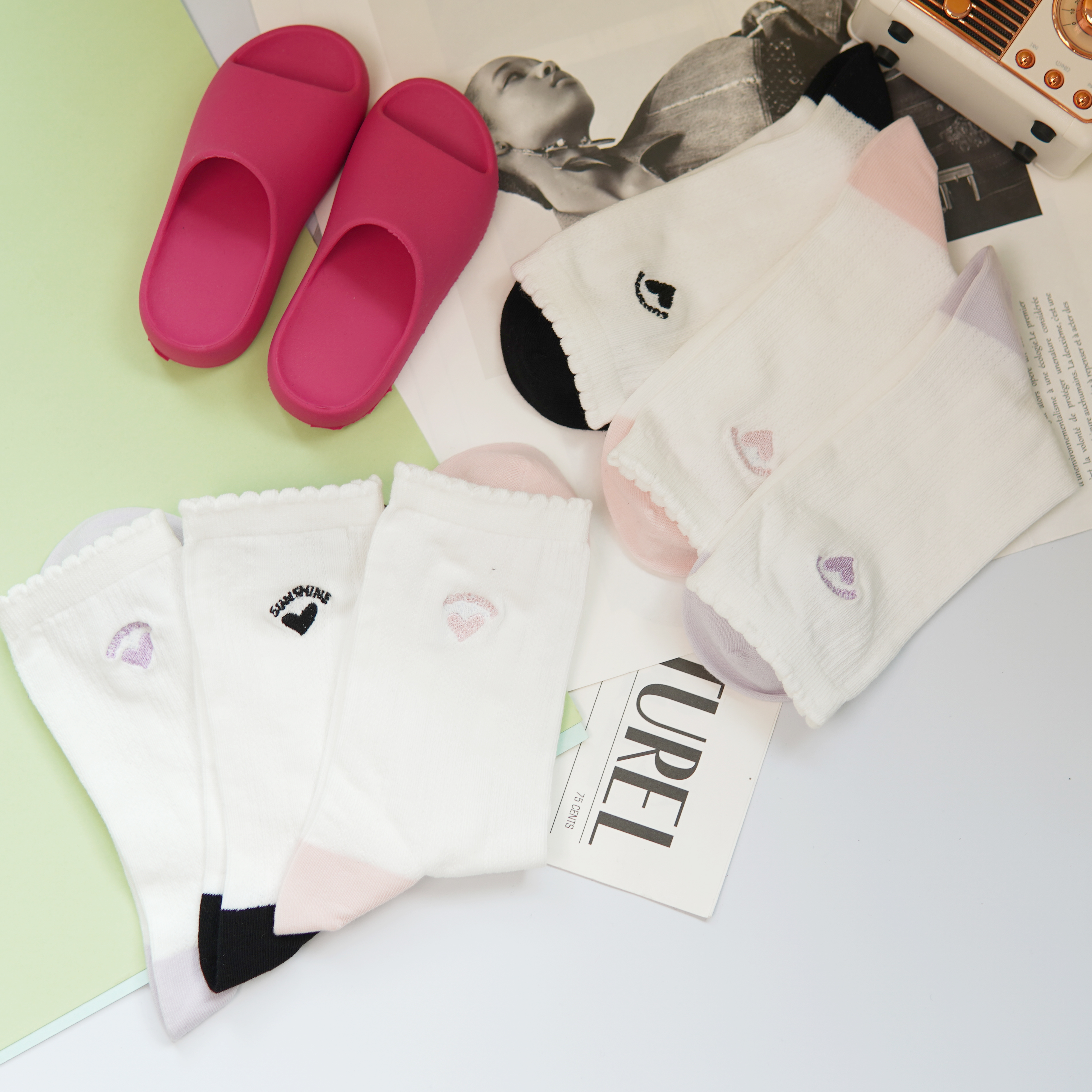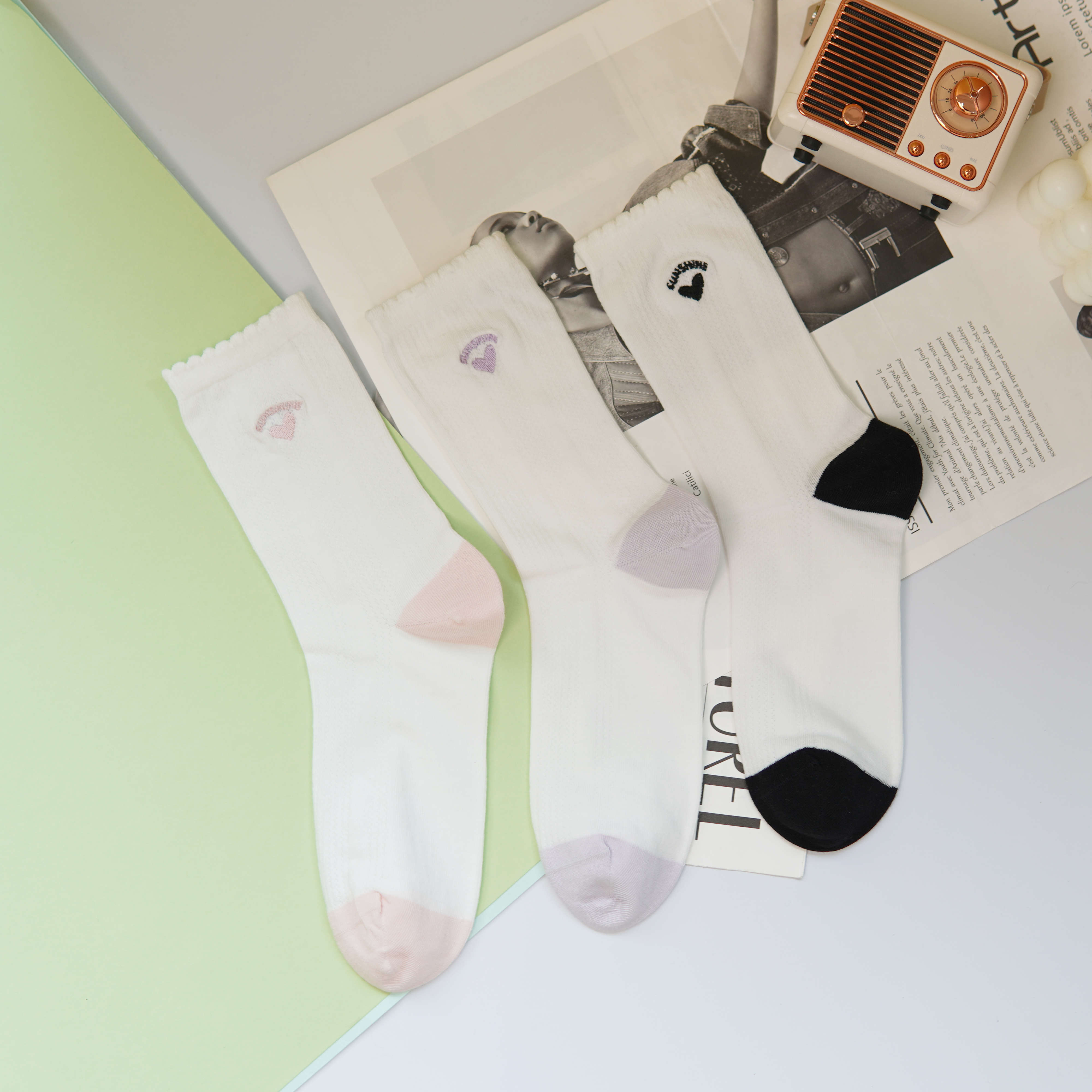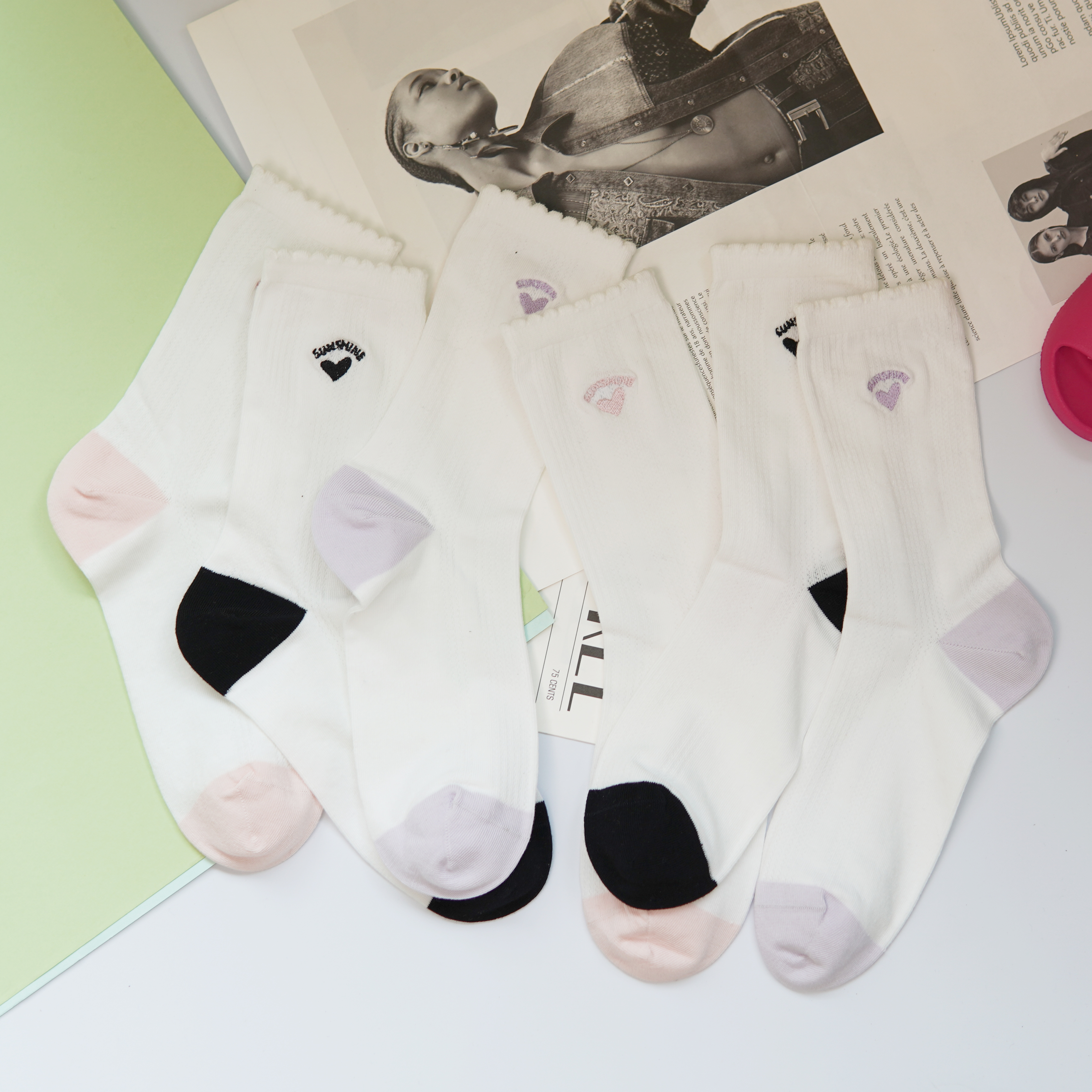 刺绣中筒小白袜无骨精梳棉袜【2412207/8/9】