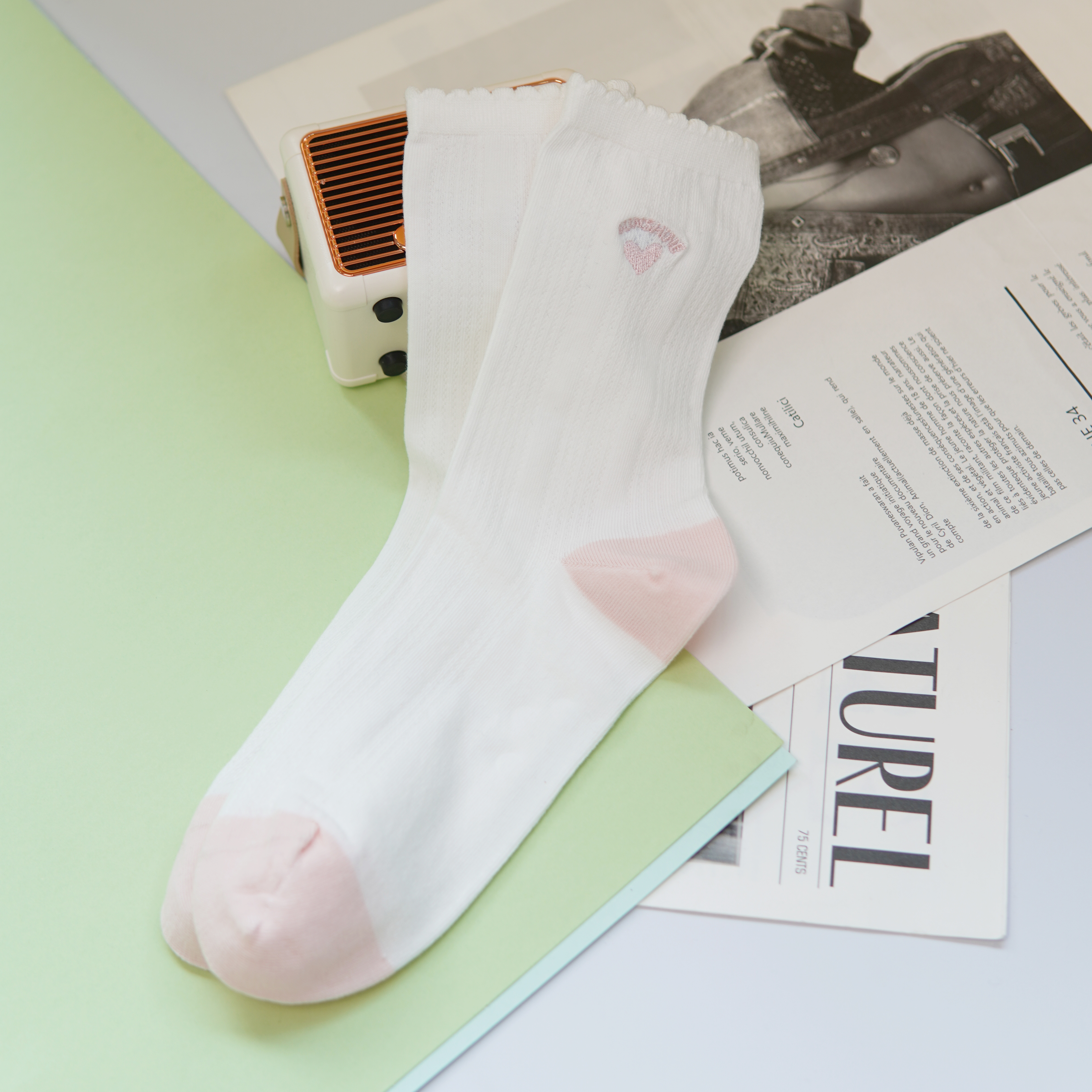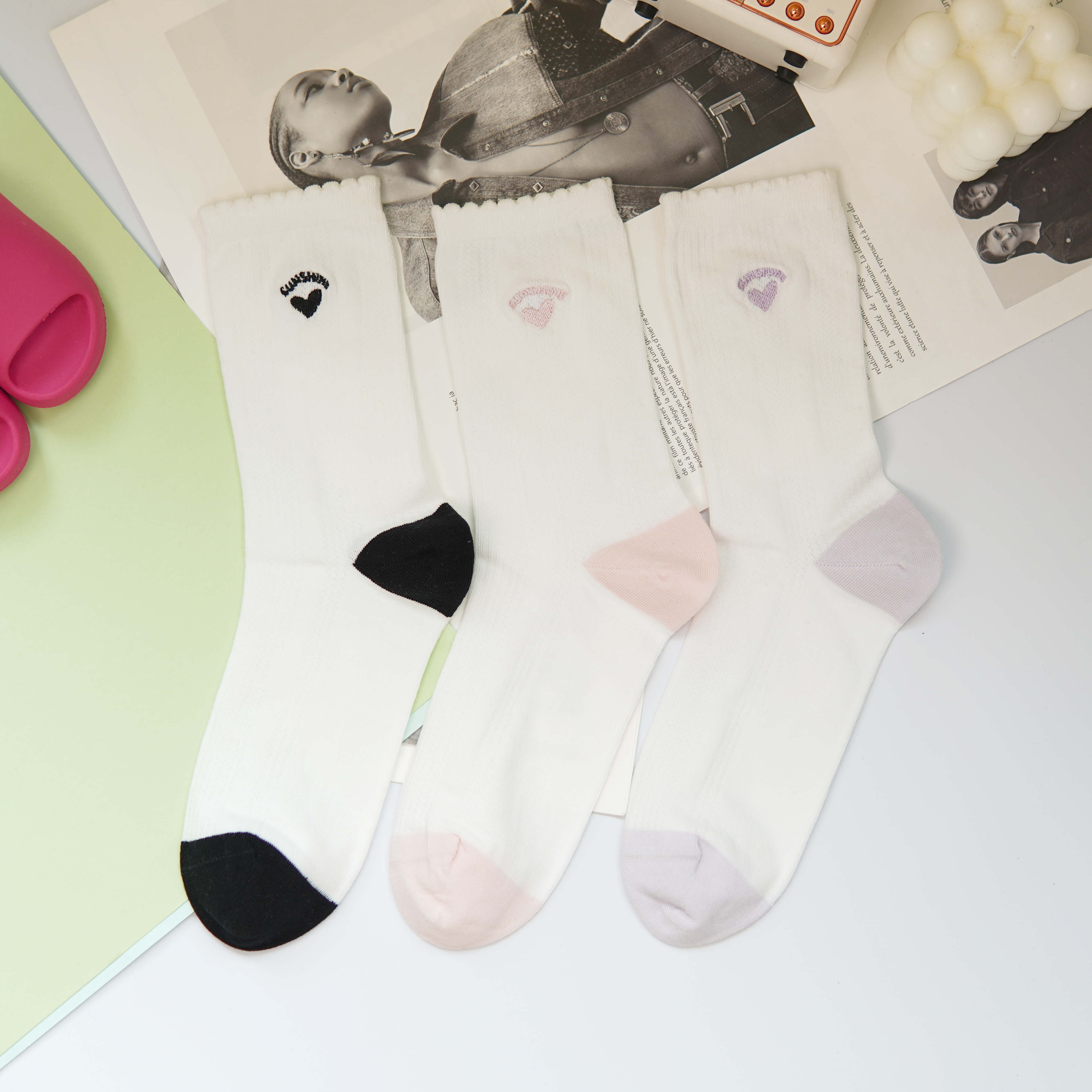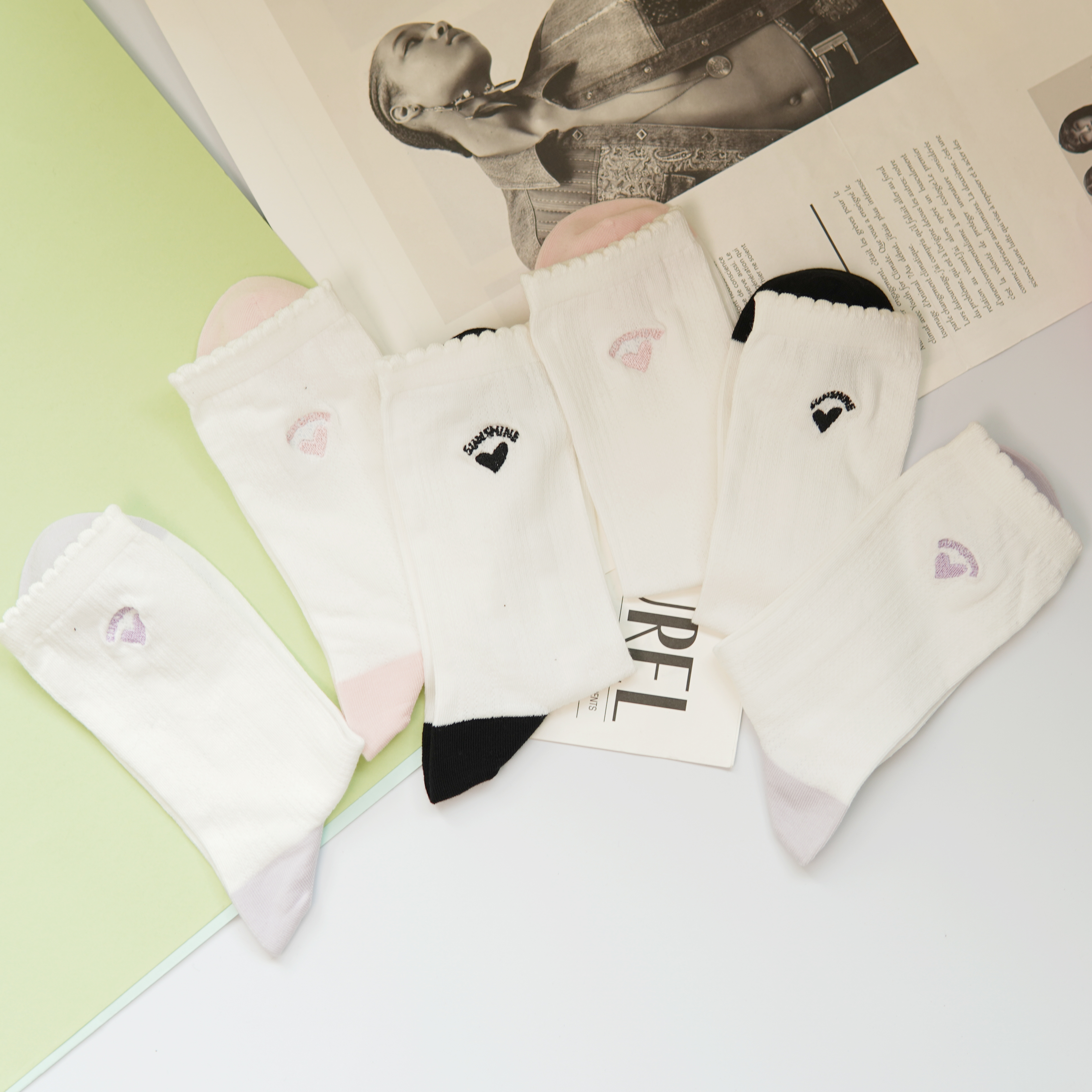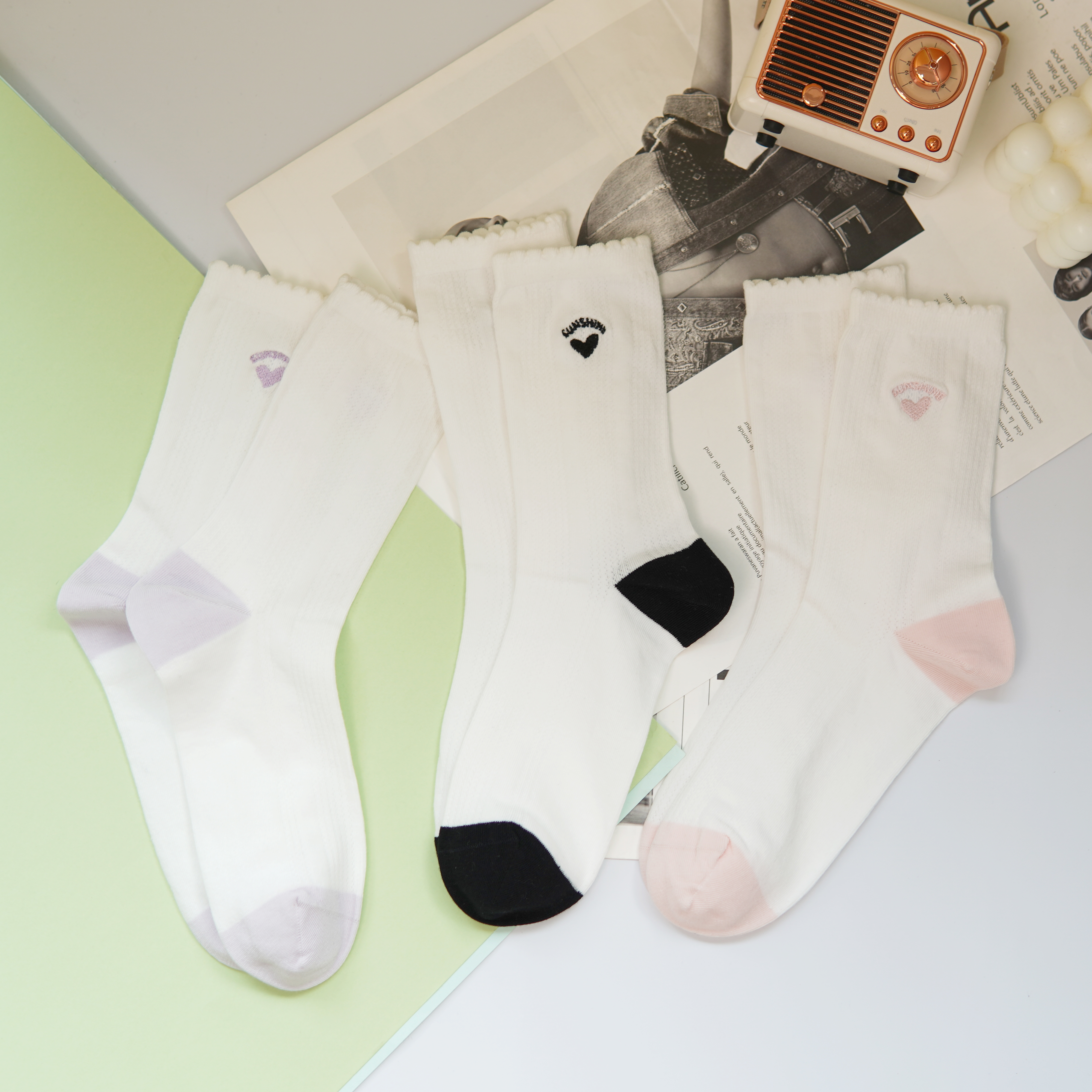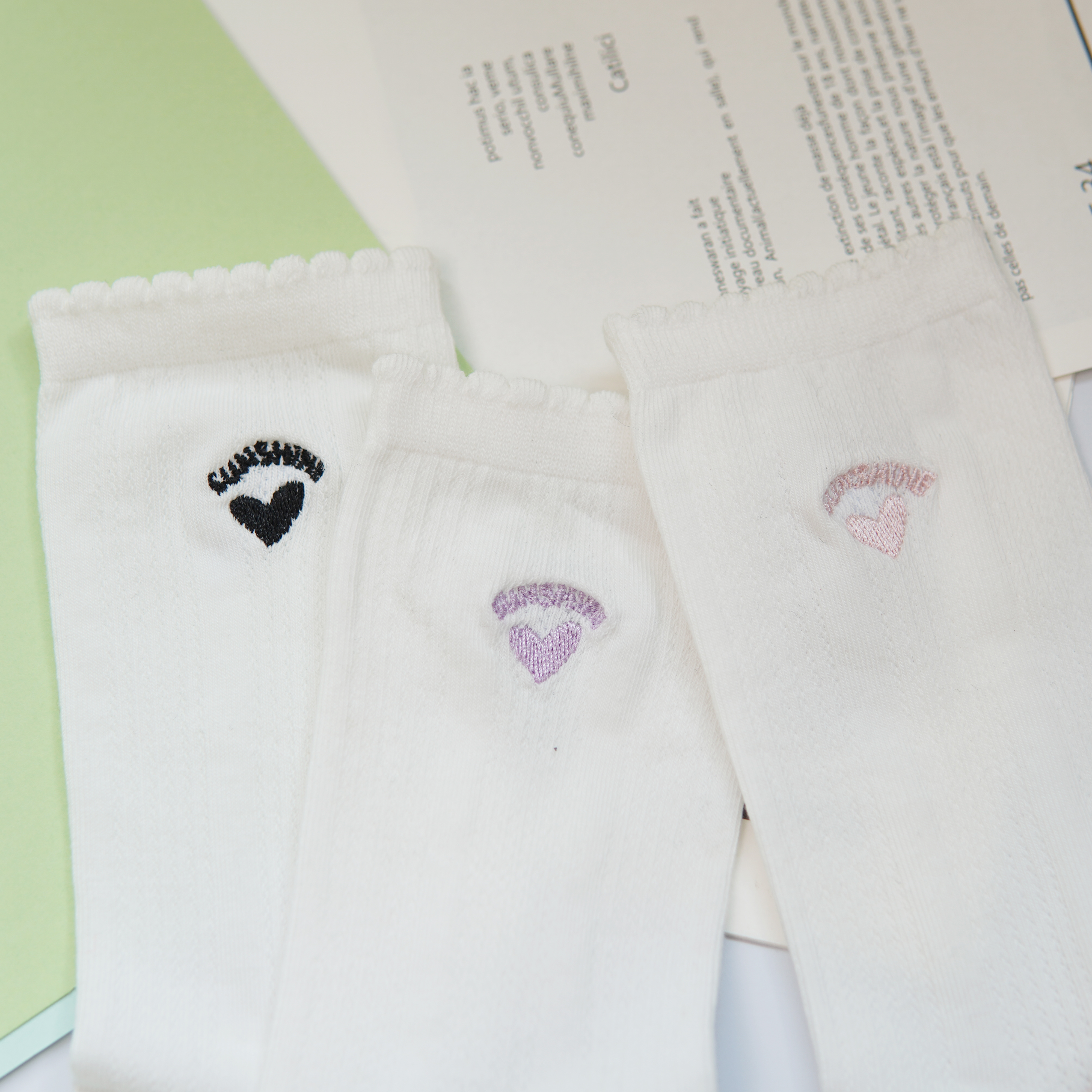 刺绣中筒小白袜无骨精梳棉袜【2412207/8/9】