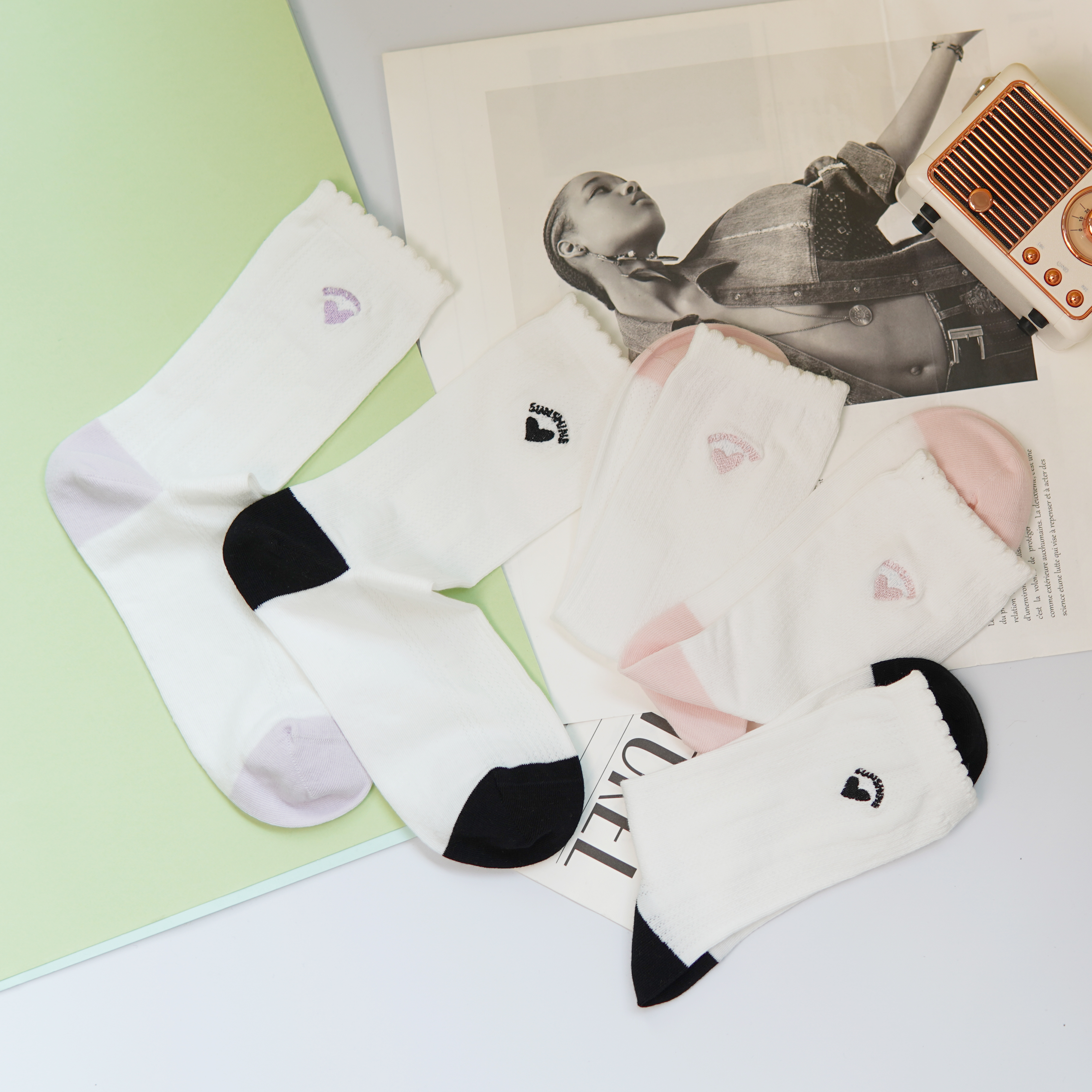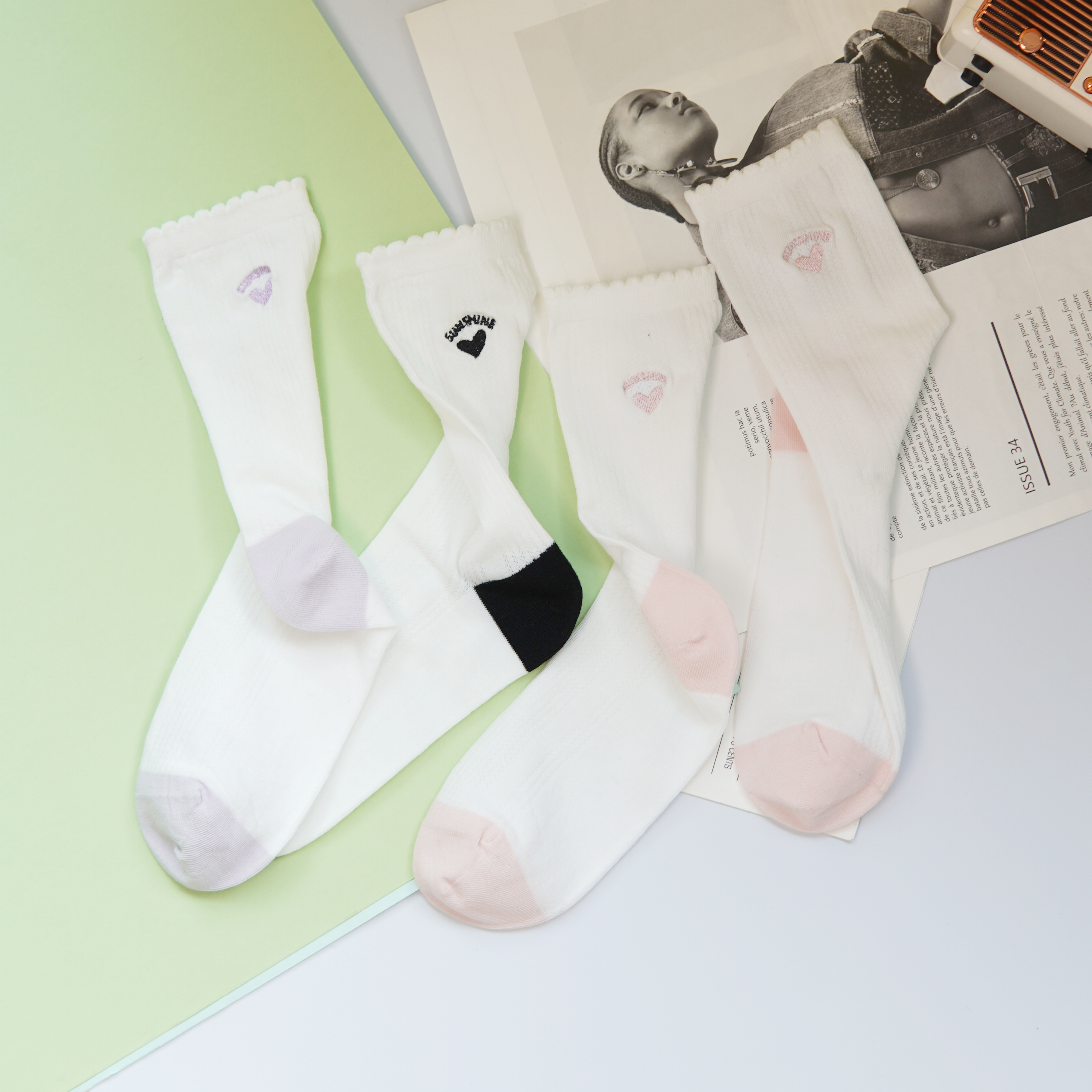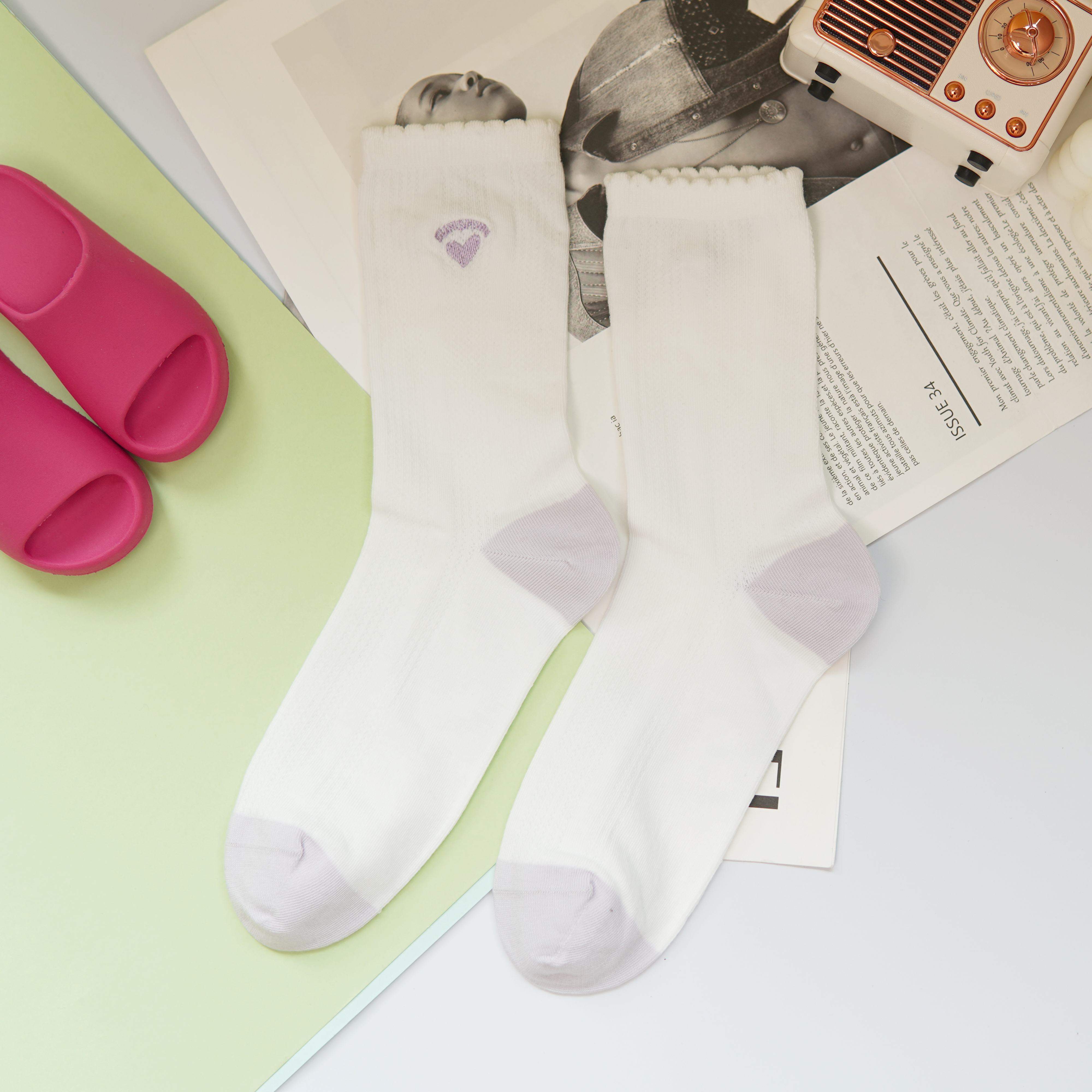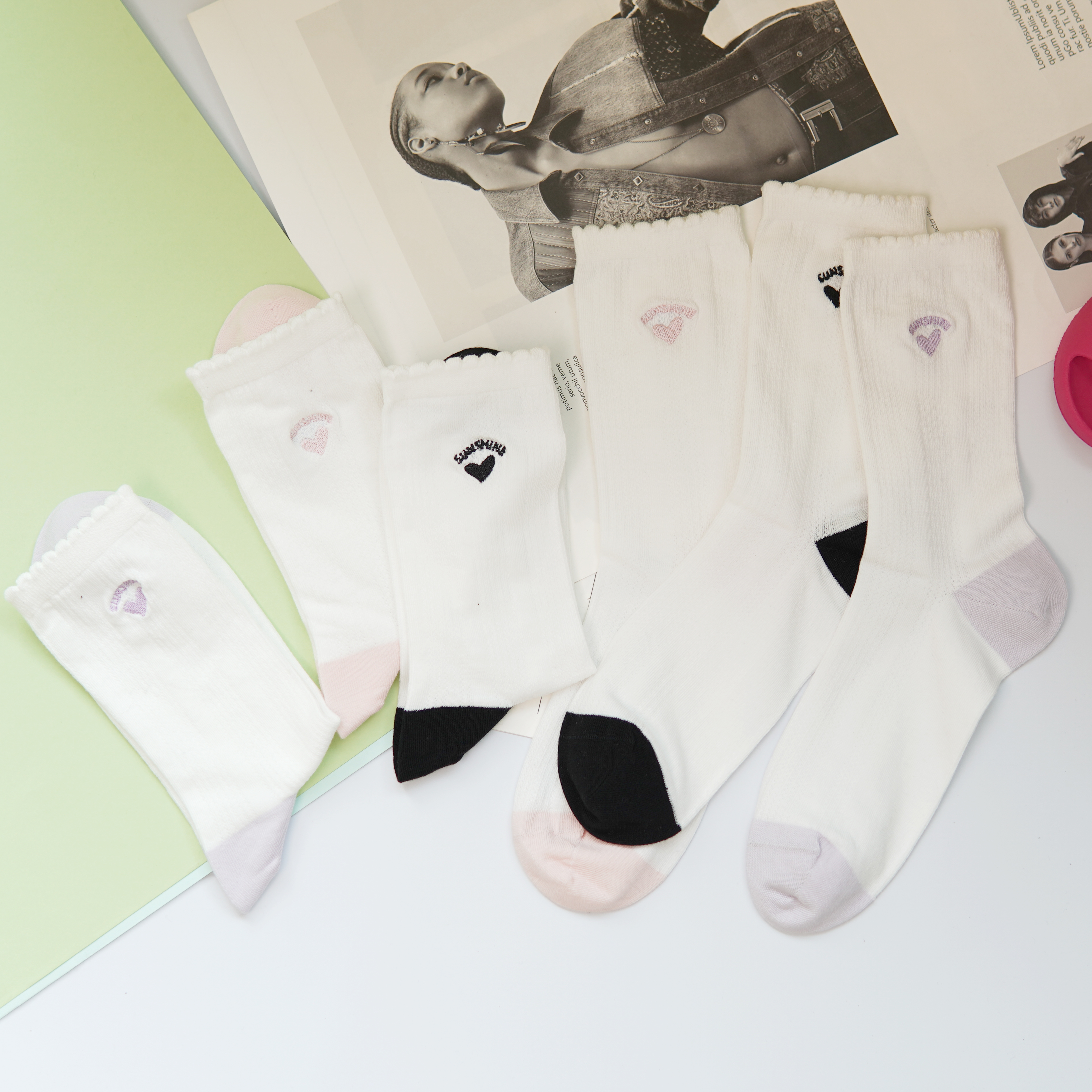 刺绣中筒小白袜无骨精梳棉袜【2412207/8/9】