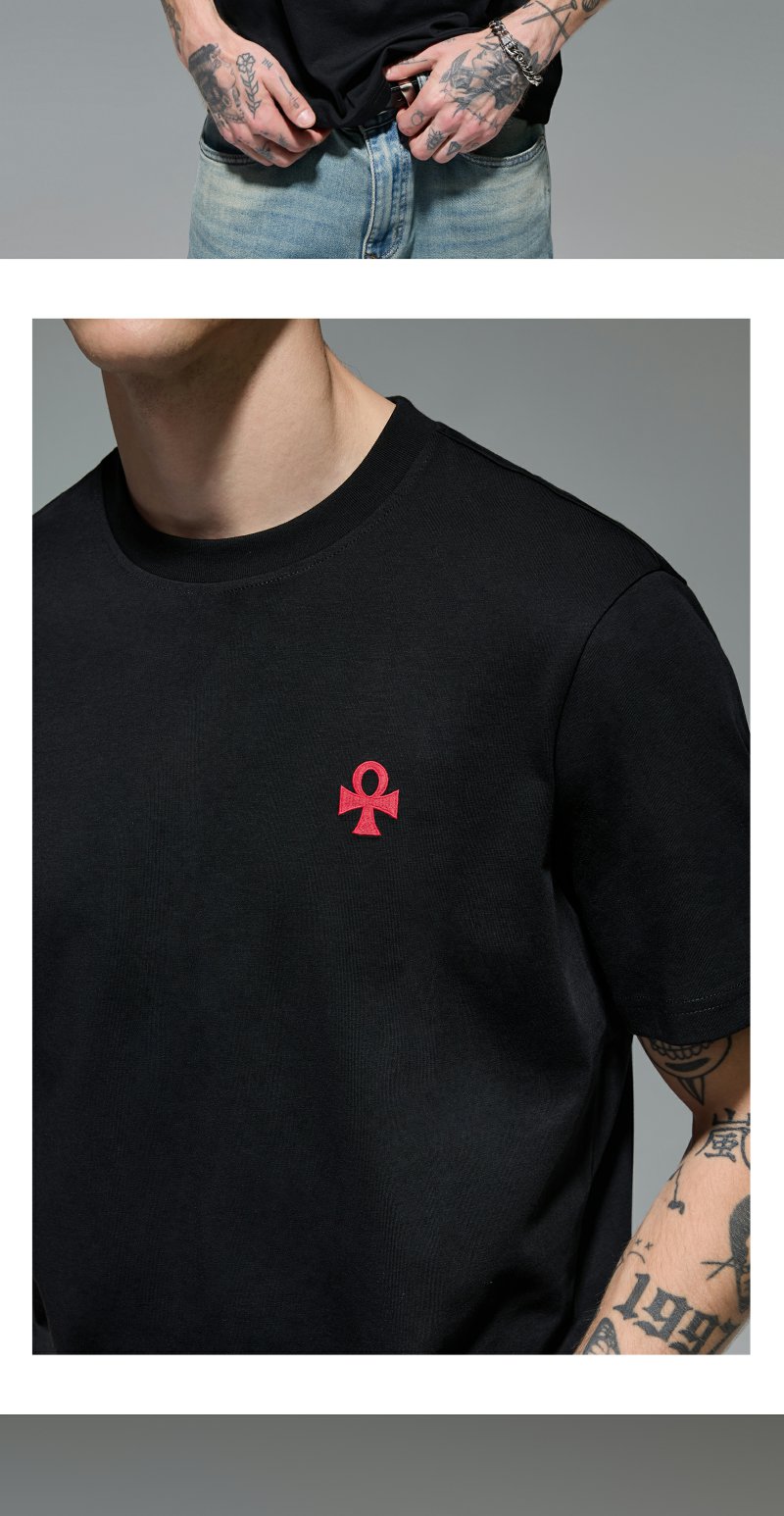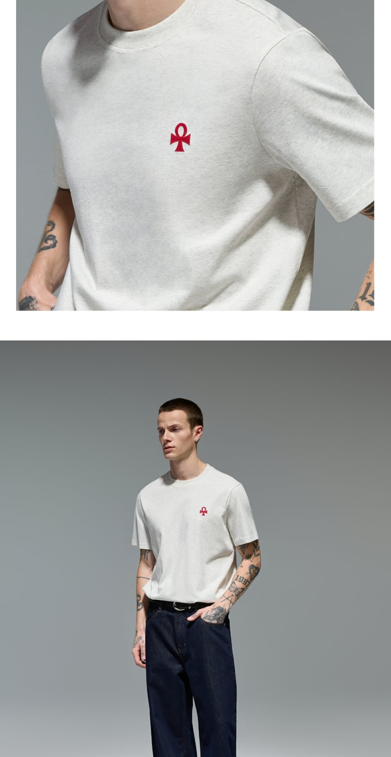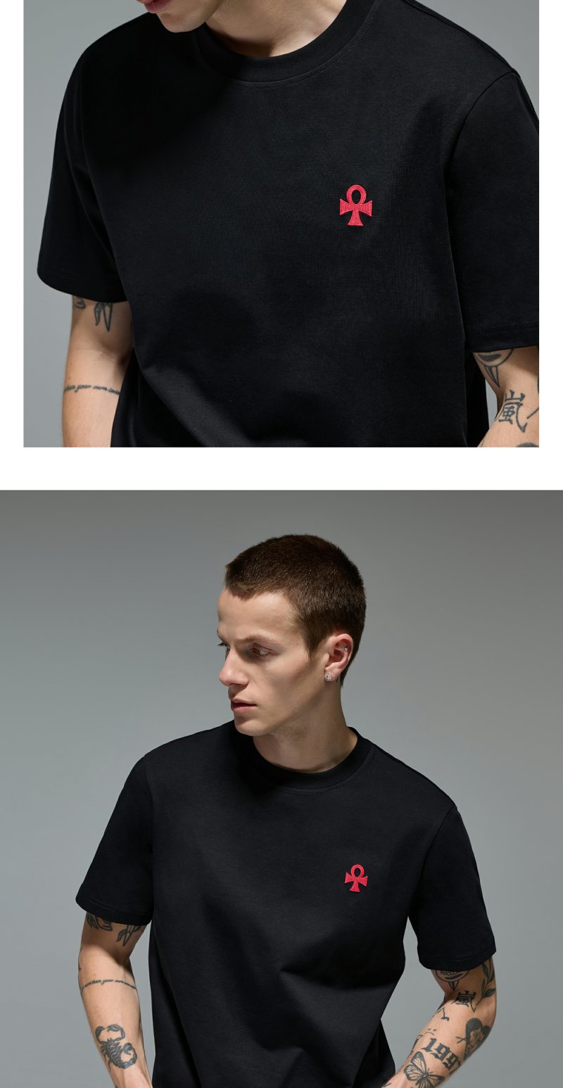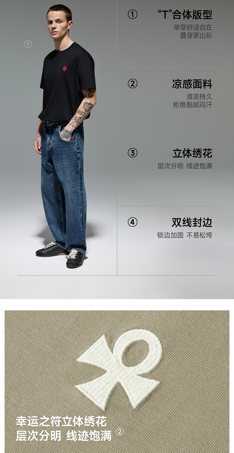 CHINISM赤尘 CH幸运之符凉感抑菌绣花短袖T恤夏季男士亲肤半袖