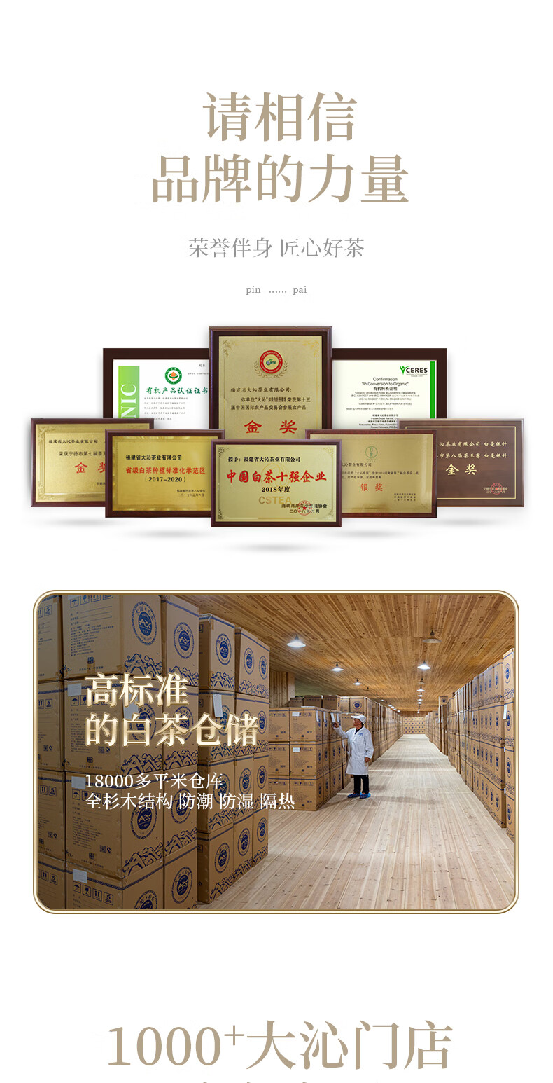 【1971年知青老茶园】大沁白茶 知青系列 2021年福鼎白茶 老寿眉饼茶 礼盒装 300g/盒(京东同款)