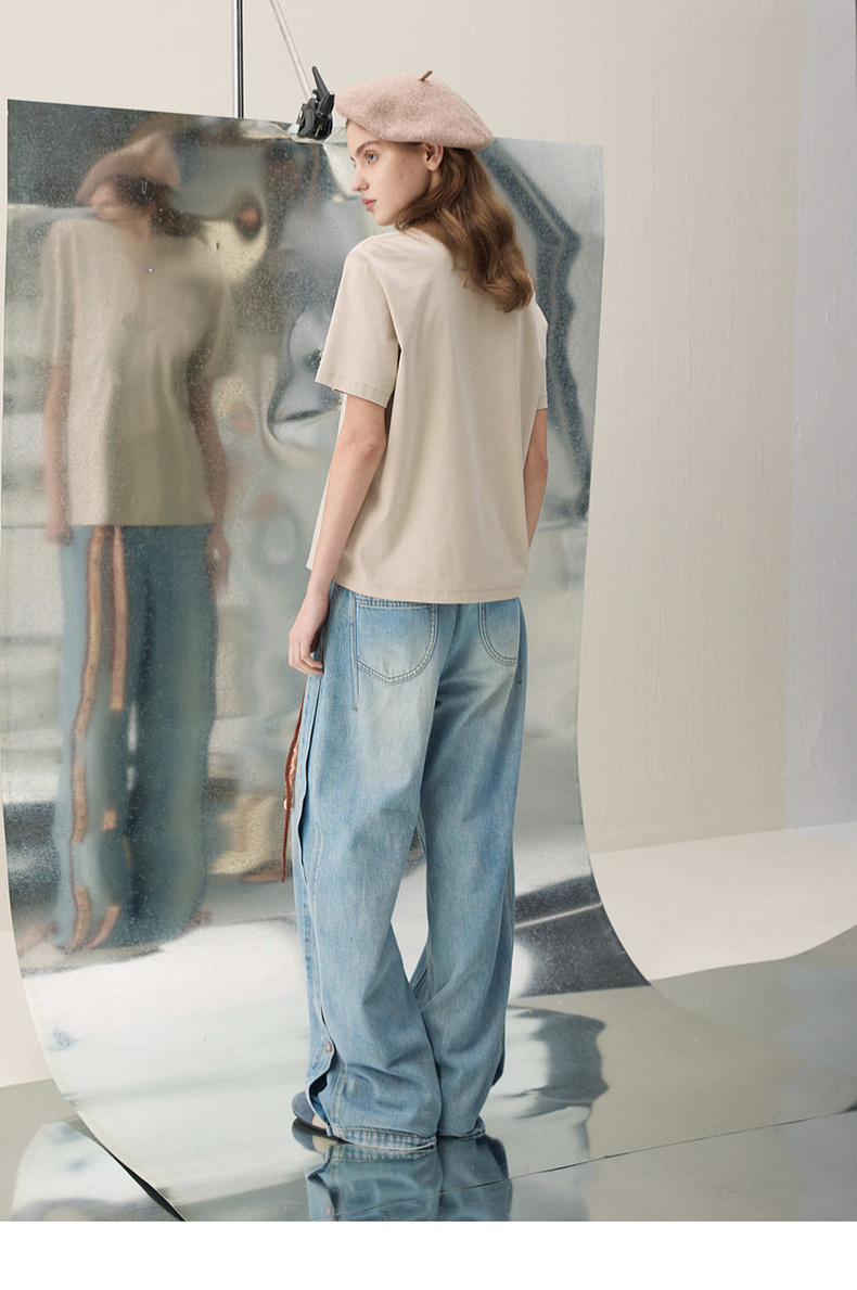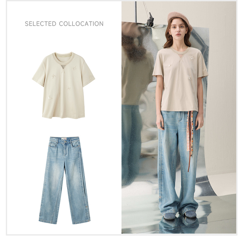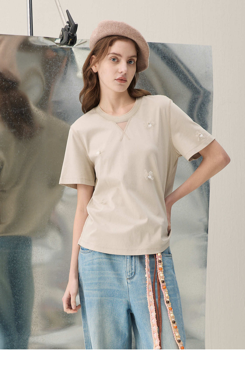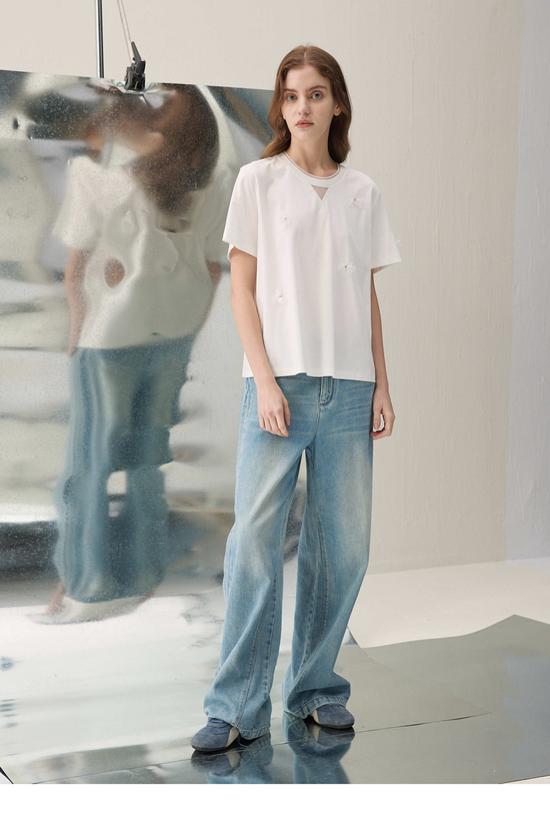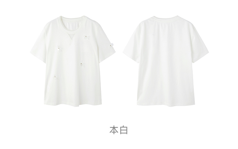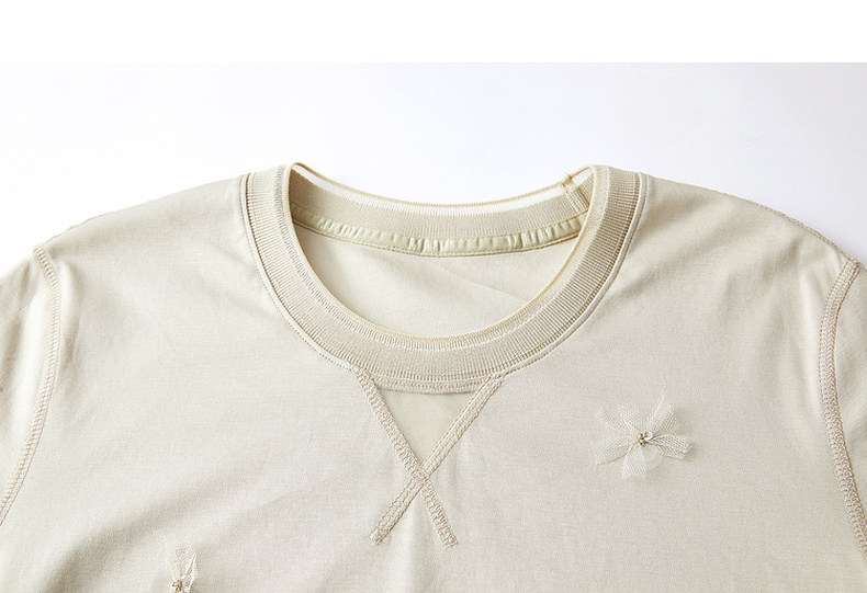 谜底珠片花朵T恤短袖2026年春季新品网纱拼接H型精致女261MT0239