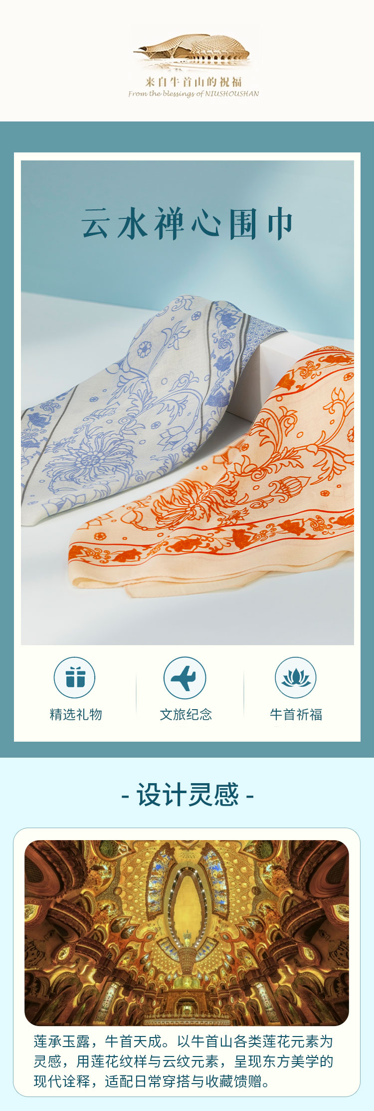 牛首山文创x万事利联名款云水禅心时尚百搭大尺寸丝巾围巾礼盒