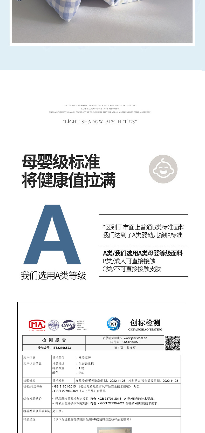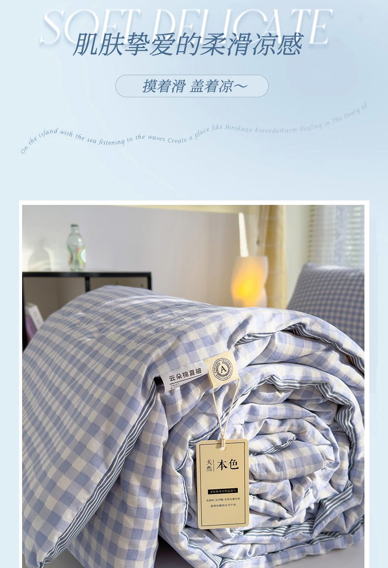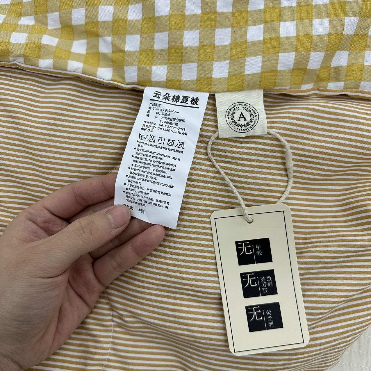 云朵棉面料的柔软舒适吸湿排汗,贴身垂顺 感觉夏天拥有它,放任享受吹空调了 安全、用得放心✔ 里面填充的纤维是整张棉 每天睡觉被窝里都是干干净净的