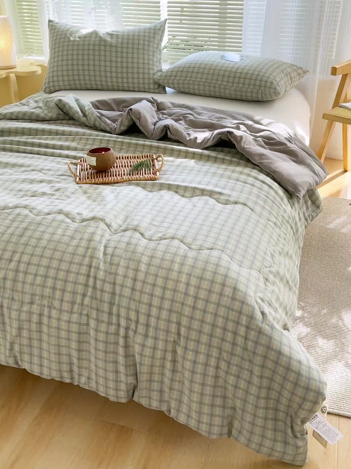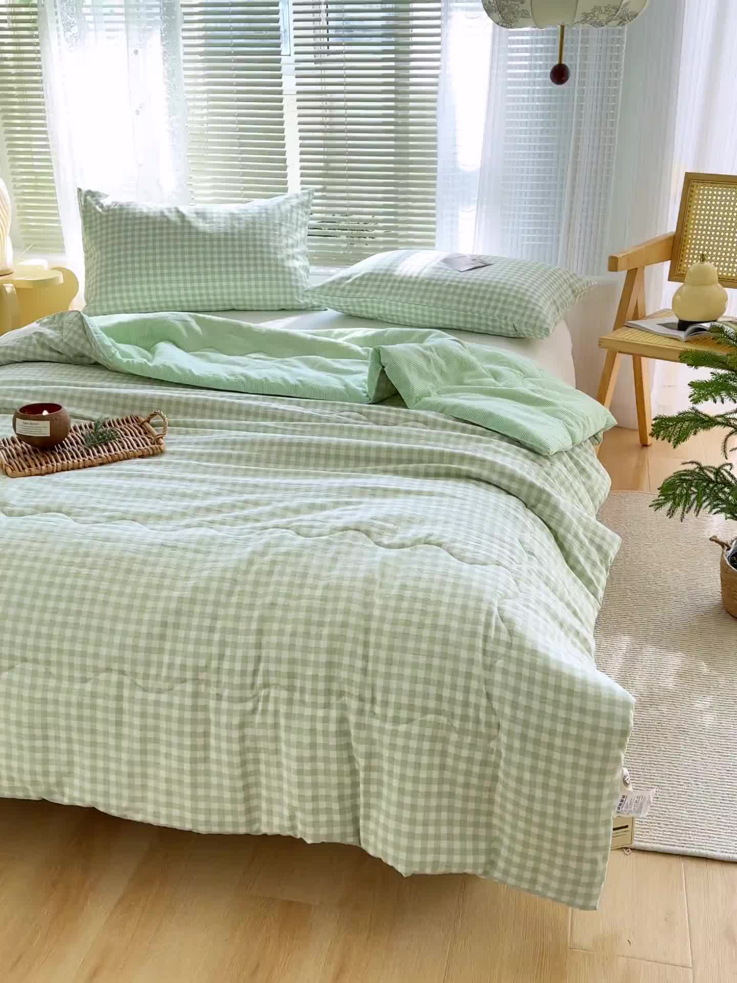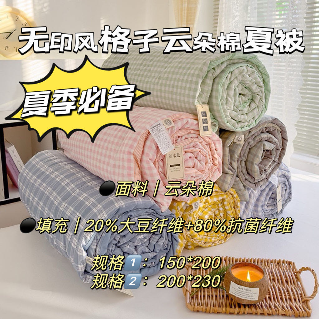 ✈️直发🌈【无印风格子云朵棉夏被】 69💰✅质地轻蓬松不压身 ✅隔热保暖超舒适!!! ✅A类级亲肤面料,超舒适 ✅表层微绒面料!拒绝起球 里面填充的纤维是整张棉 每天睡觉被窝里都是干干净净的 真的真太安心了!!!! 质地轻蓬松不压身,隔热保暖超舒适 A类级亲肤面料,表层微绒面料!拒绝起球