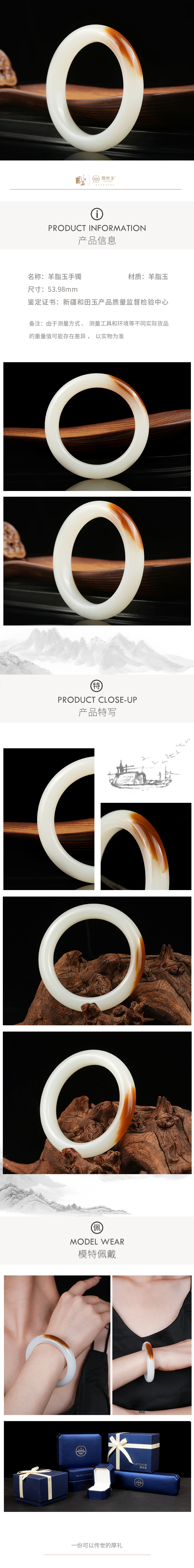 【博仙】羊脂白玉手镯(圈口53.0)