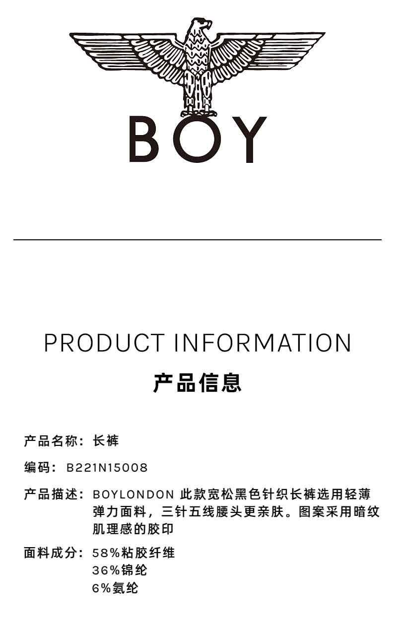 BOYLONDON长裤男女款22春夏新品暗纹肌理感印花轻薄休闲裤B221N15008