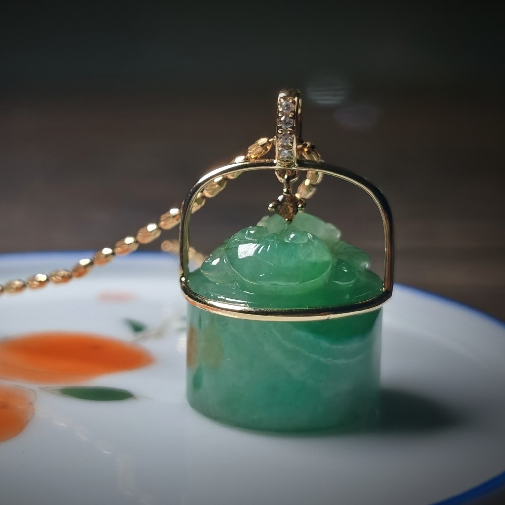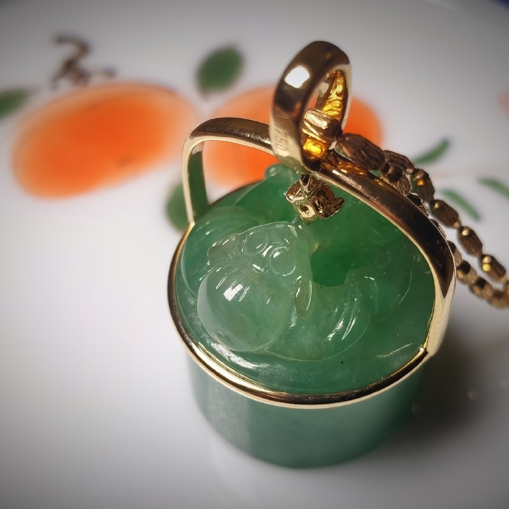 商 品:18k金翡翠印纽项坠