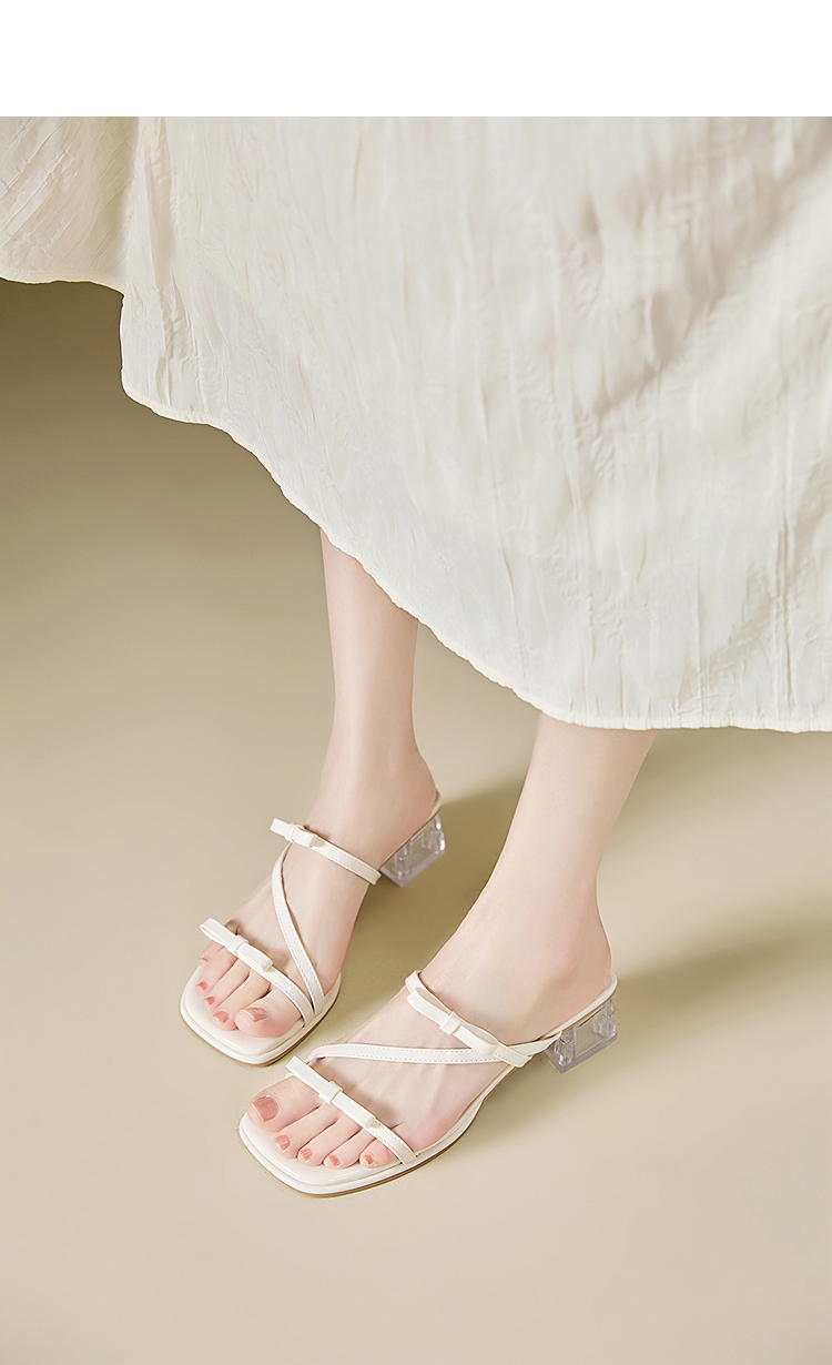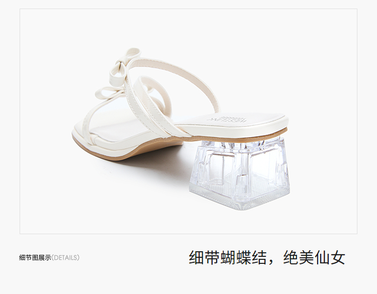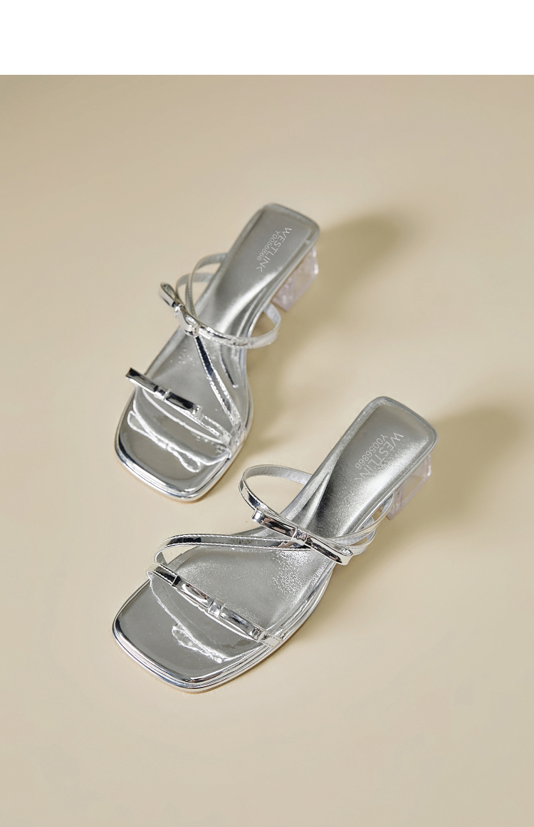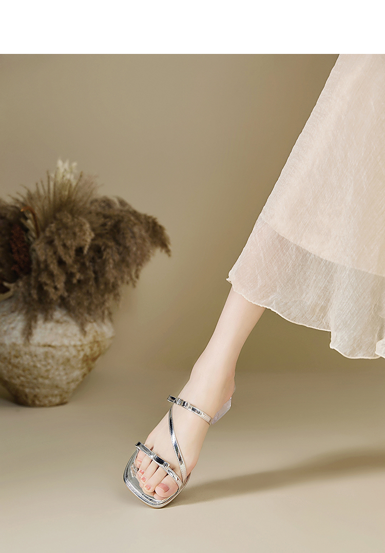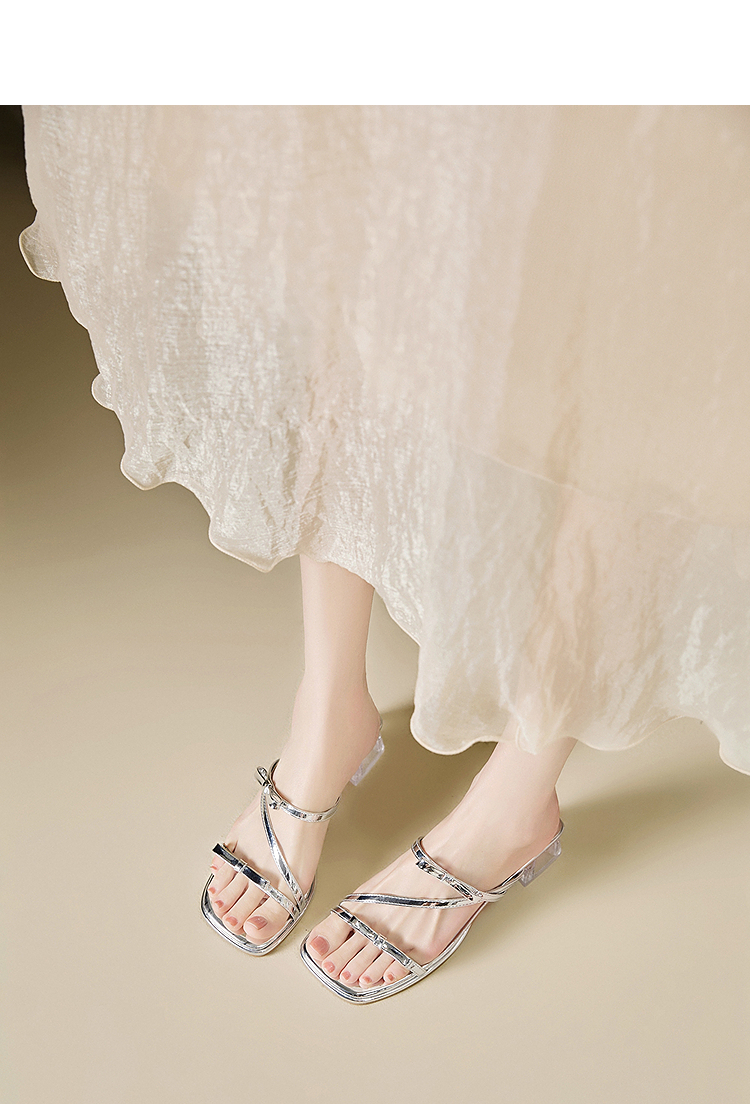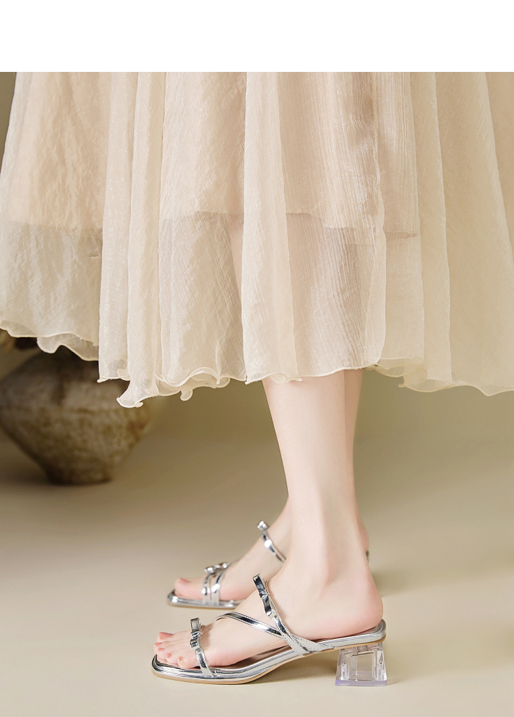 西遇水晶跟凉拖鞋女款新款爆款夏季配裙子高跟鞋外穿粗跟凉鞋Y0056866